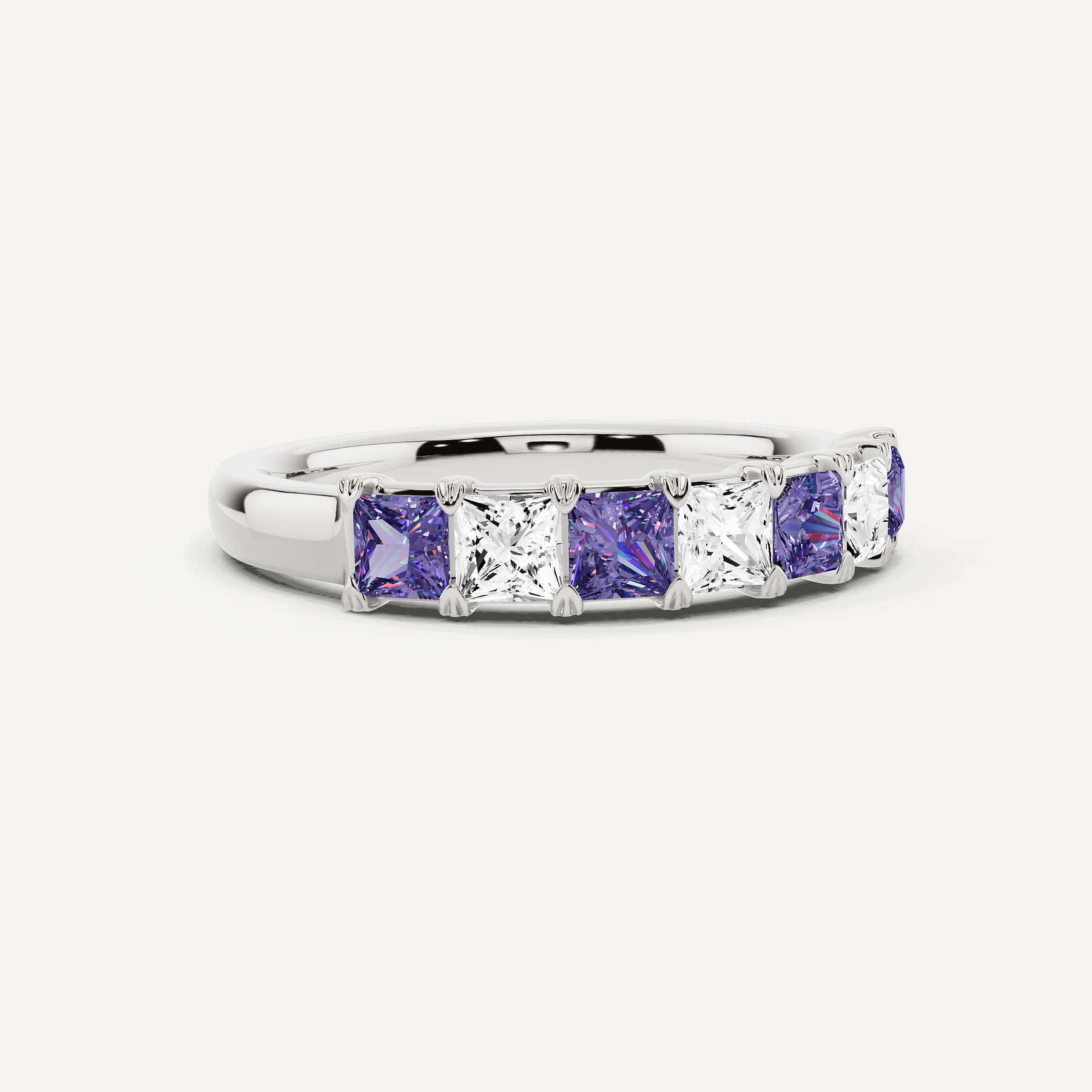 1 ctw Princess Diamond & Princess Created Alexandrite Alternating Seven Stone Anniversary Band