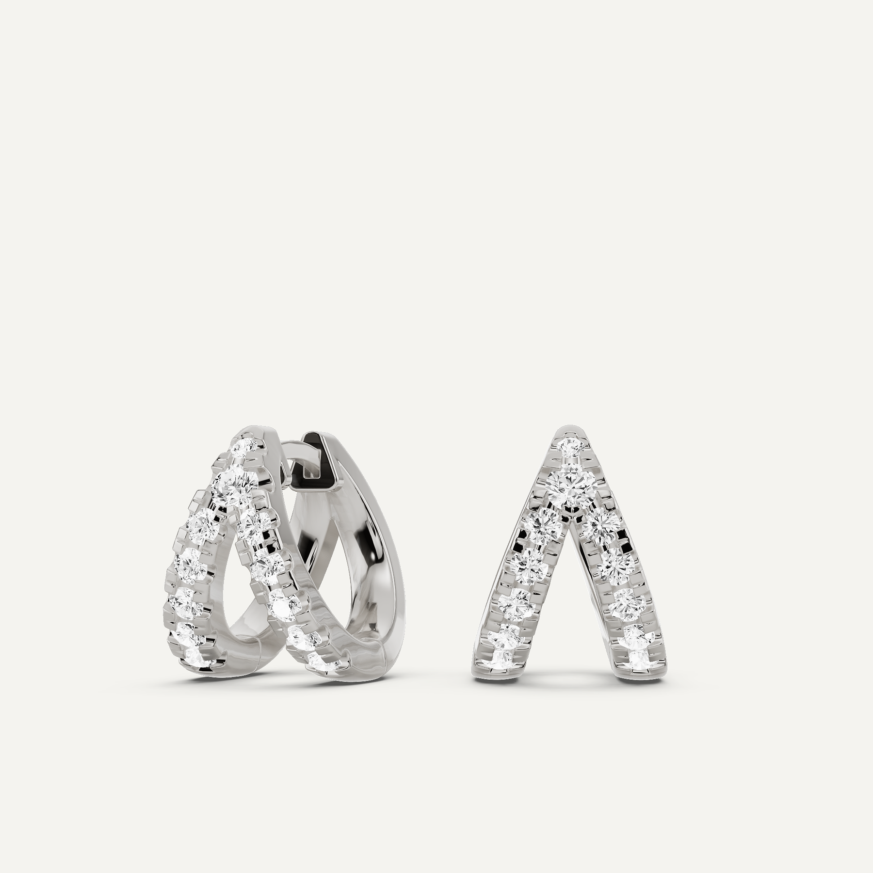 Double up on style with our Round Diamond Double Hoop Earrings. These affordable and chic hoops feature two layers of round diamonds, creating a stunning effect that enhances your look without breaking the bank.