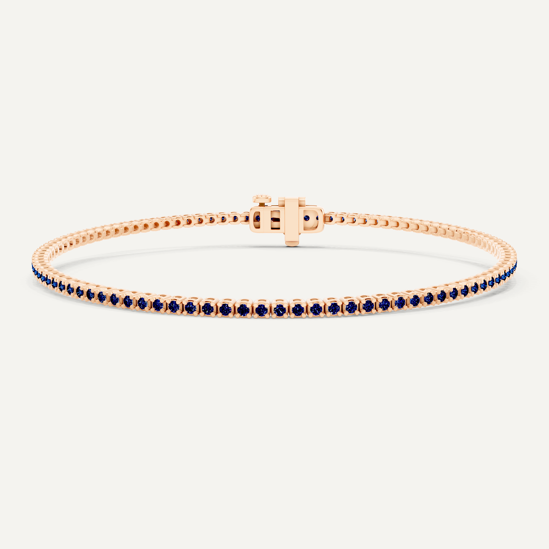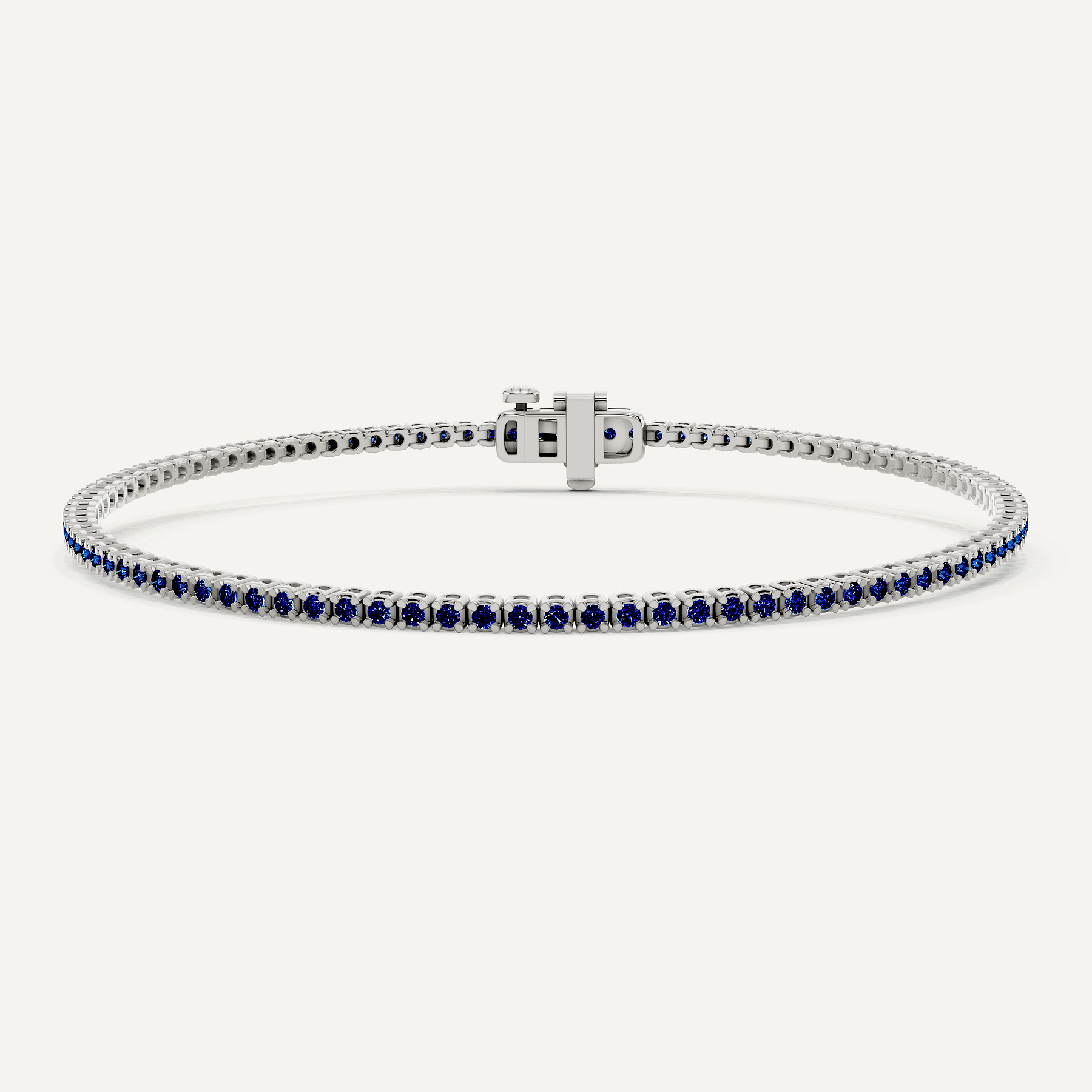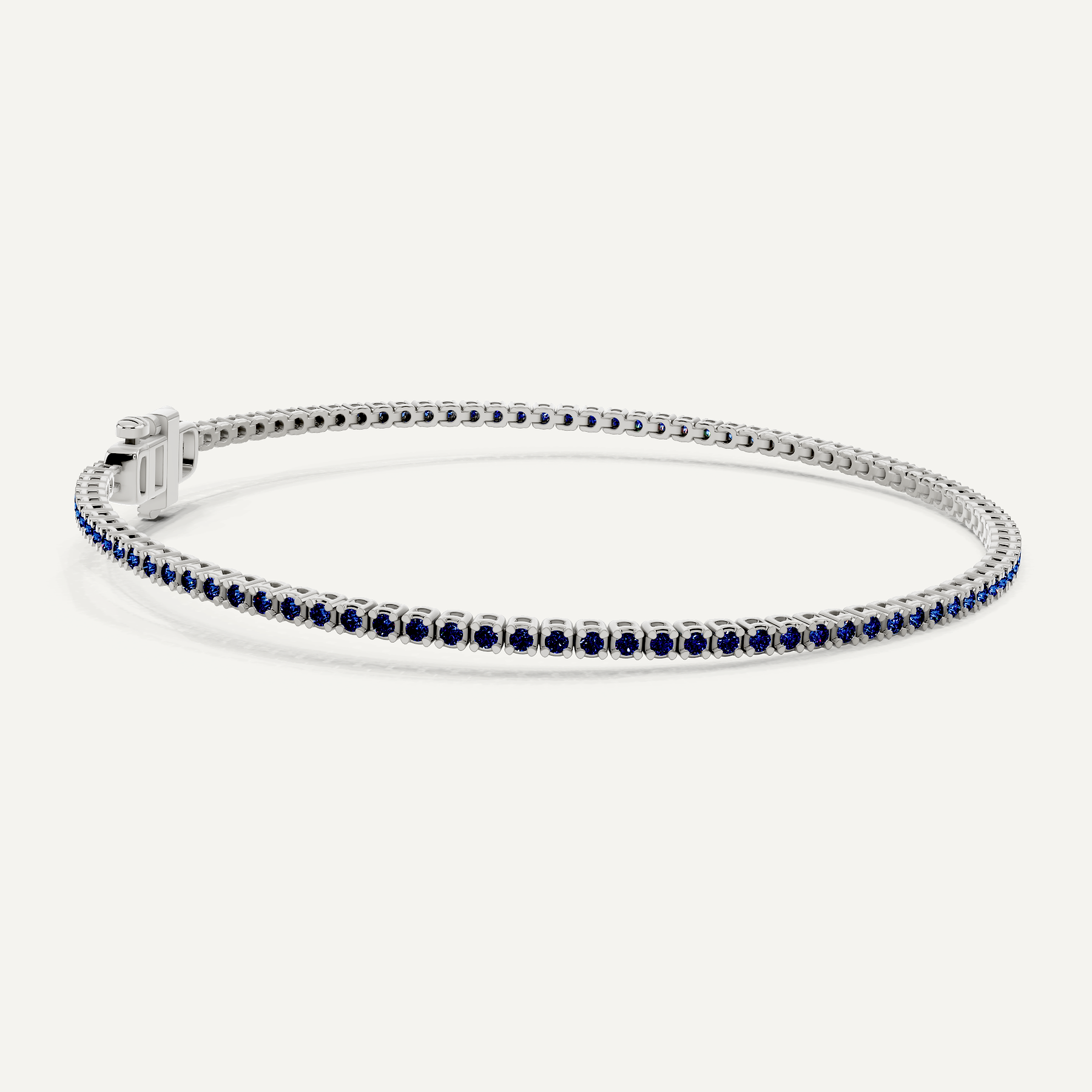 The Round Blue Sapphire Four Prong Petite Tennis Bracelet combines beauty and utility. This finely designed element combines classic appeal with everyday functionality. It provides the ideal mix between refinement and convenience for individuals seeking both elegance and usefulness. Elevate your look with this one-of-a-kind bracelet, where the magic of design blends seamlessly with its beneficial appeal.