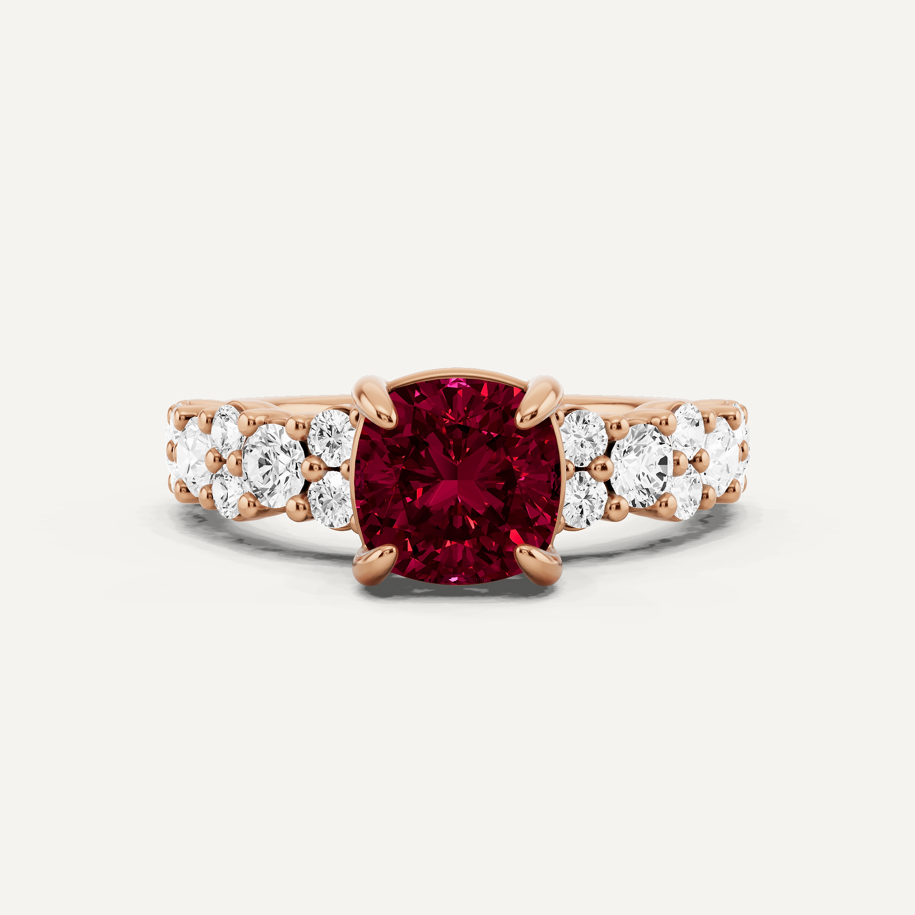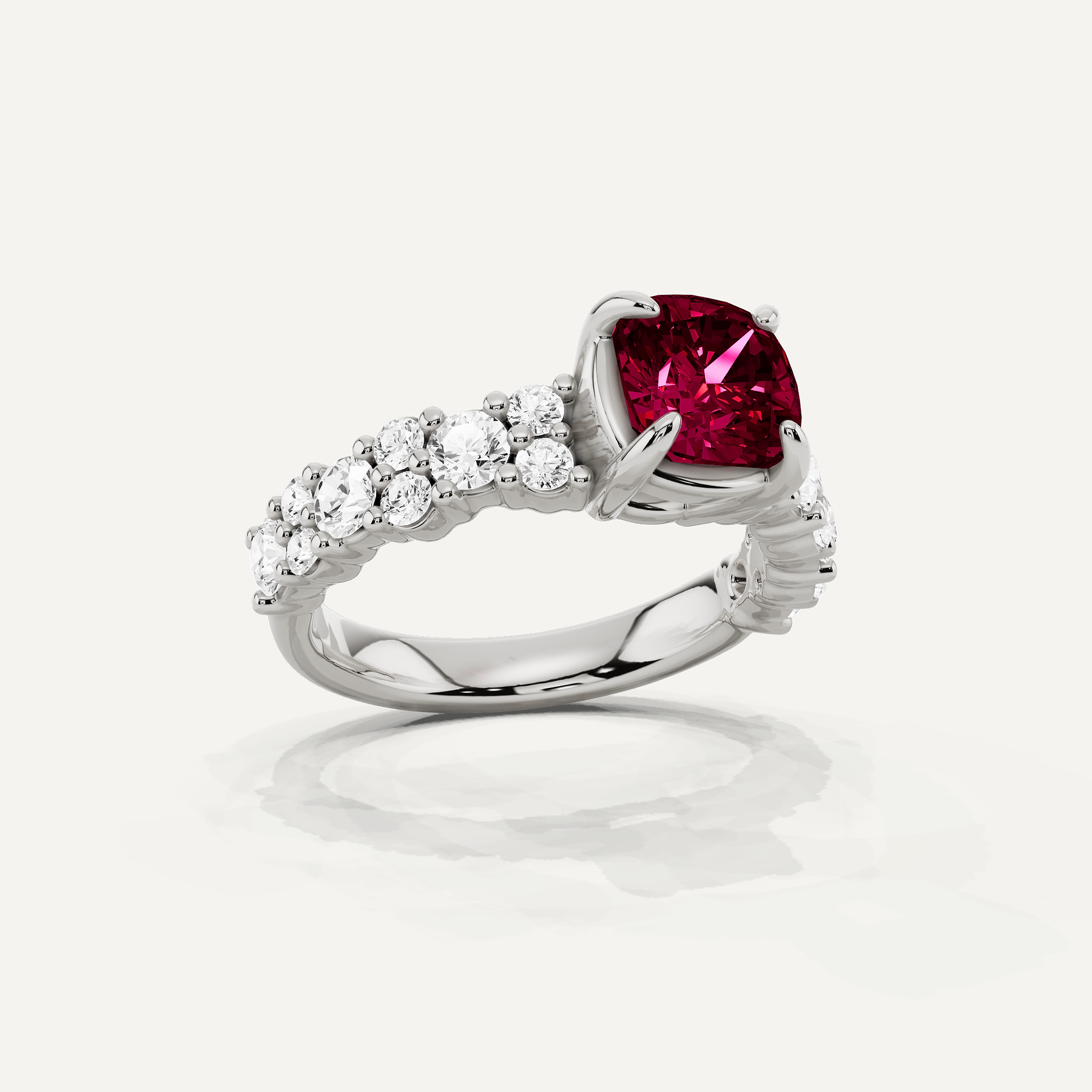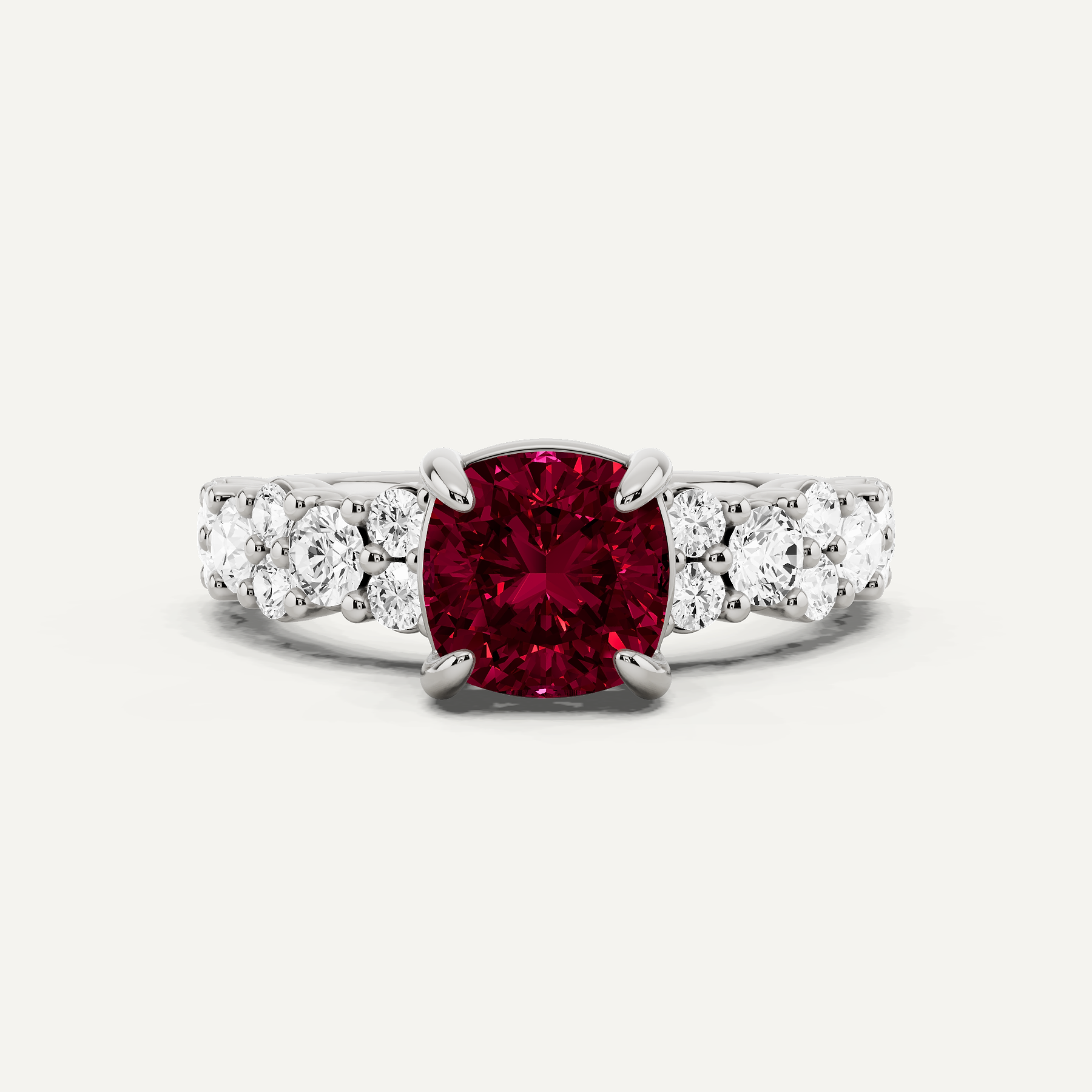 2 1/2 ctw Cushion Created Ruby Station Side Stone Engagement Ring