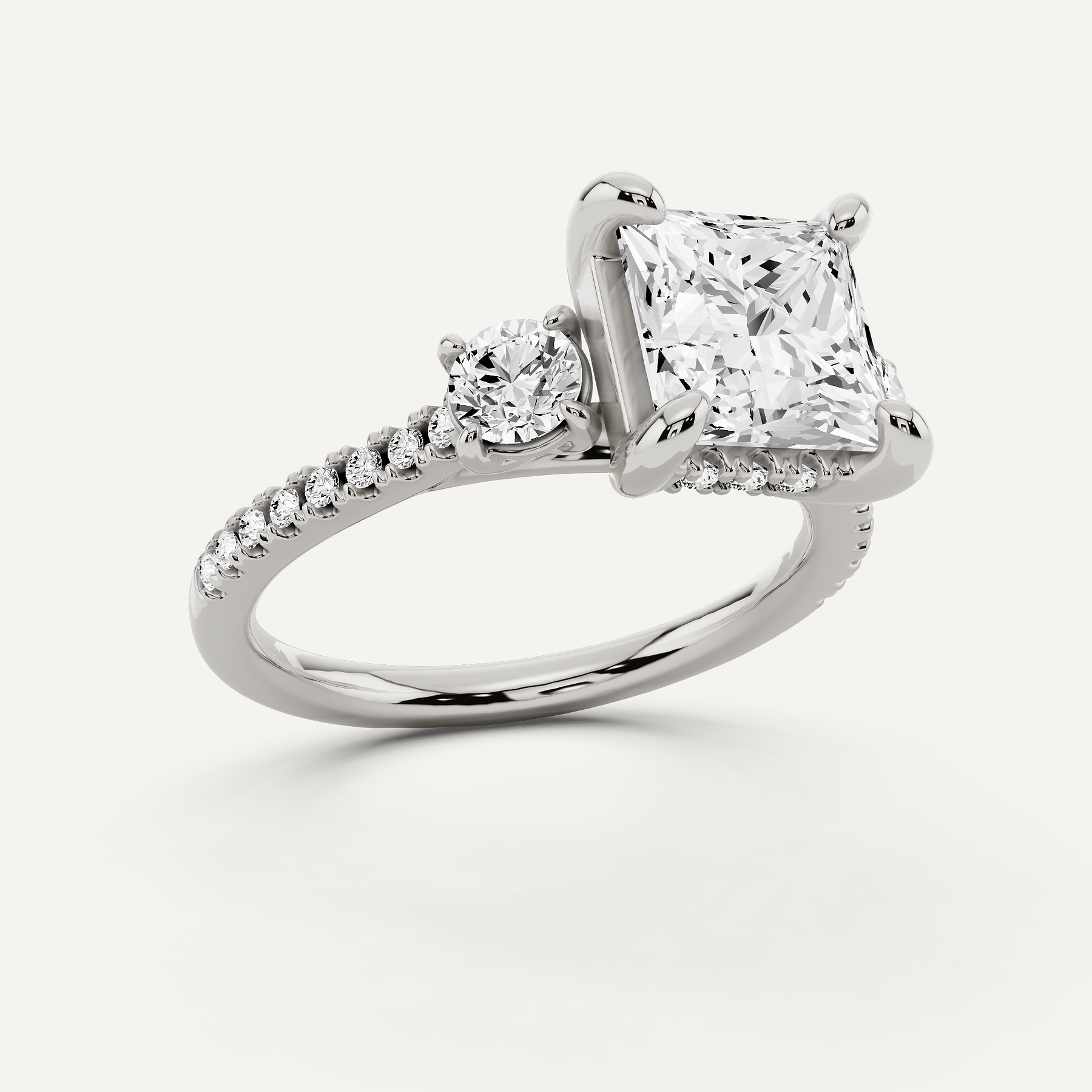 2 1/2 ctw Princess Diamond Three Stone Engagement Ring with Round Side Stone