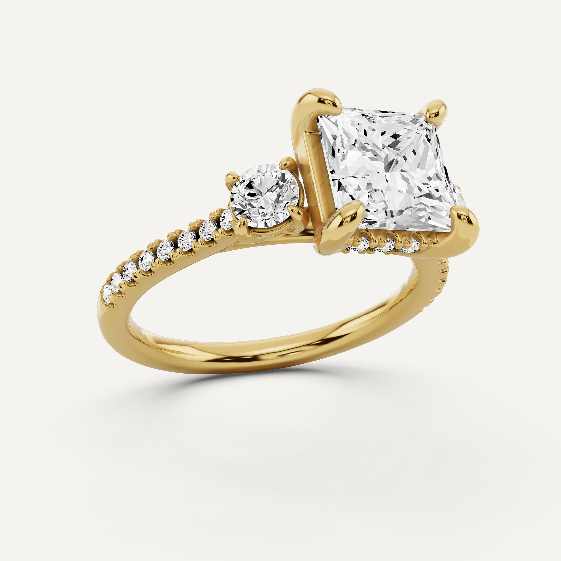 Experience the sparkle of romance without breaking the bank with our Three Stone Princess Diamond Engagement Ring, a timeless design that marries love and affordability. Explore the fine differences between white gold, yellow gold, and rose gold options, and carry out a thorough self-analysis of your preference for lab-grown diamonds.