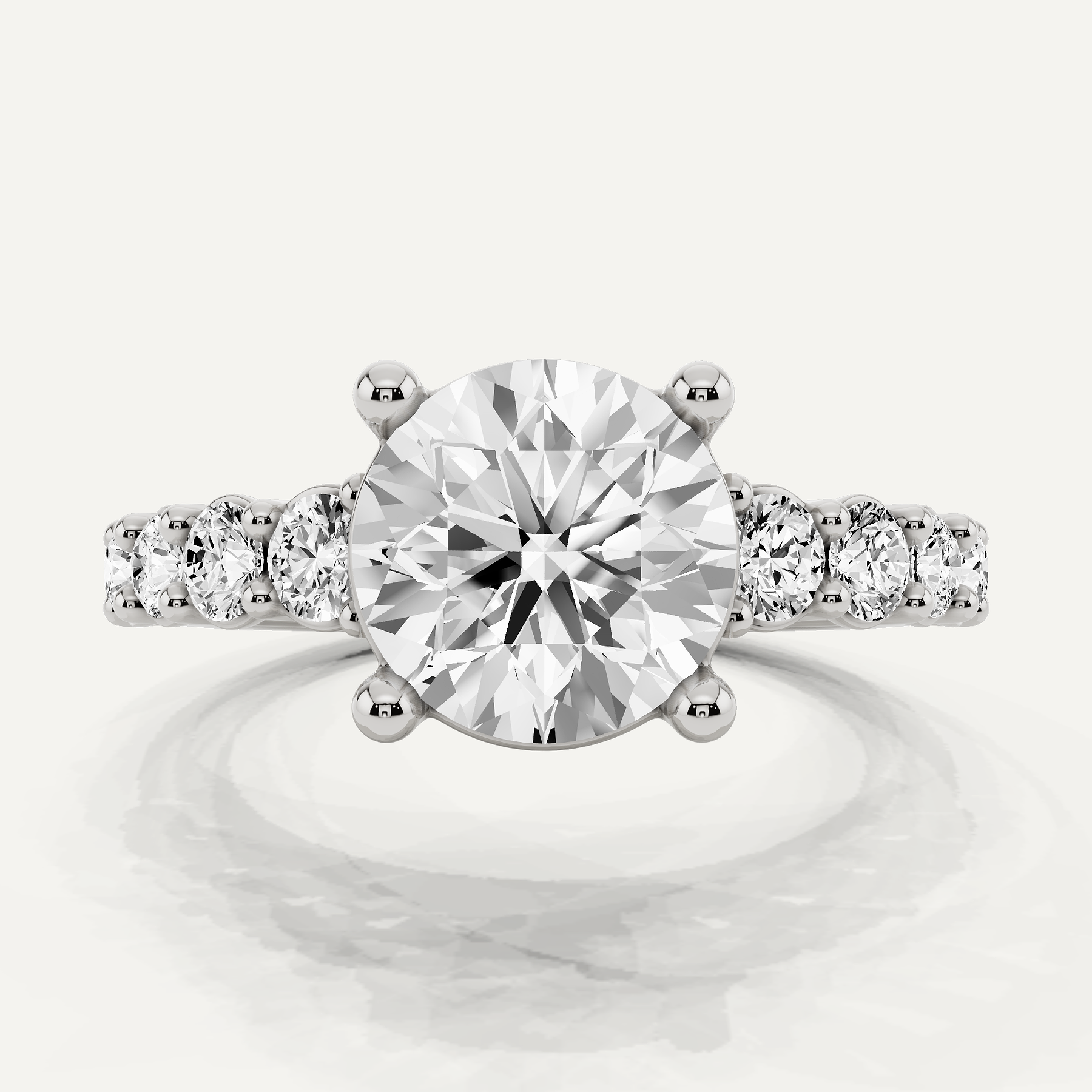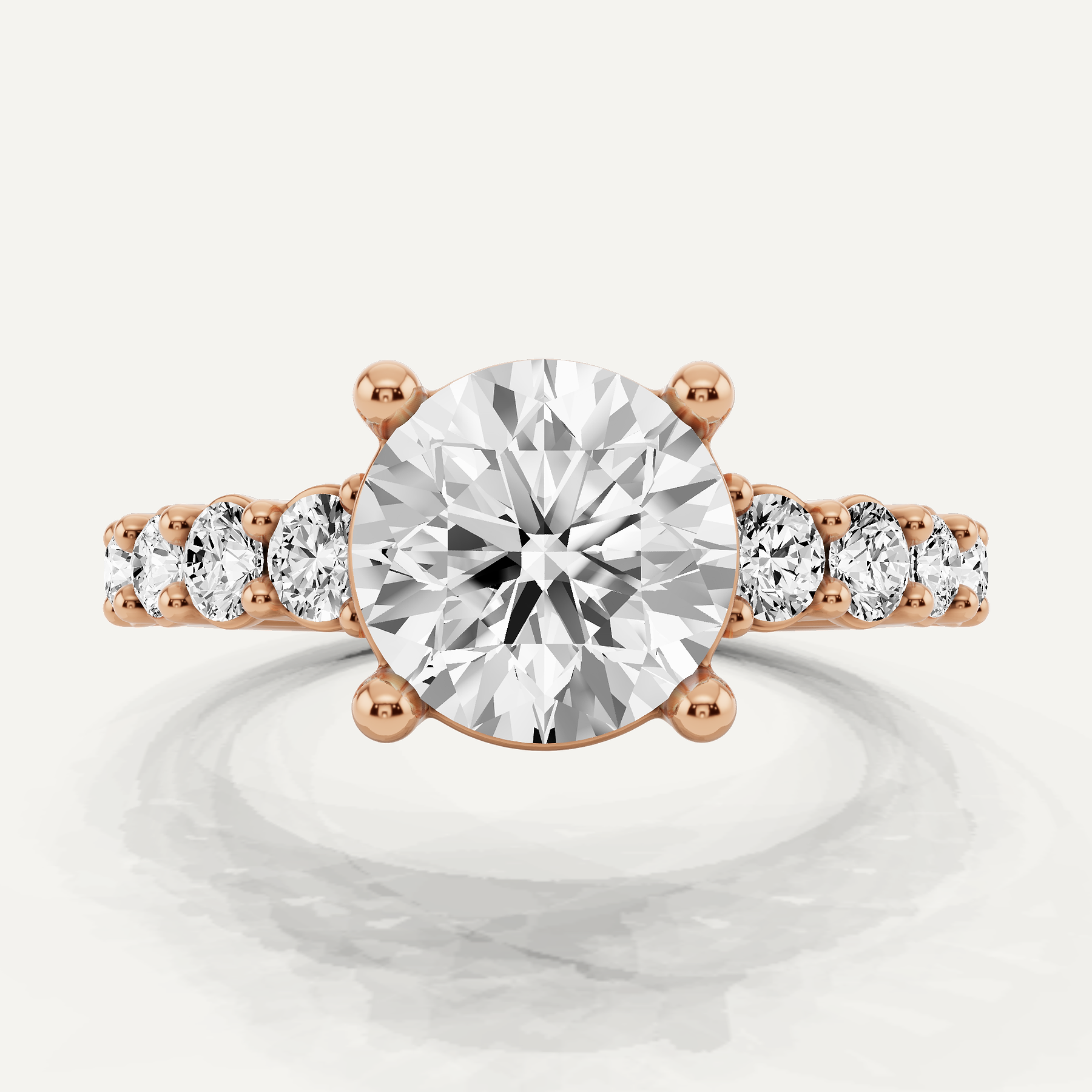 Shine brilliantly without compromising your budget - our Round Sidestone Diamond Engagement Ring is an exquisite yet budget-conscious symbol of your love and commitment, Immerse yourself in the delicate distinctions that set white gold, yellow gold, and rose gold apart, and thoughtfully assess your individual preference for lab-grown or naturally formed diamonds