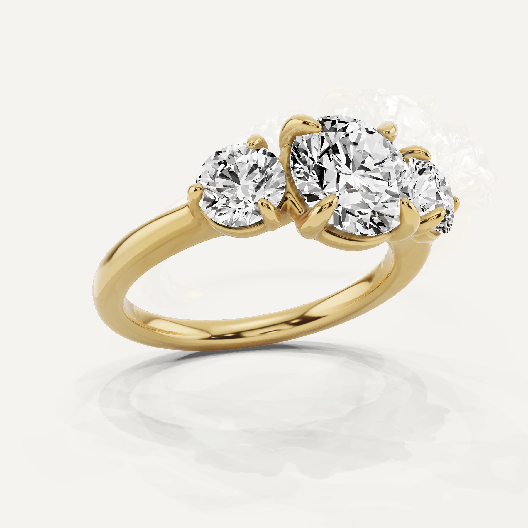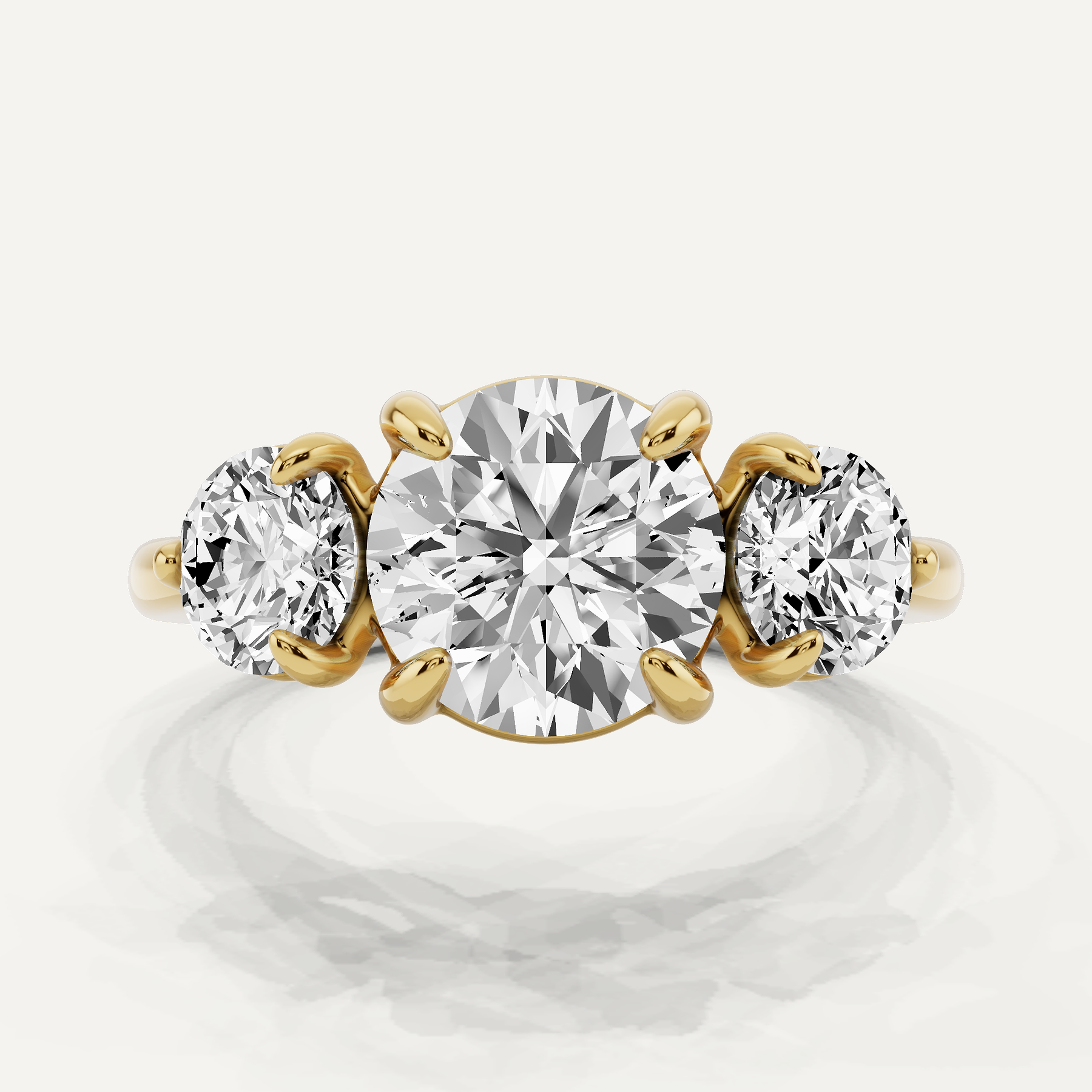 Create unforgettable moments without a hefty price tag with our Three stone Round Diamond Engagement Ring, a design that harmoniously combines romance and affordability. Immerse yourself in the detailed distinctions between white gold, yellow gold, and rose gold choices, and thoughtfully evaluate your individual leaning toward lab-grown or naturally acquired diamonds.
