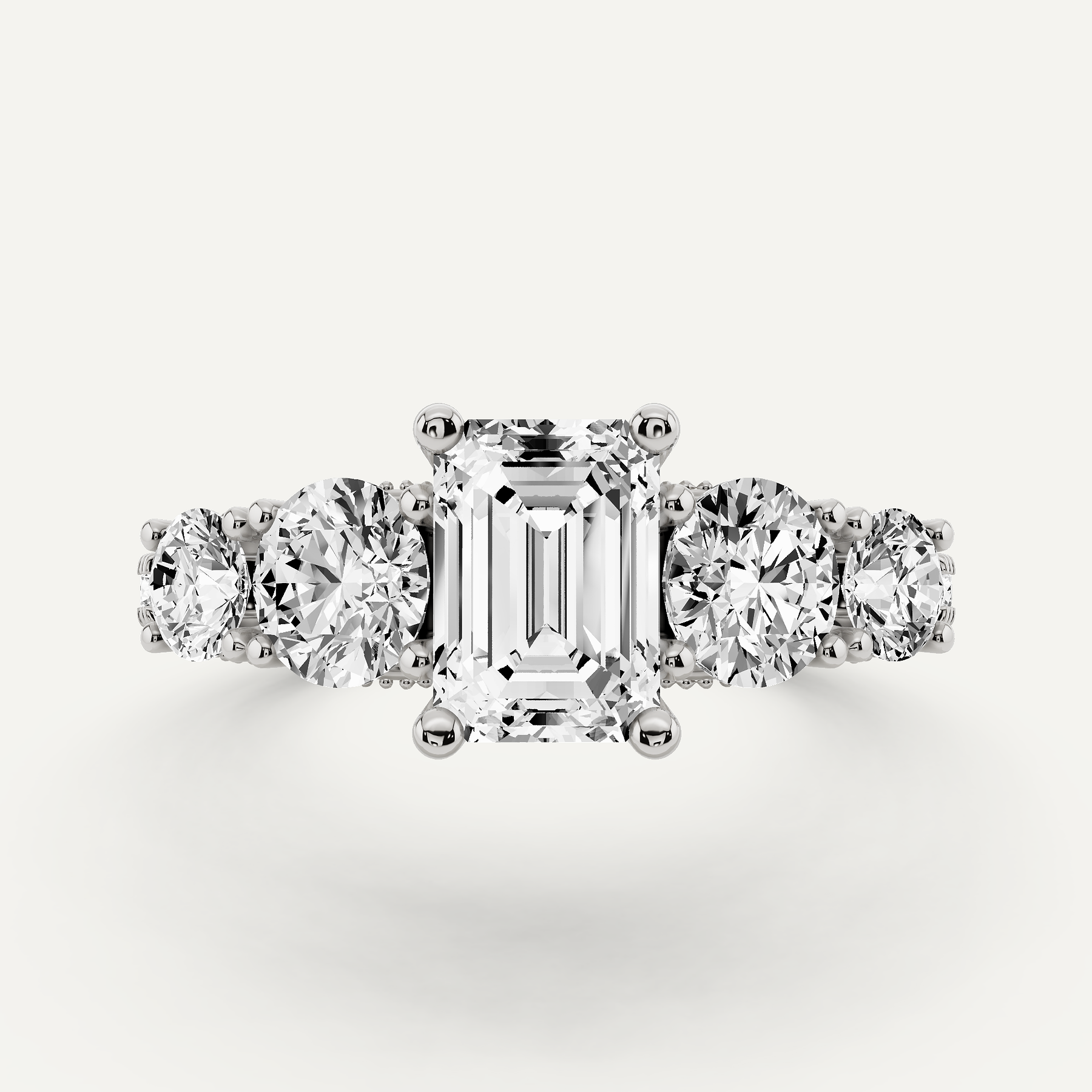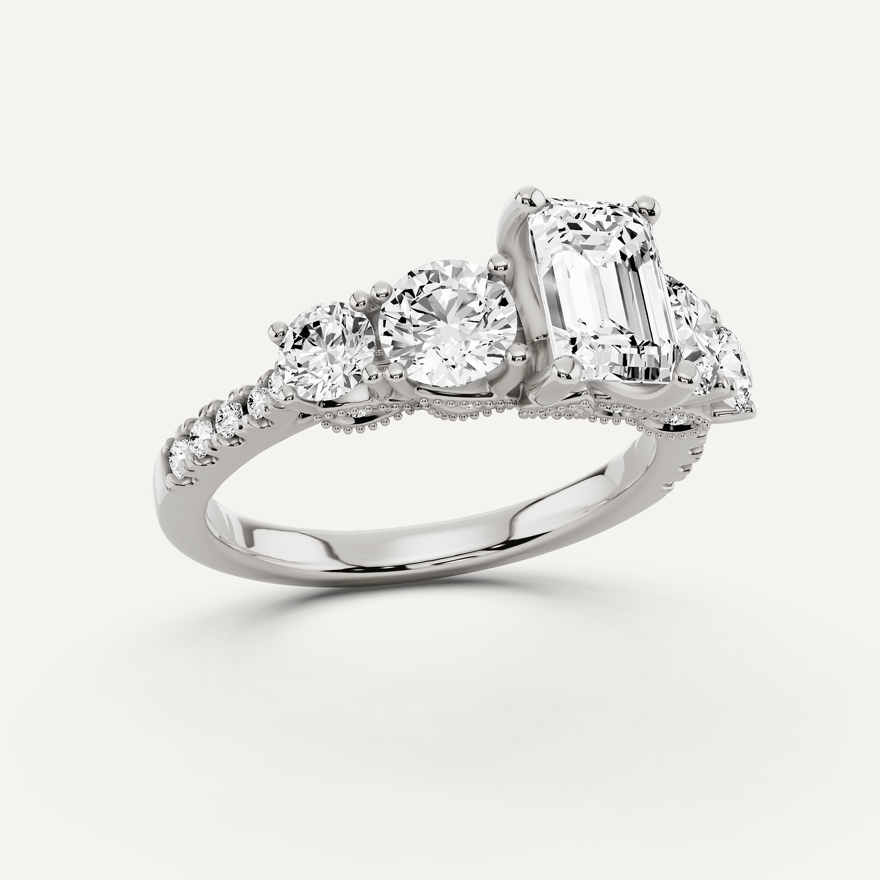 2 1/4 ctw Emerald Diamond Graduated Side Stone Engagement Ring