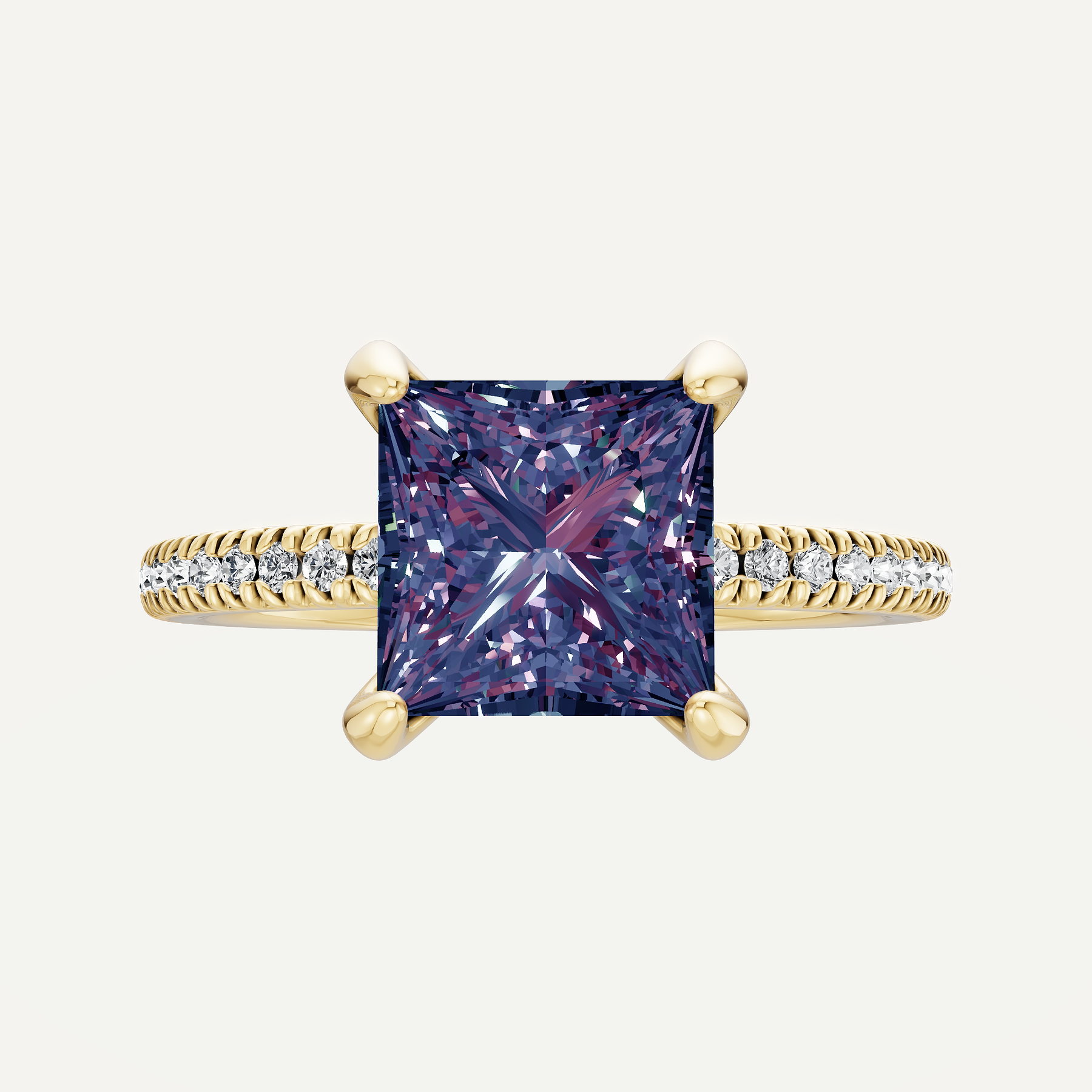 2 1/4 ctw Princess Created Alexandrite Pave Set Side Stone Engagement Ring