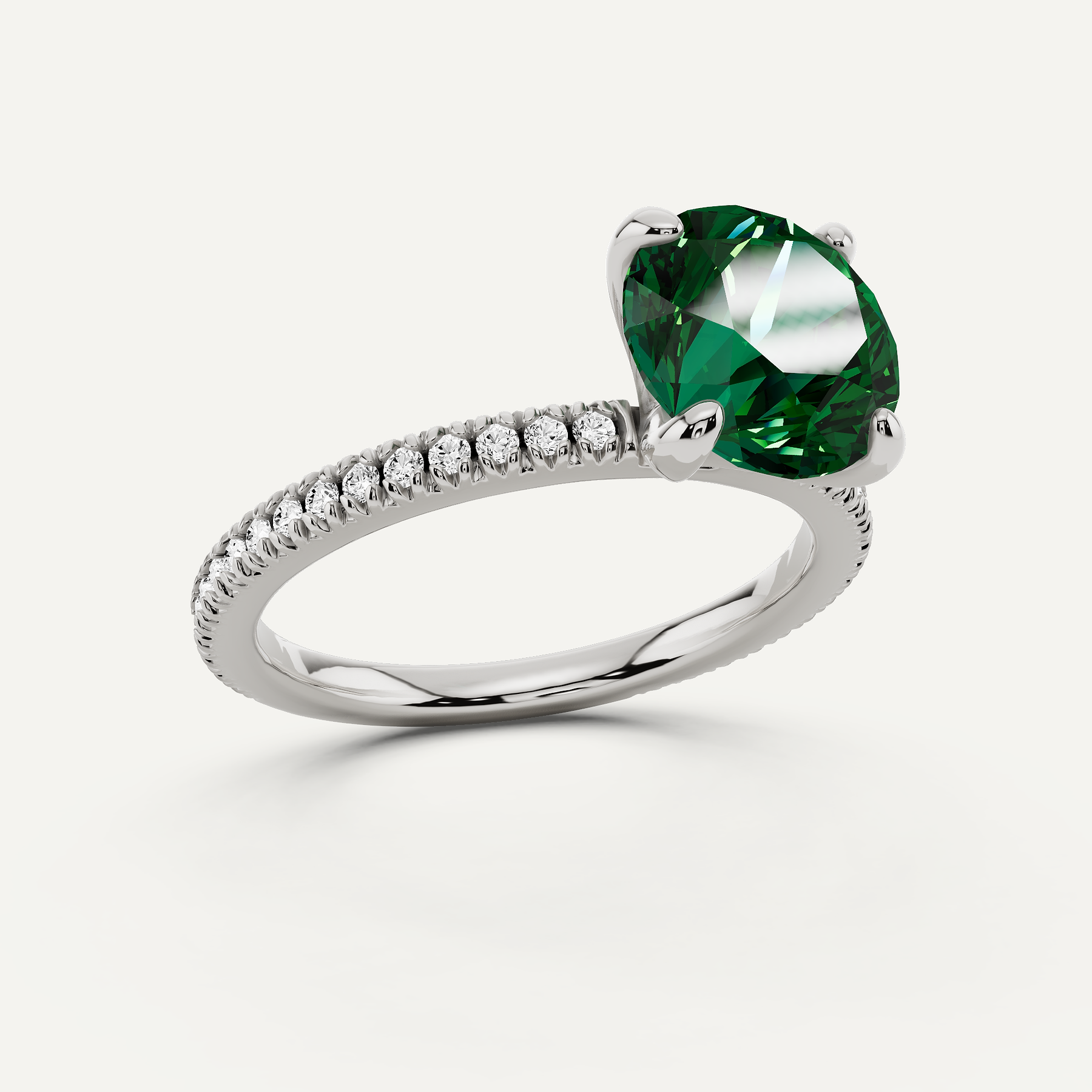 2 1/4 ctw Round Created Emerald Pave Set Side Stone Engagement Ring