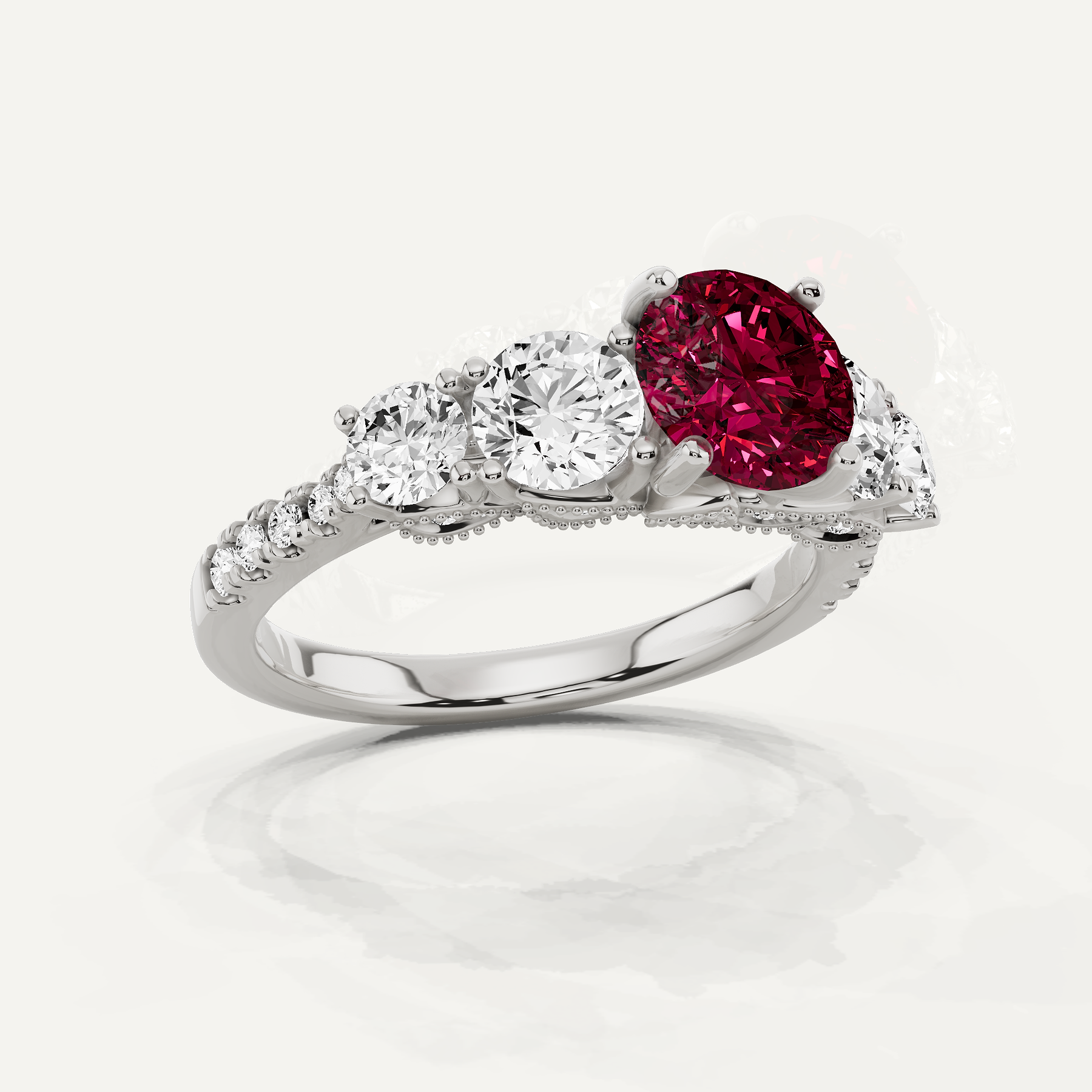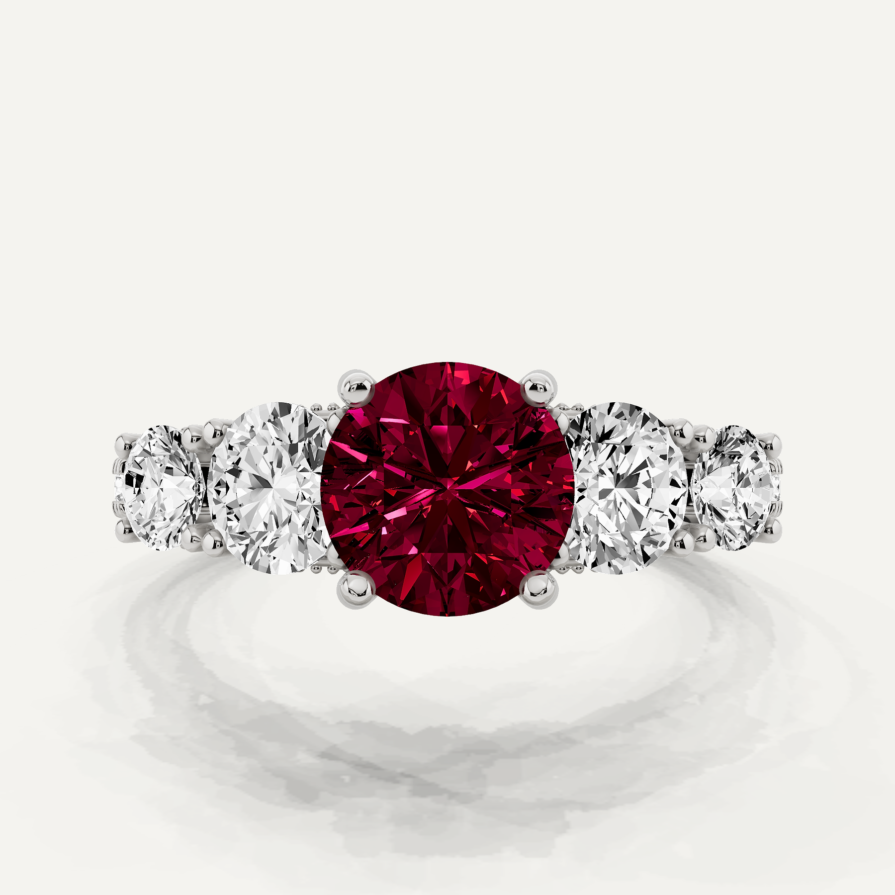 2 1/4 ctw Round Created Ruby Graduated Side Stone Engagement Ring