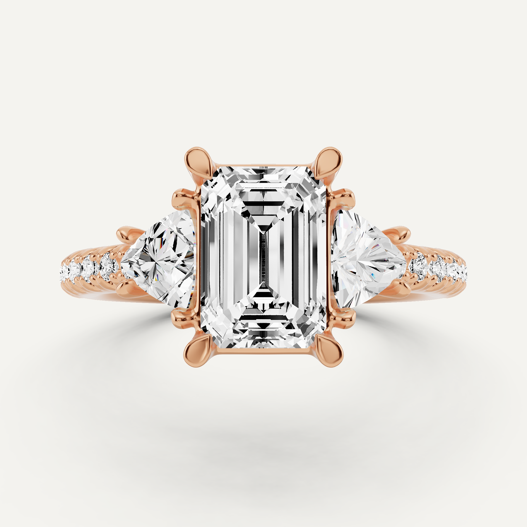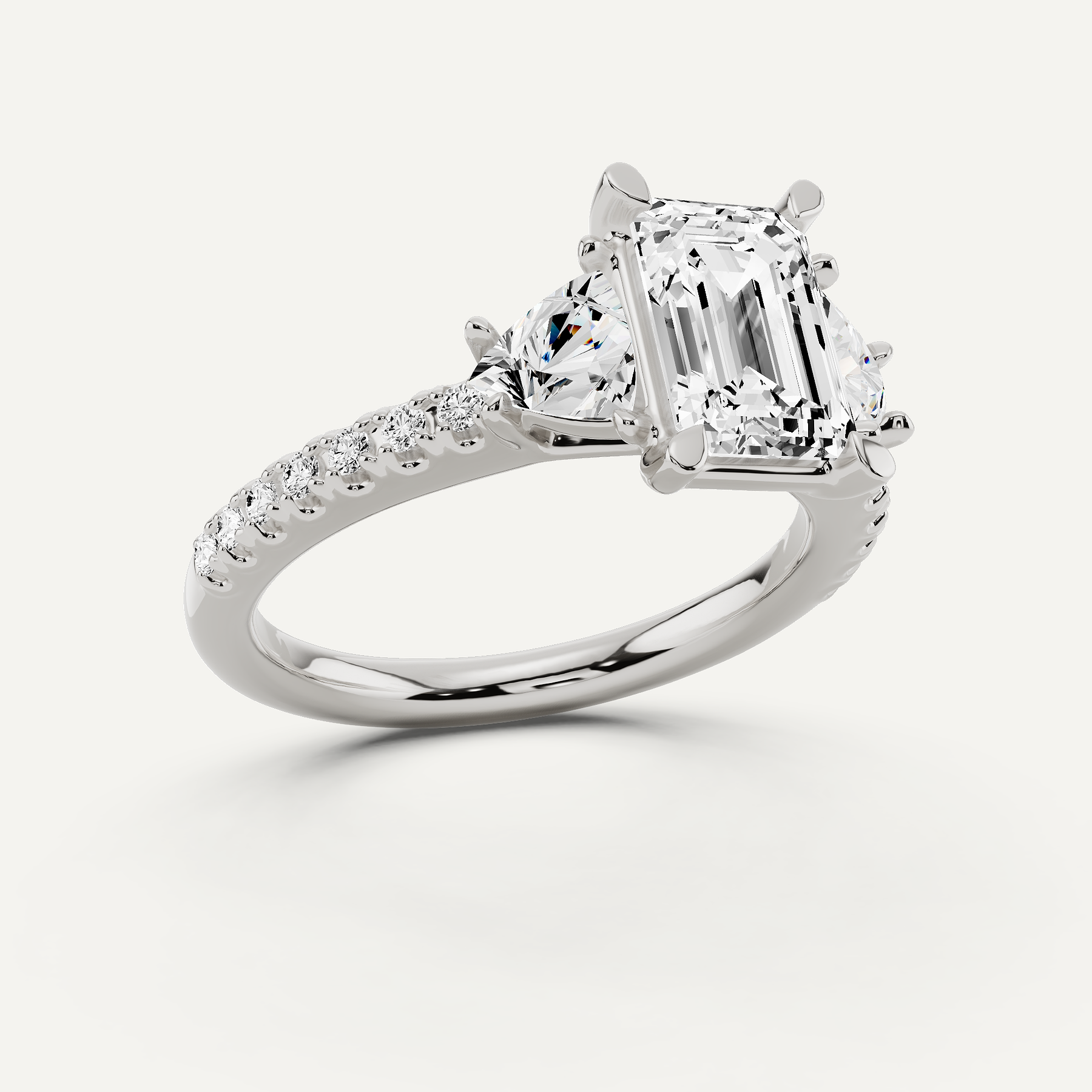 Express your love without breaking the bank - our Emerald cut Three Stone Diamond Engagement Ring harmonizes romance with budget-consciousness. Delve into the intricate differences among white gold, yellow gold, and rose gold variations, all while conducting a detailed self-examination of your preference for lab-grown or naturally sourced diamonds.