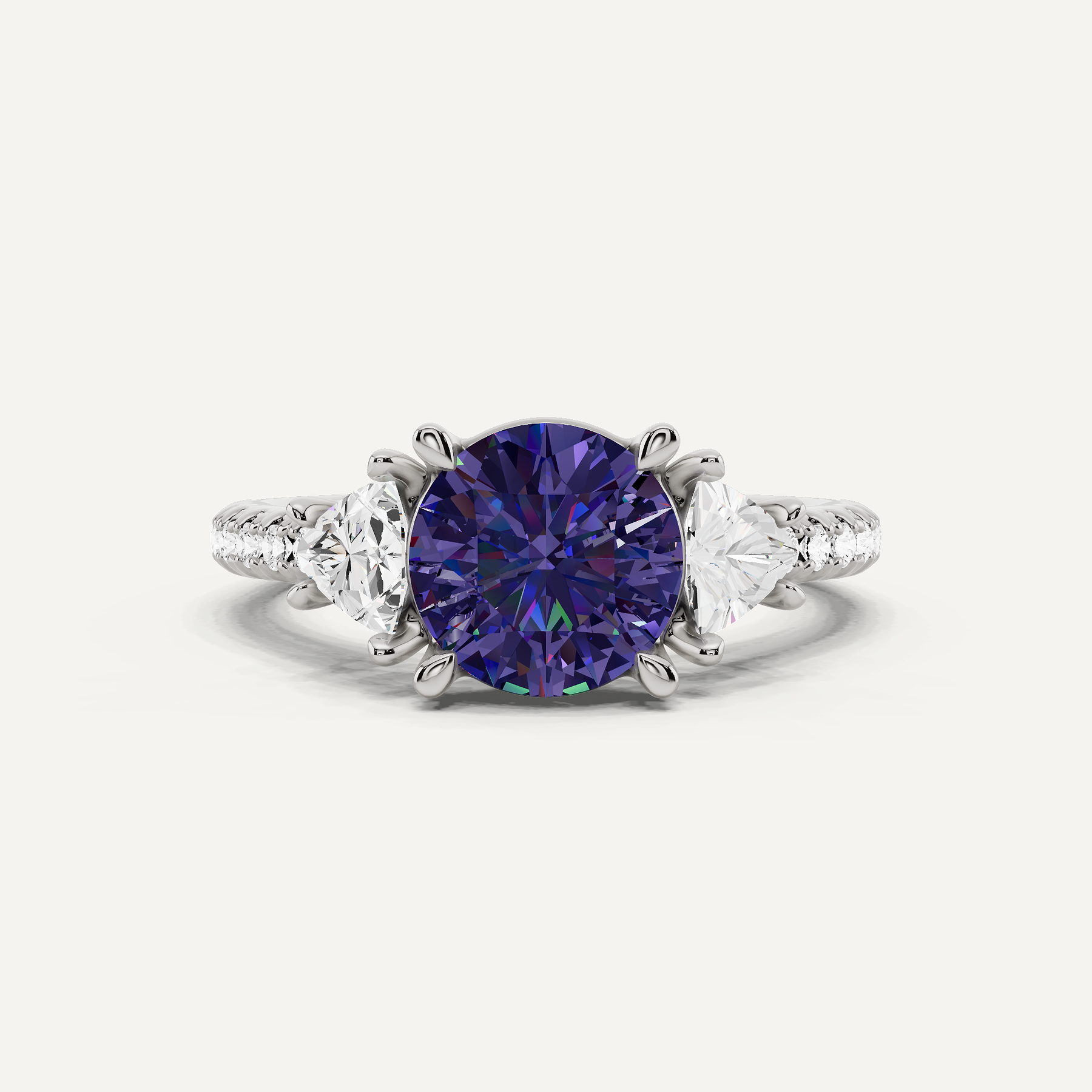 2 1/5 ctw Round Created Alexandrite Three Stone Engagement Ring With Trillion Side Stones