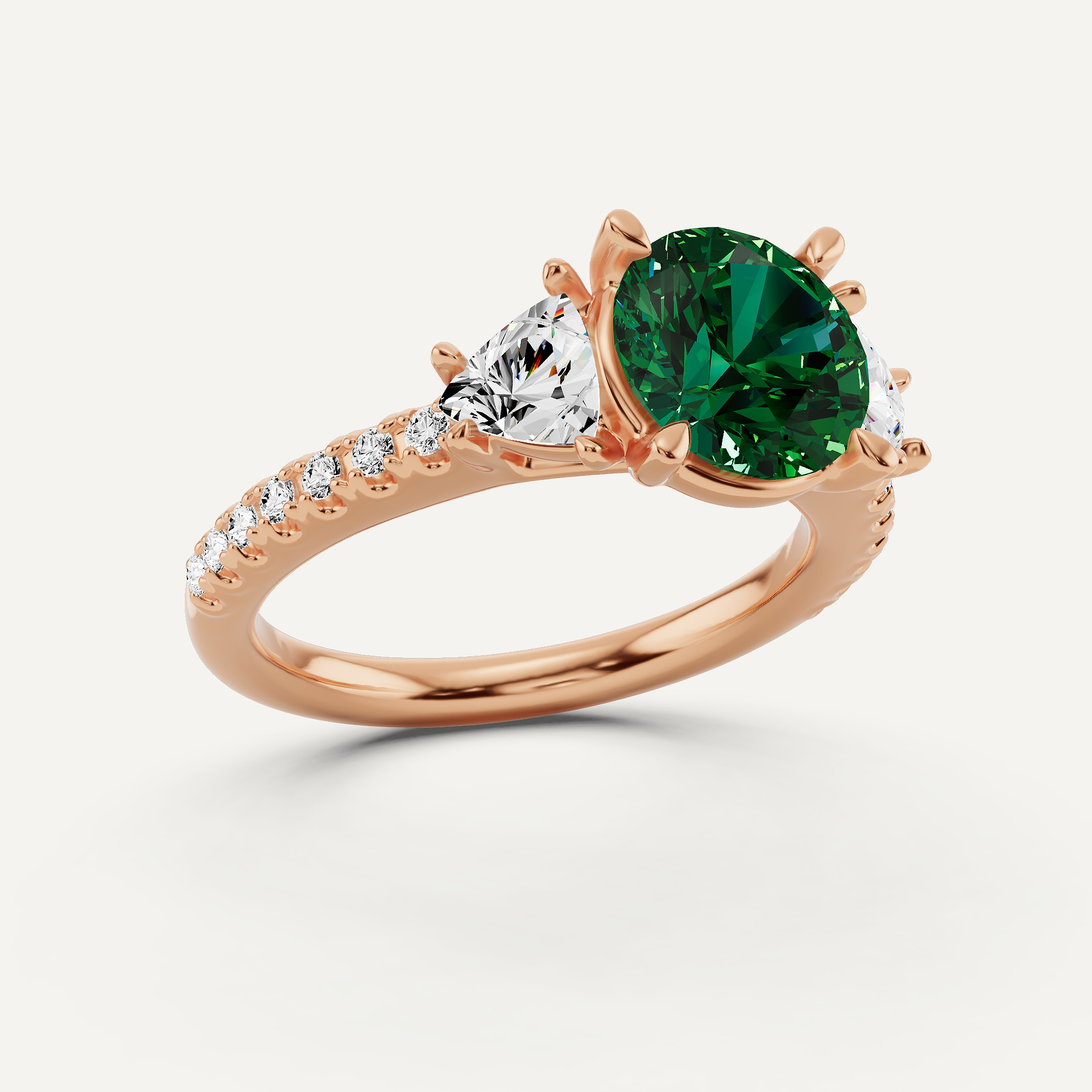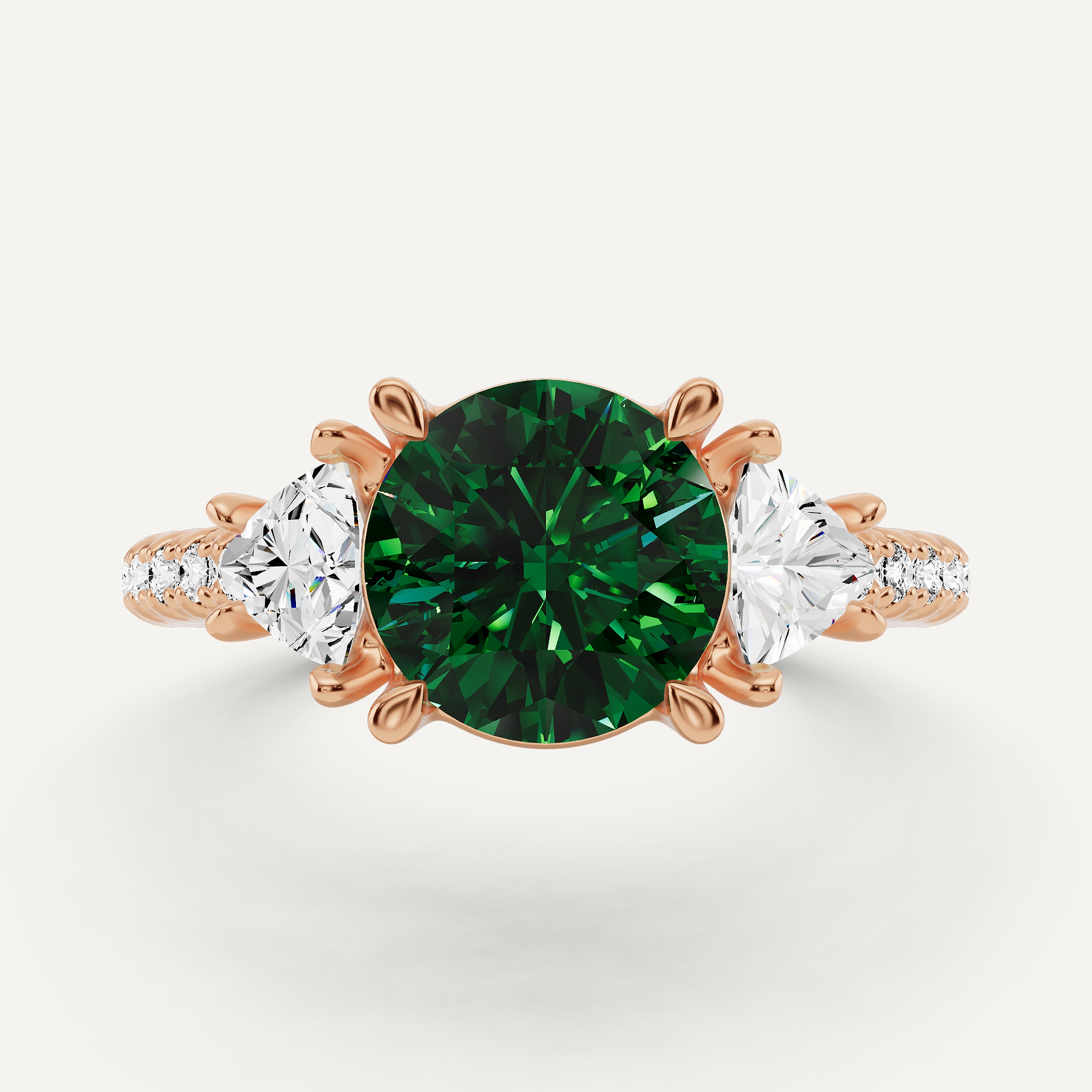 2 1/5 ctw Round Created Emerald Three Stone Engagement Ring With Trillion Side Stones