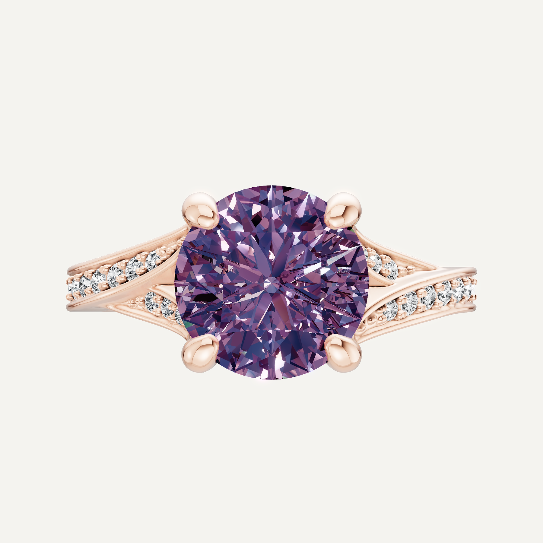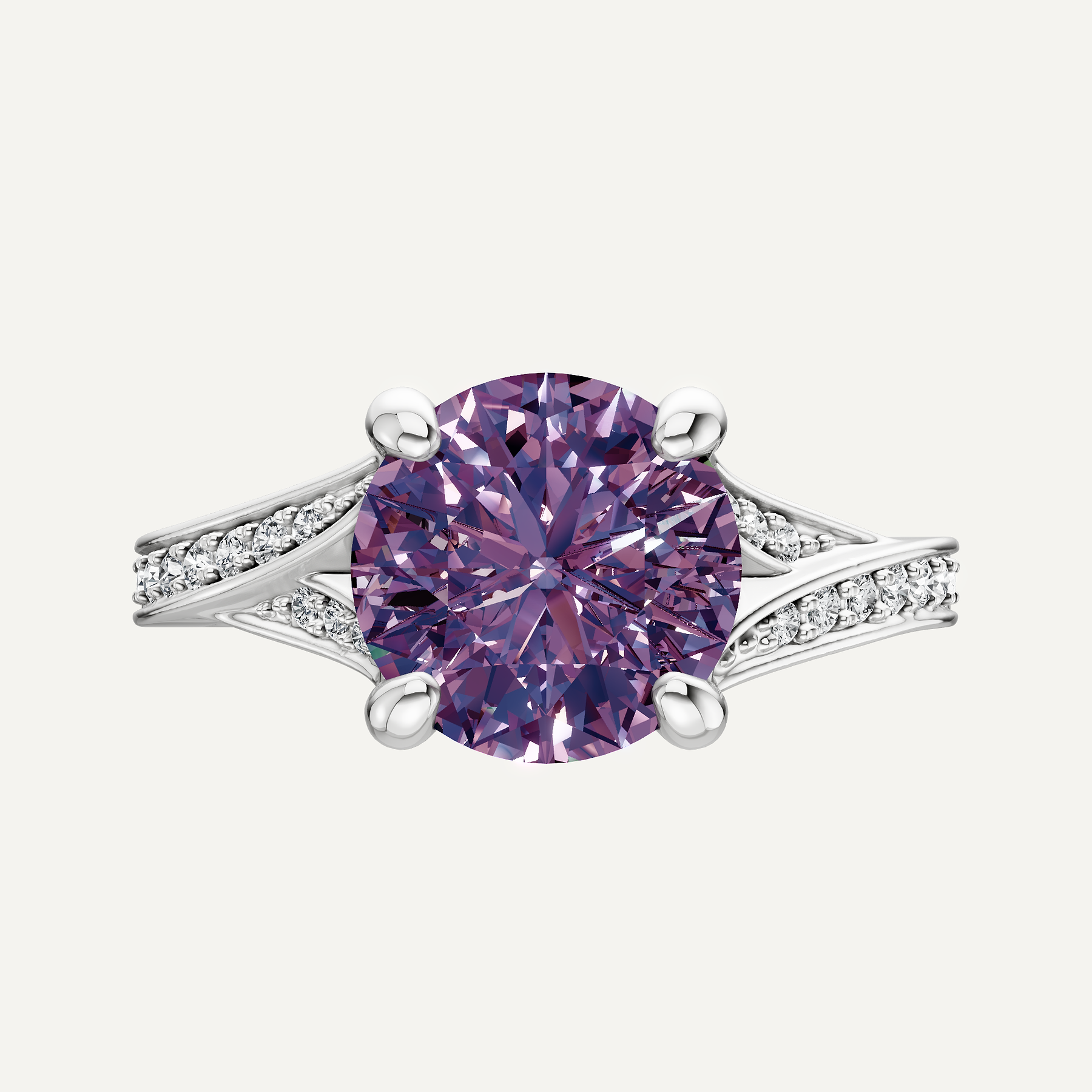 2 1/6 ctw Round Created Alexandrite Contemporary Split Shank Side Stone Engagement Ring