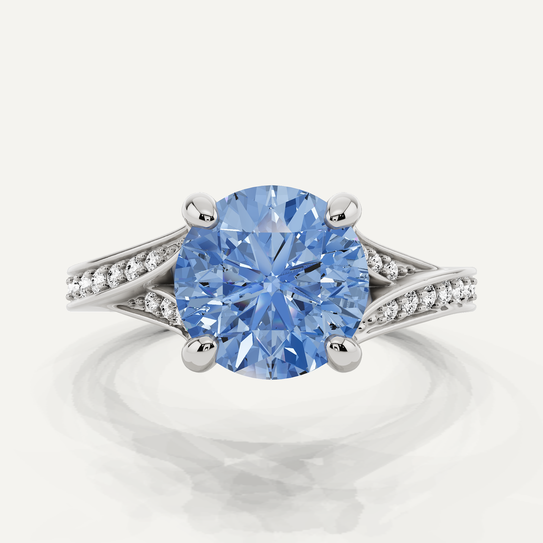 2 1/6 ctw Round Created Aquamarine Contemporary Split Shank Side Stone Engagement Ring