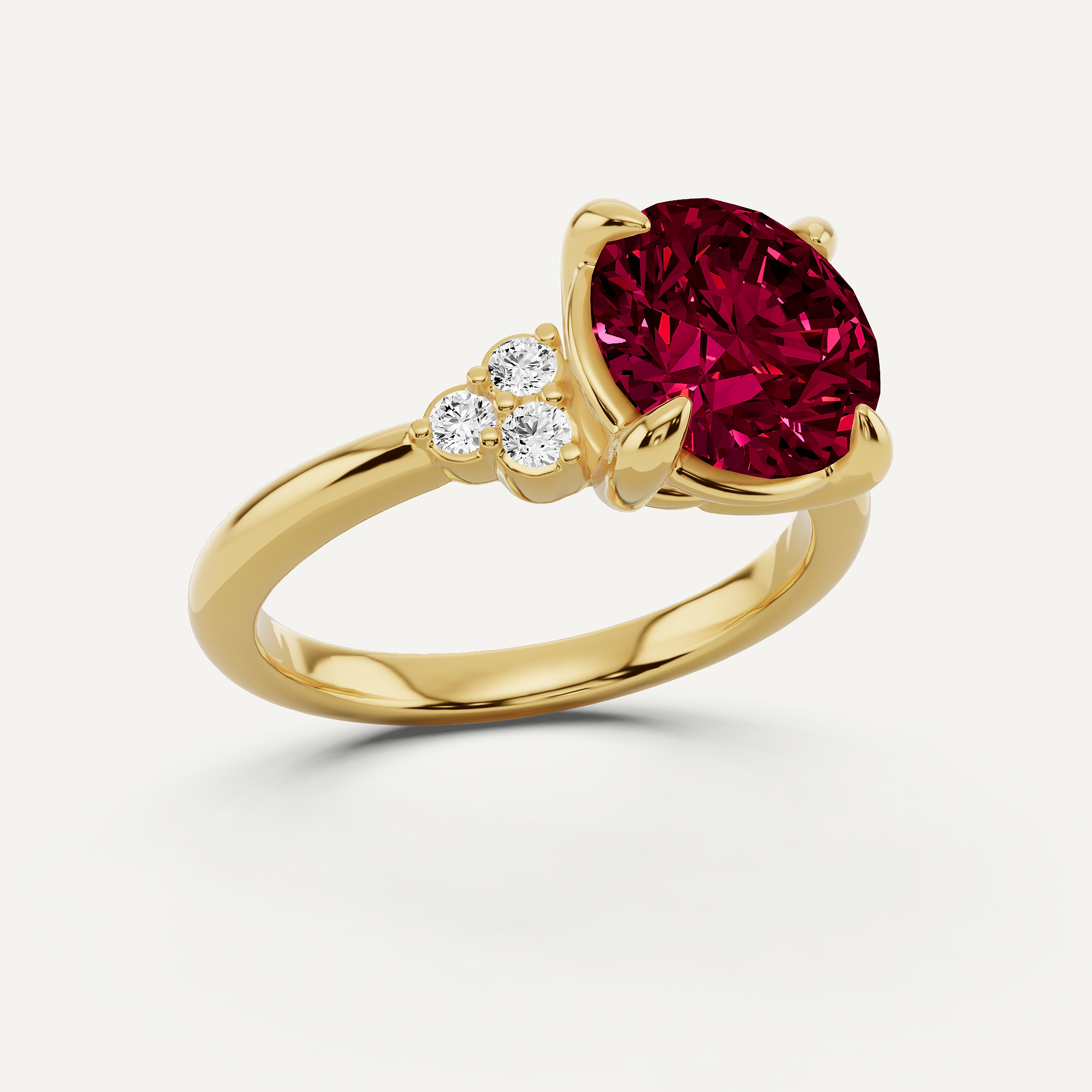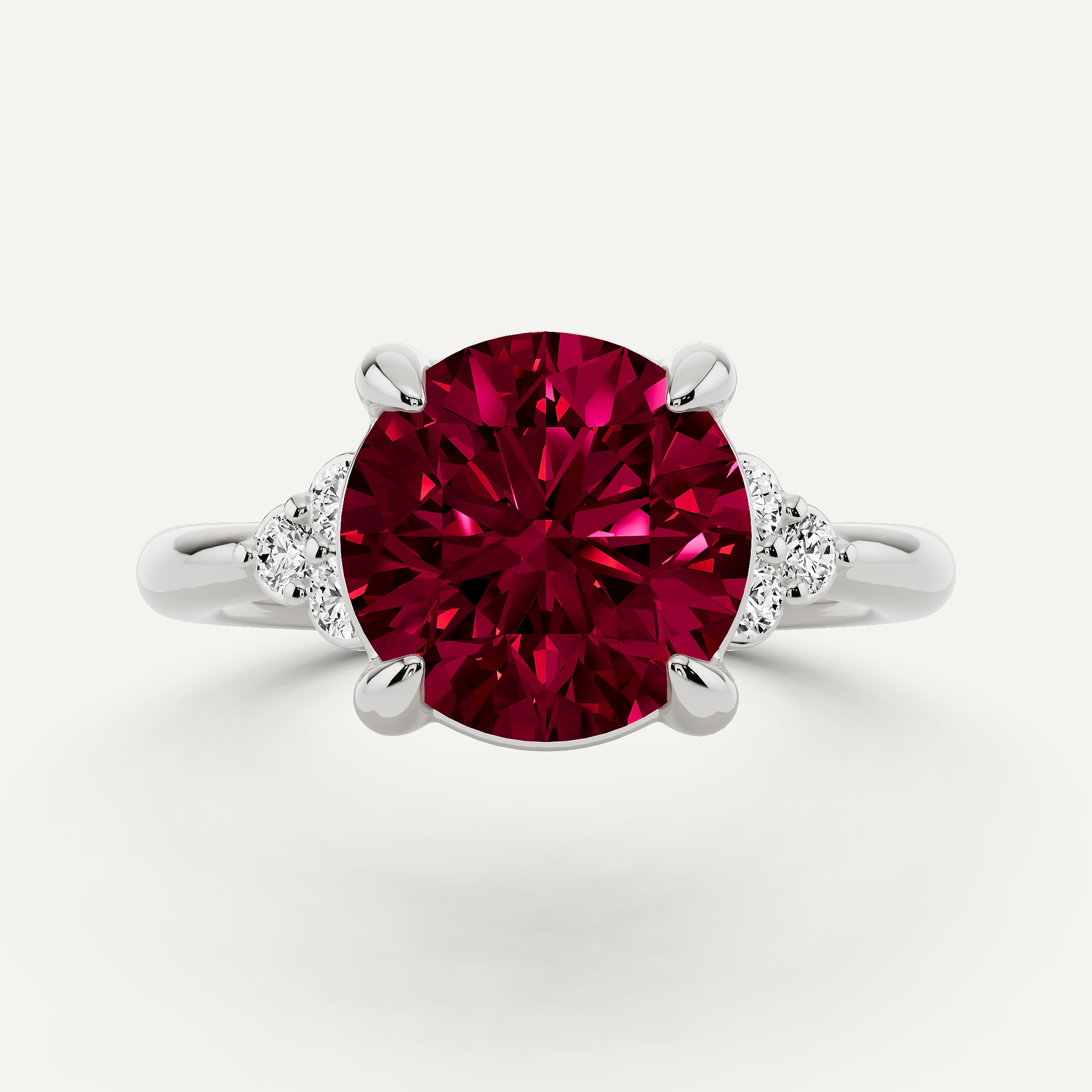 2 1/6 ctw Round Created Ruby Side Stone Engagement Ring