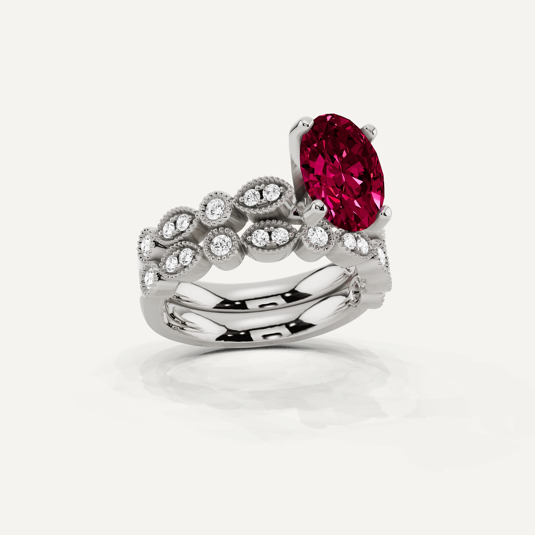Unveil everlasting charm without straining your budget with our Oval Diamond Marquise Shape Side Stone Bridal Set. Created especially for savvy shoppers, this set seamlessly marries the enchantment of a Oval-shaped diamond with the whimsical touch of marquise side stones. Say "I do" to affordable elegance and make your special day sparkle with this uniquely crafted and budget-friendly bridal set!