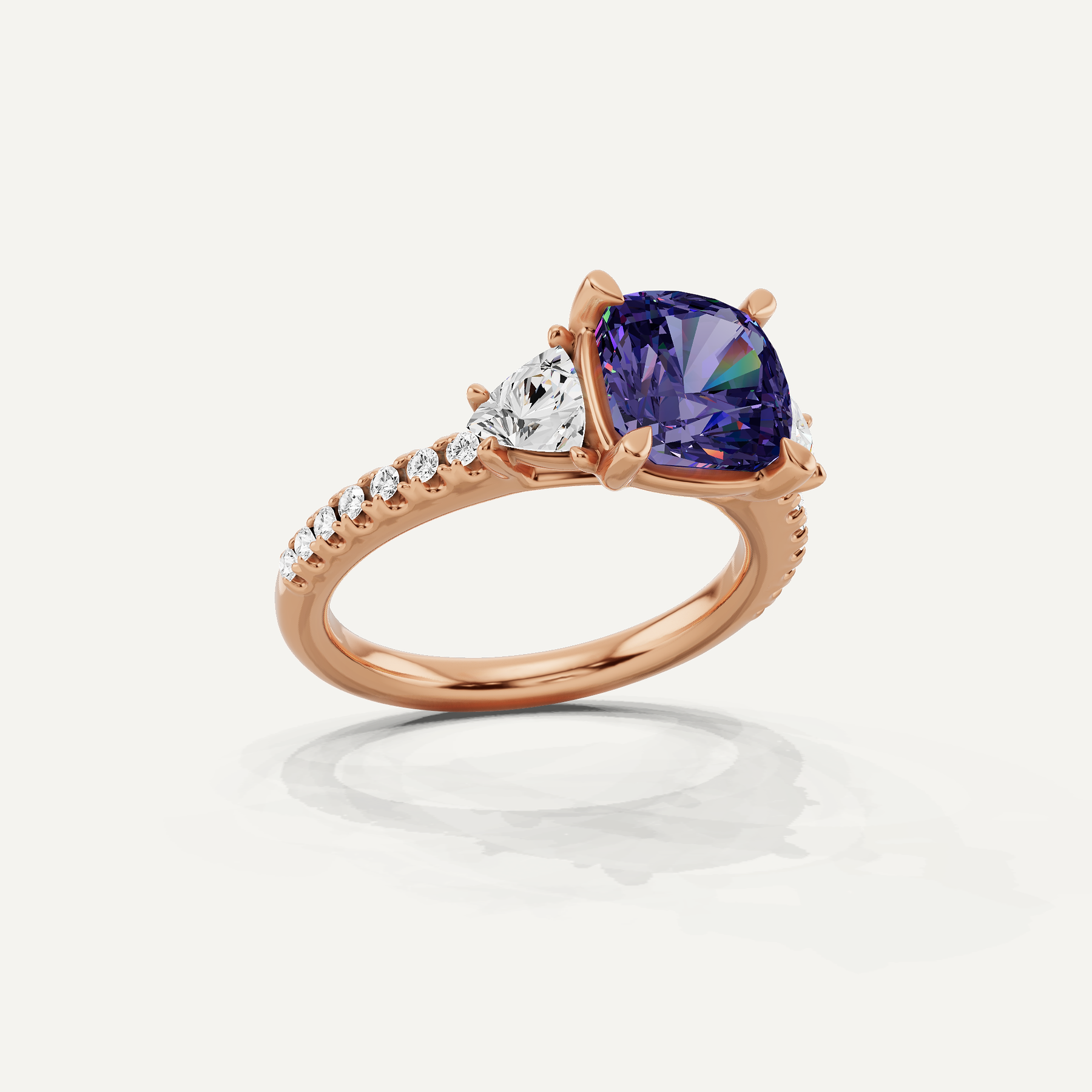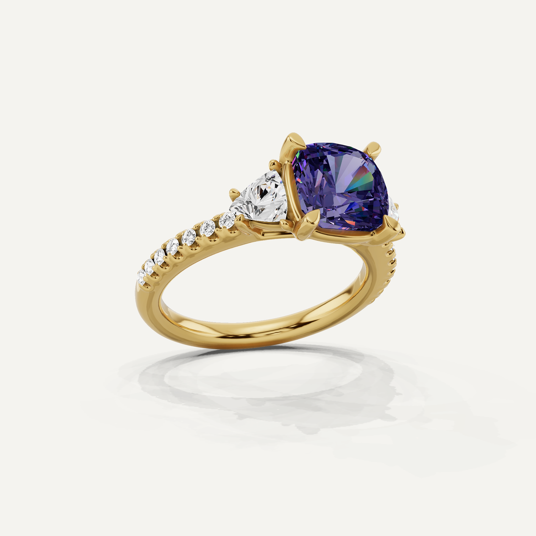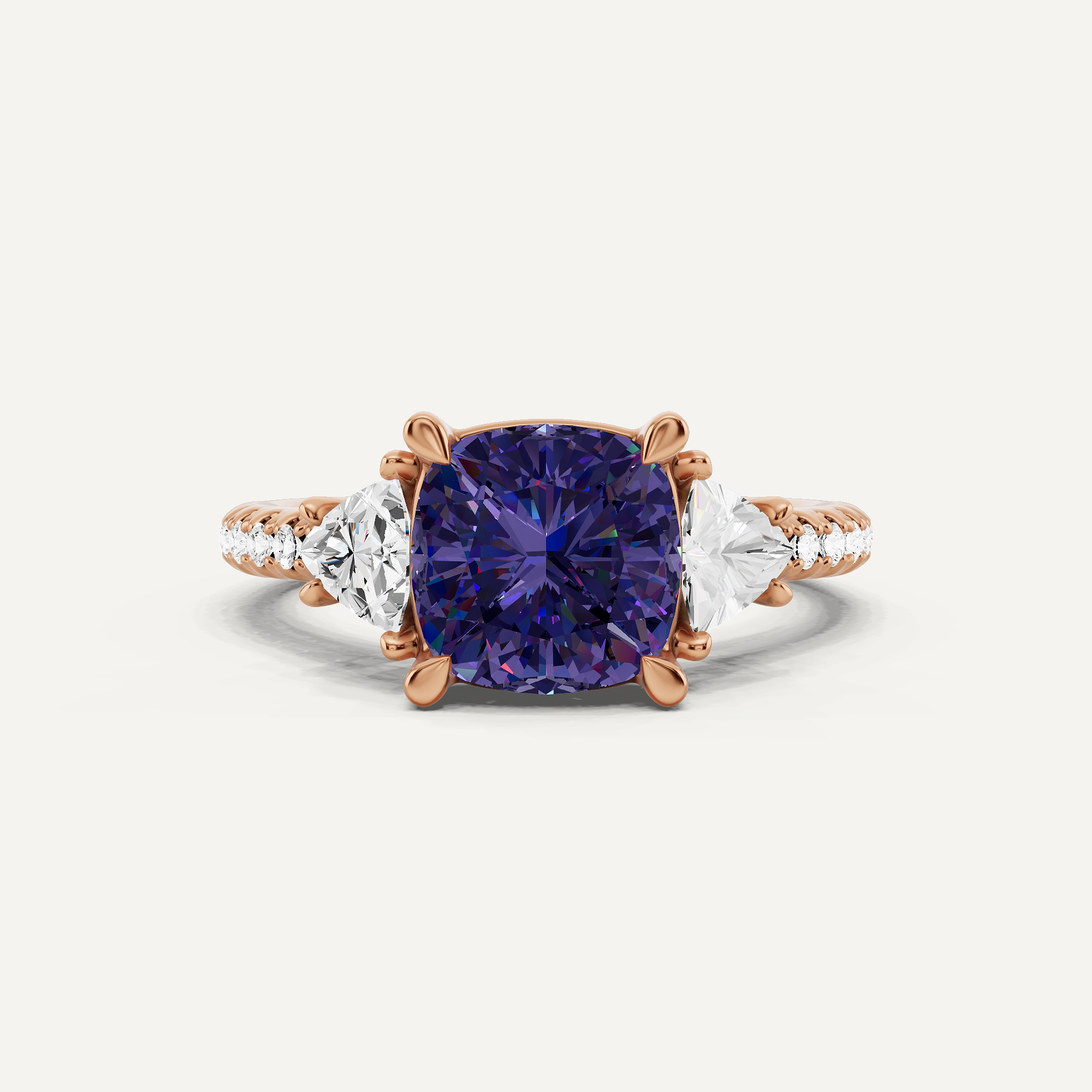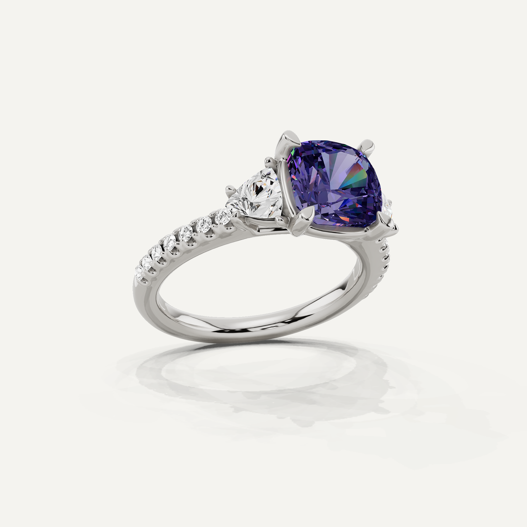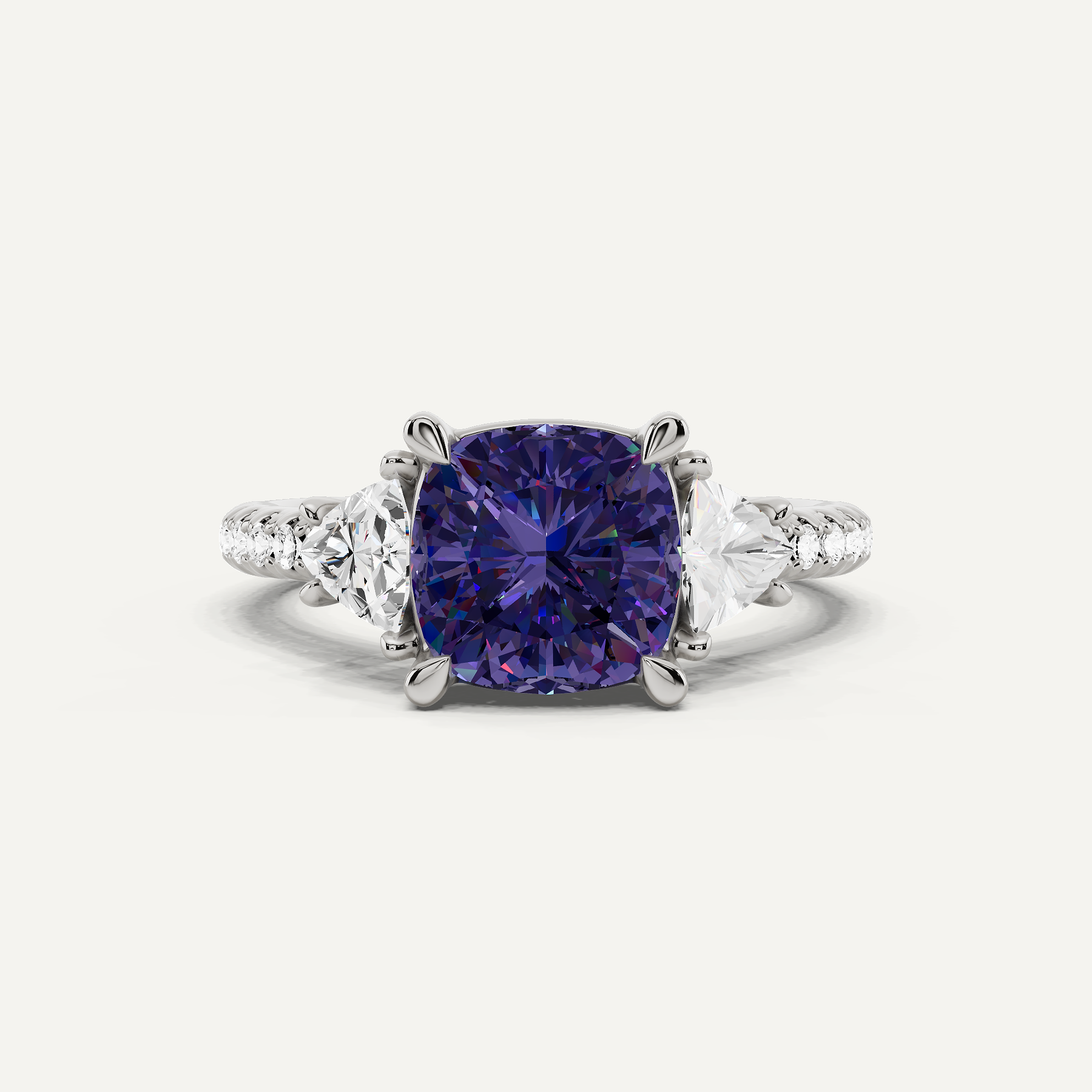 2 3/4 ctw Cushion Created Alexandrite Three Stone Engagement Ring With Trillion Side Stones