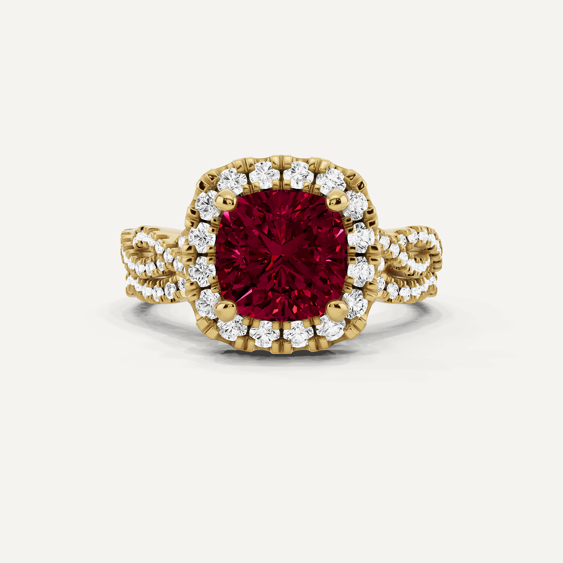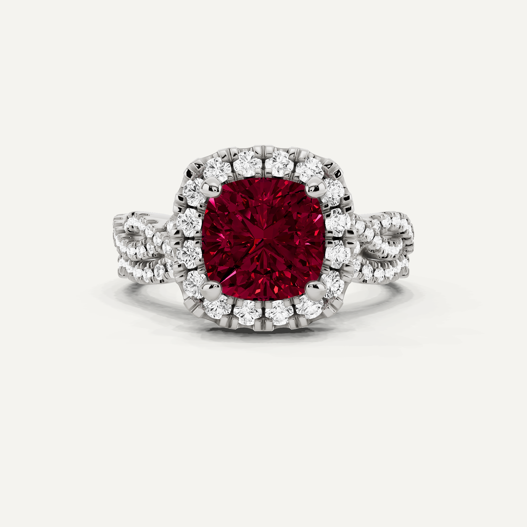 2 3/4 ctw Cushion Diamond Double Twist Halo Bridal Set