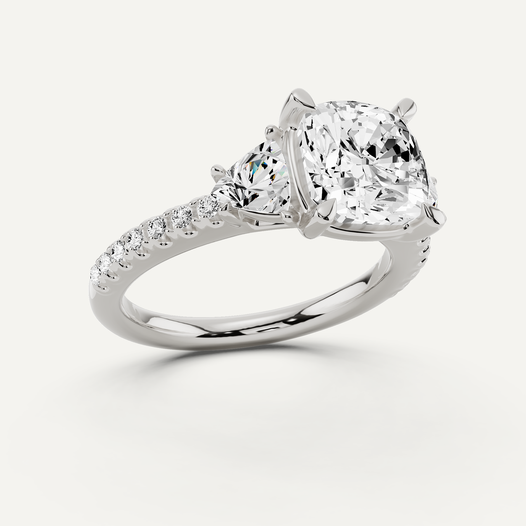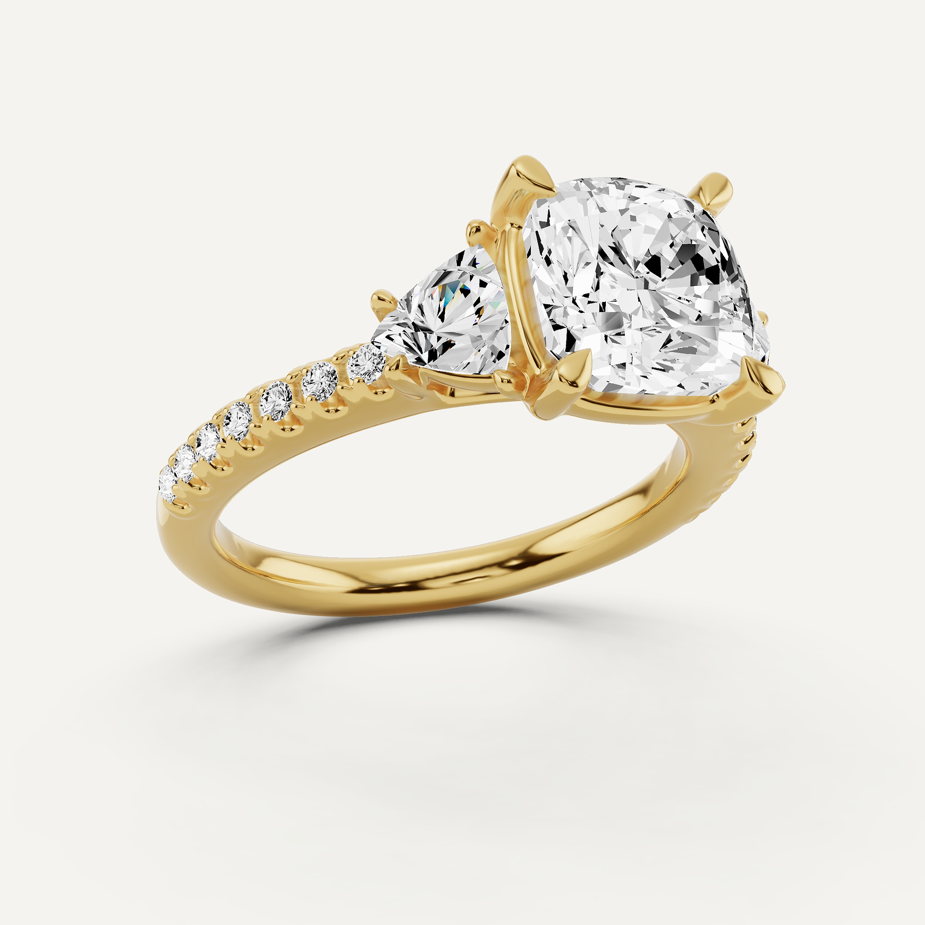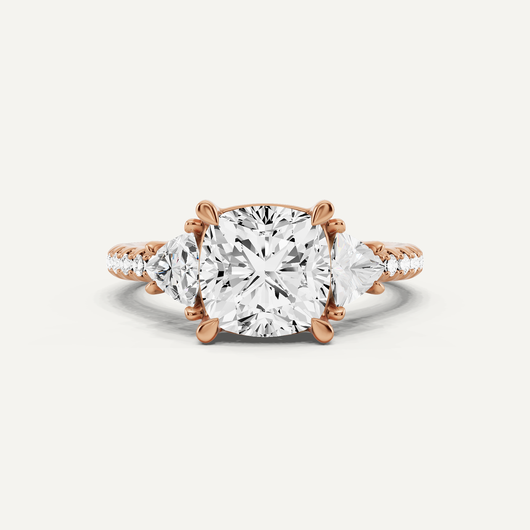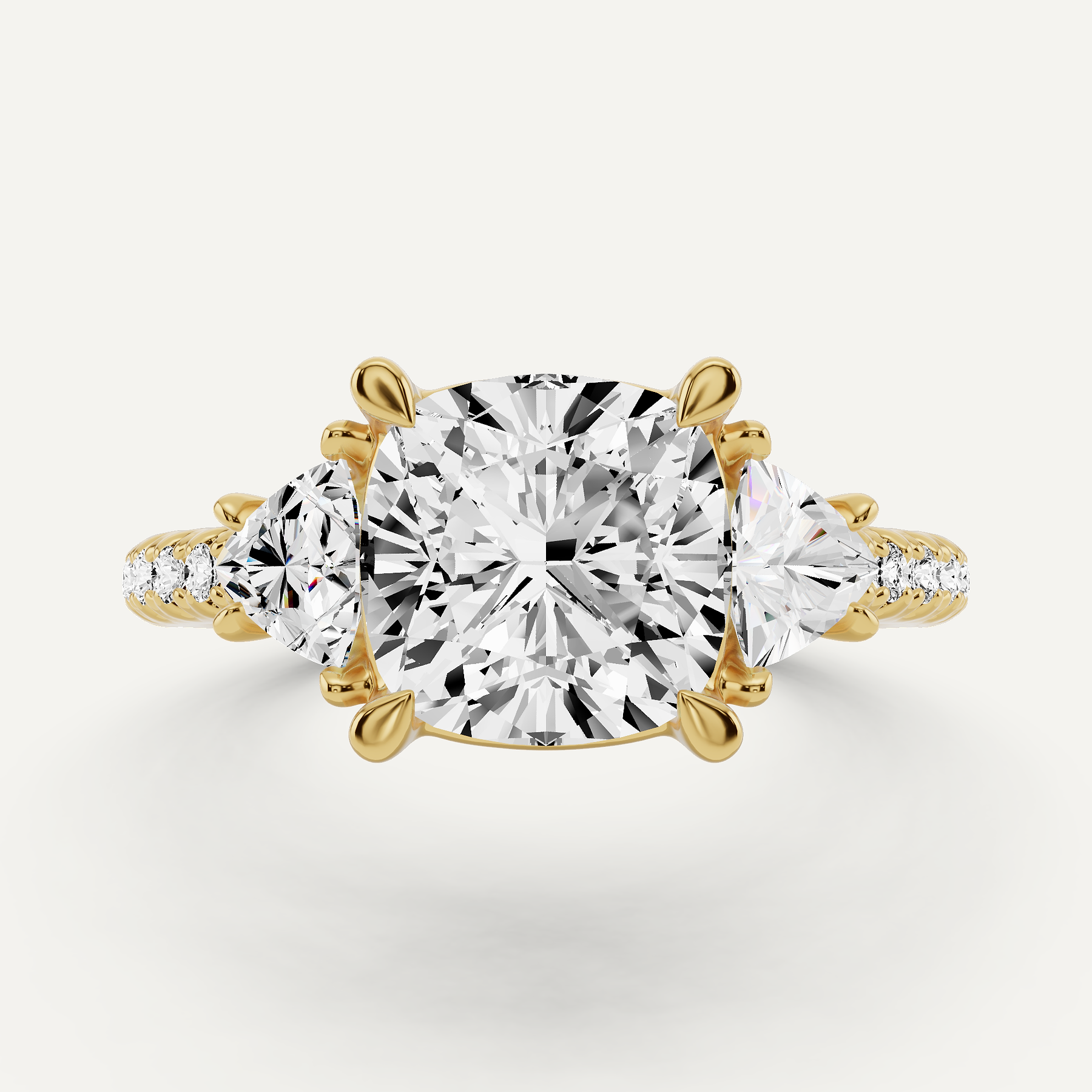 Express your love without breaking the bank - our Cushion cut Three Stone Diamond Engagement Ring harmonizes romance with budget-consciousness. Delve into the intricate differences among white gold, yellow gold, and rose gold variations, all while conducting a detailed self-examination of your preference for lab-grown or naturally sourced diamonds.
