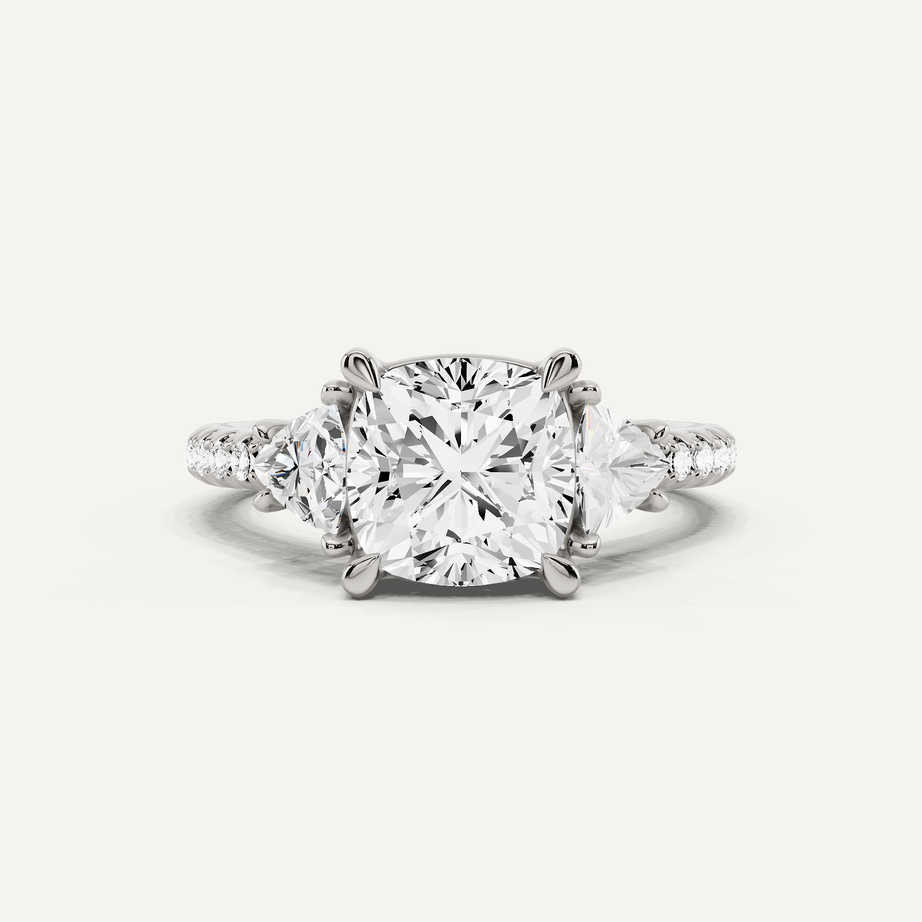 2 3/4 ctw Cushion Diamond Three Stone Engagement Ring With Trillion Side Stones