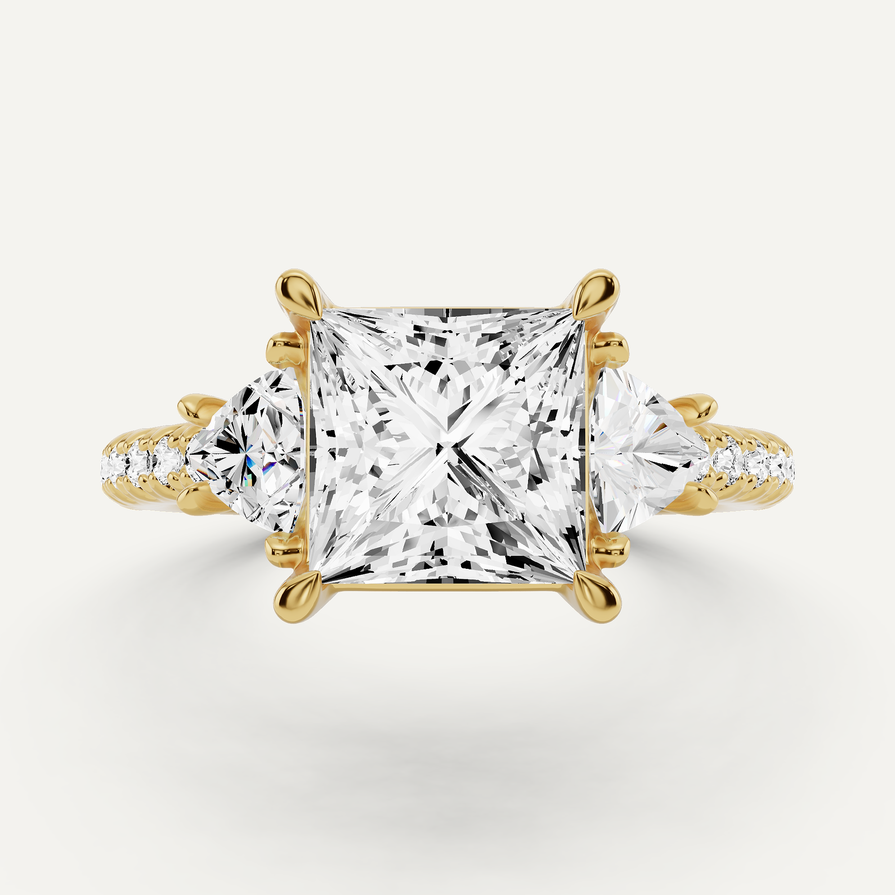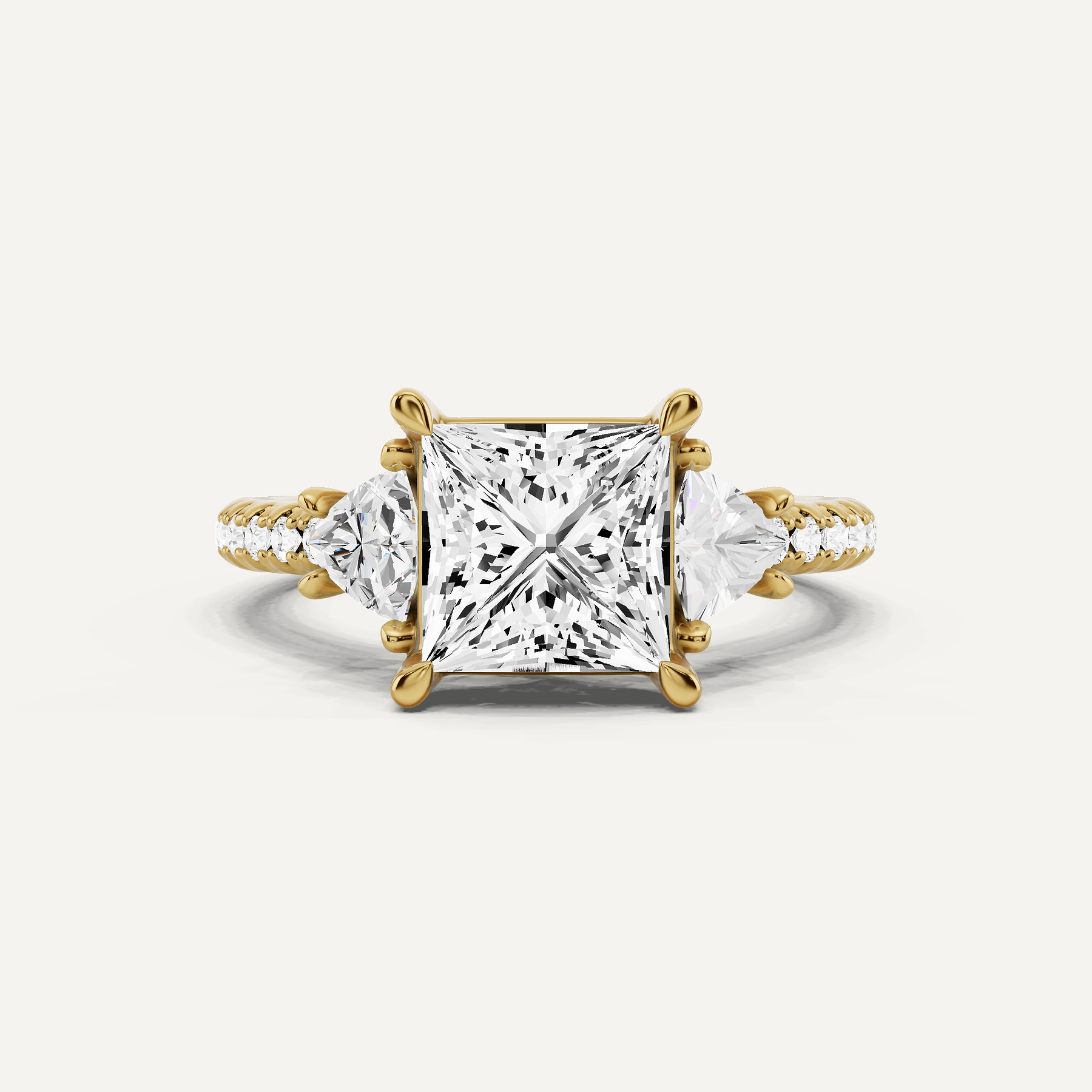 Express your love without breaking the bank - our Princess cut Three Stone Diamond Engagement Ring harmonizes romance with budget-consciousness. Delve into the intricate differences among white gold, yellow gold, and rose gold variations, all while conducting a detailed self-examination of your preference for lab-grown or naturally sourced diamonds.