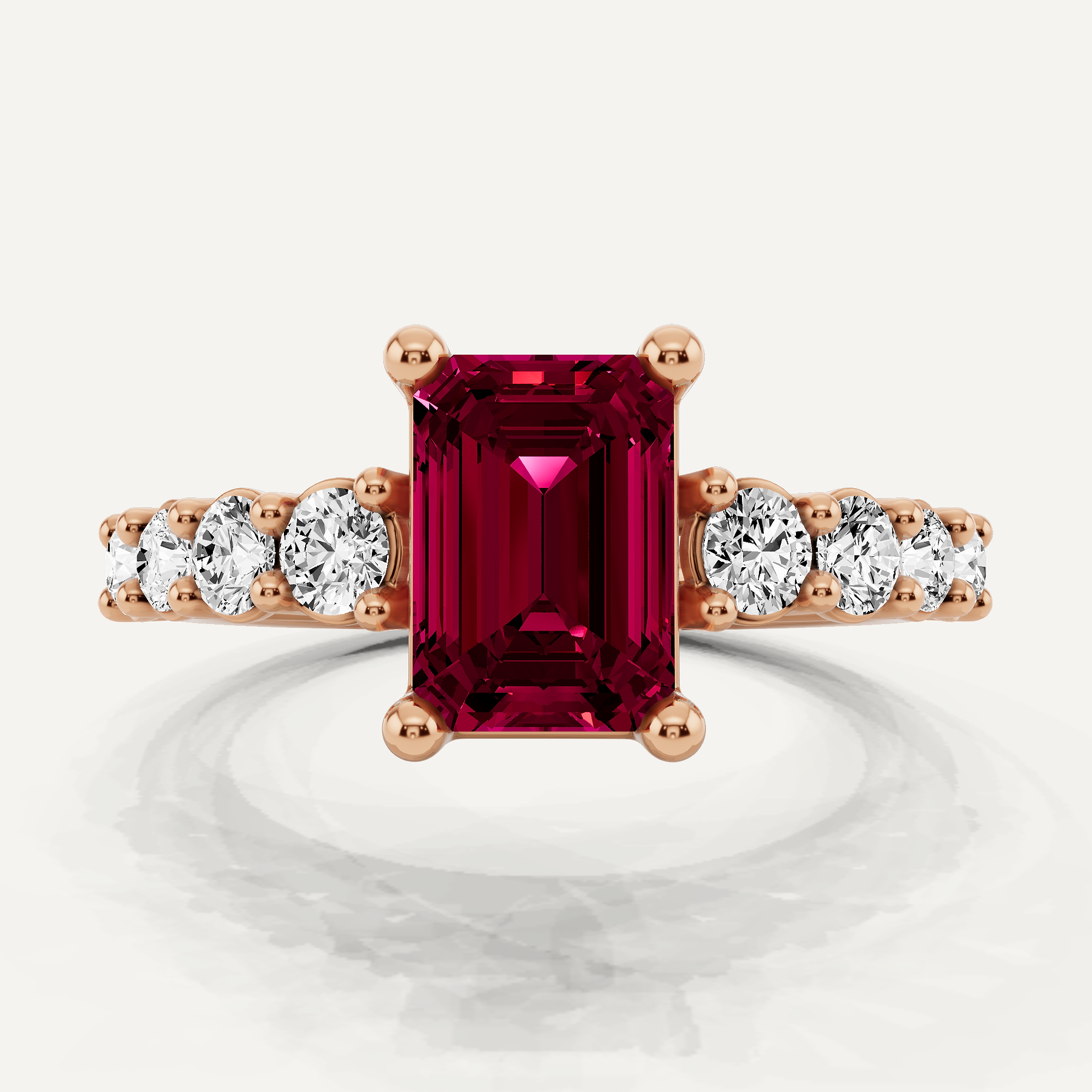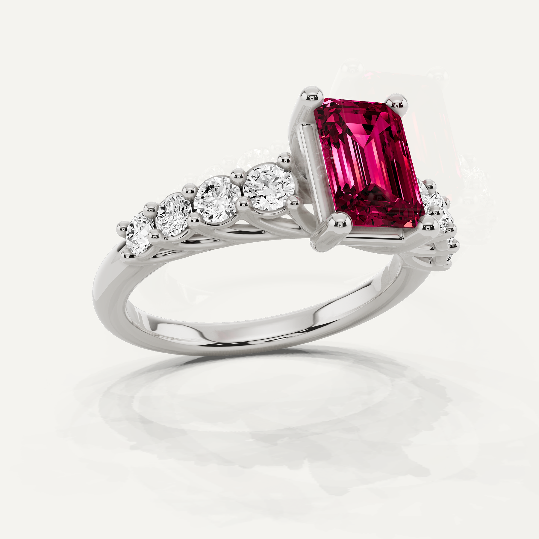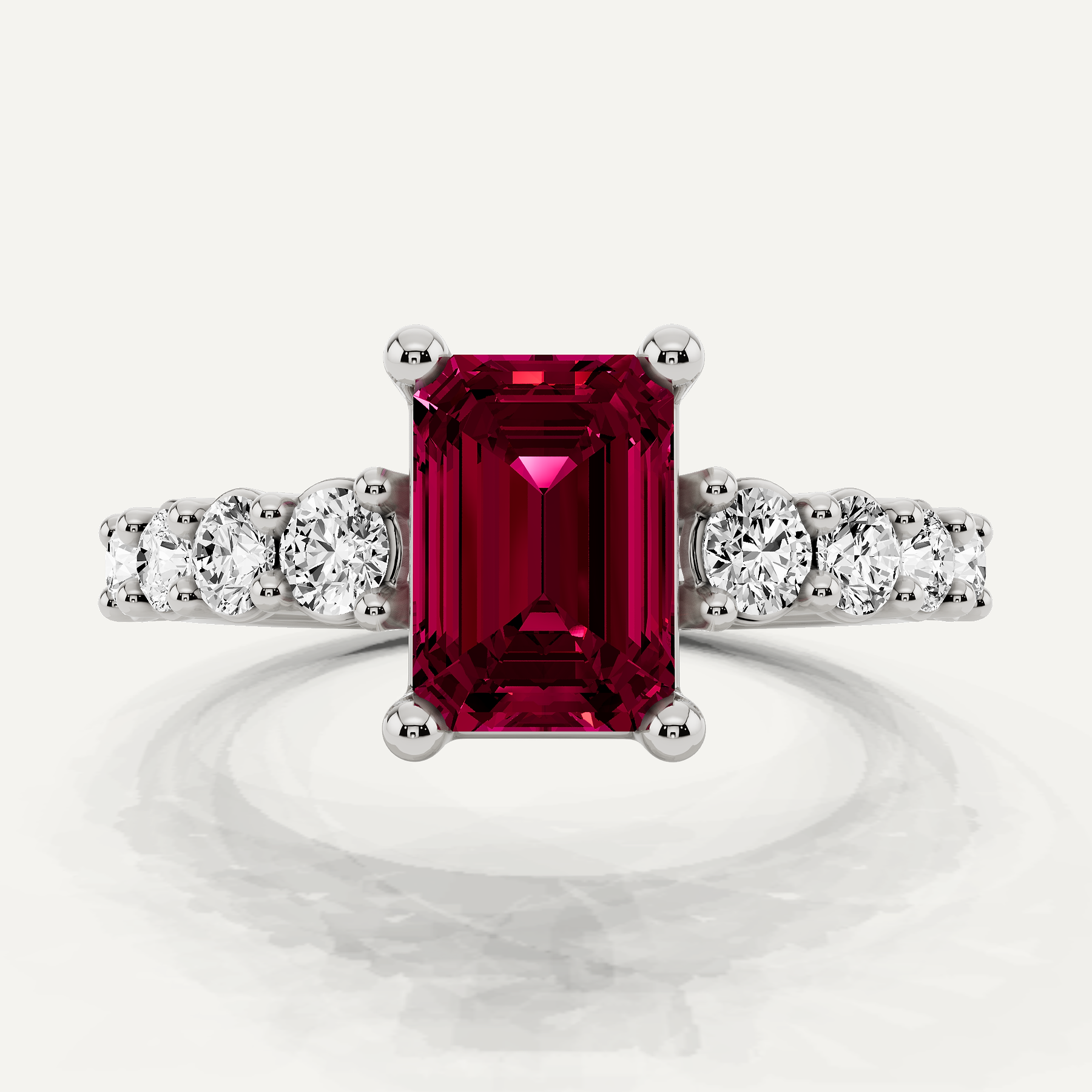 2 ctw Emerald Created Ruby Graduating Side Stone Engagement Ring