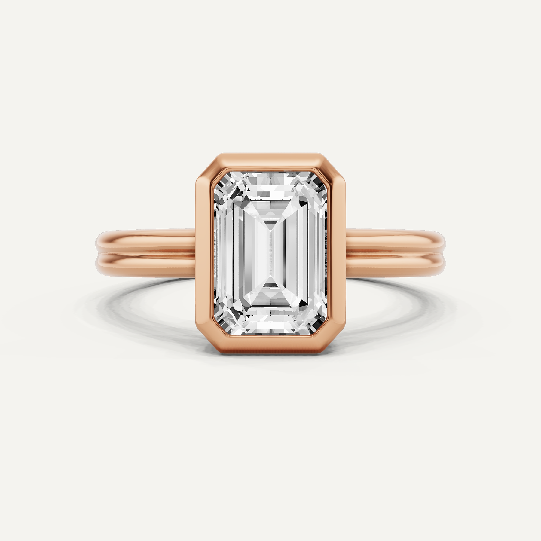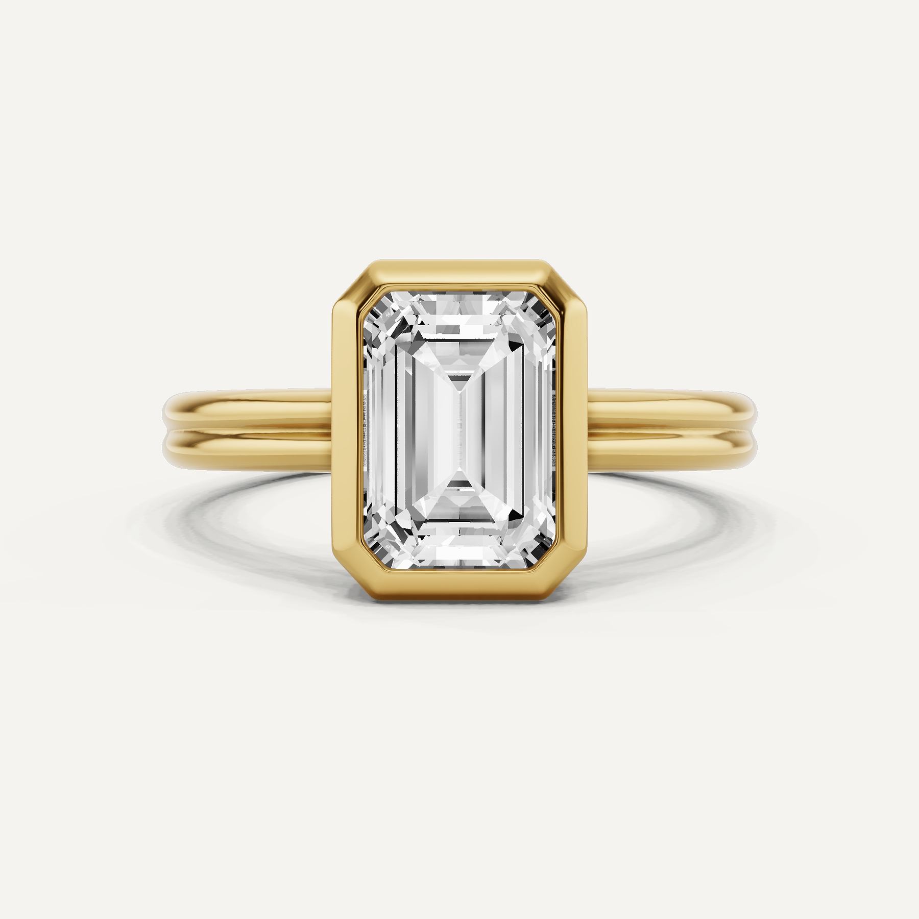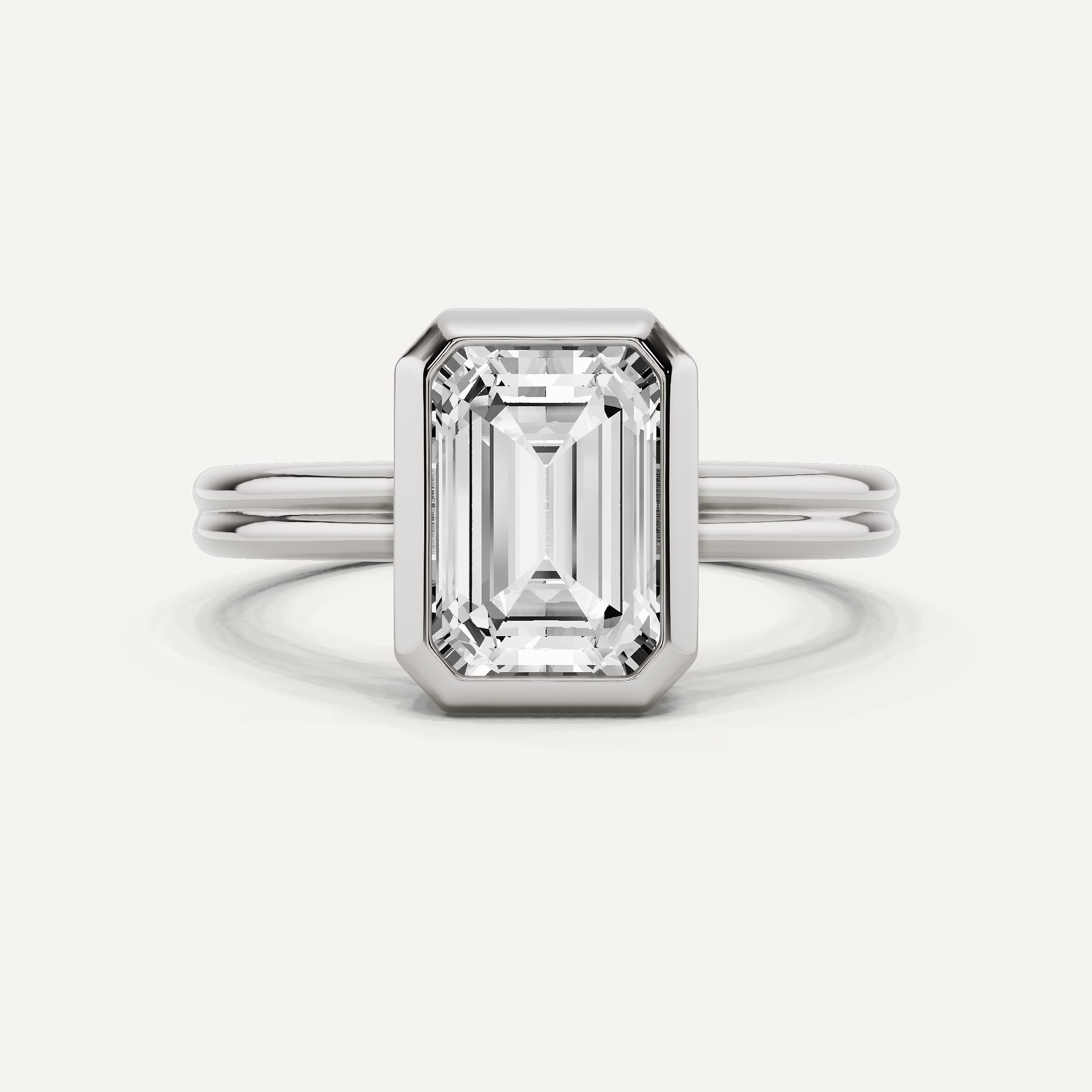2 ctw Emerald Diamond Bezel Set Double Shank Solitaire Engagement Ring