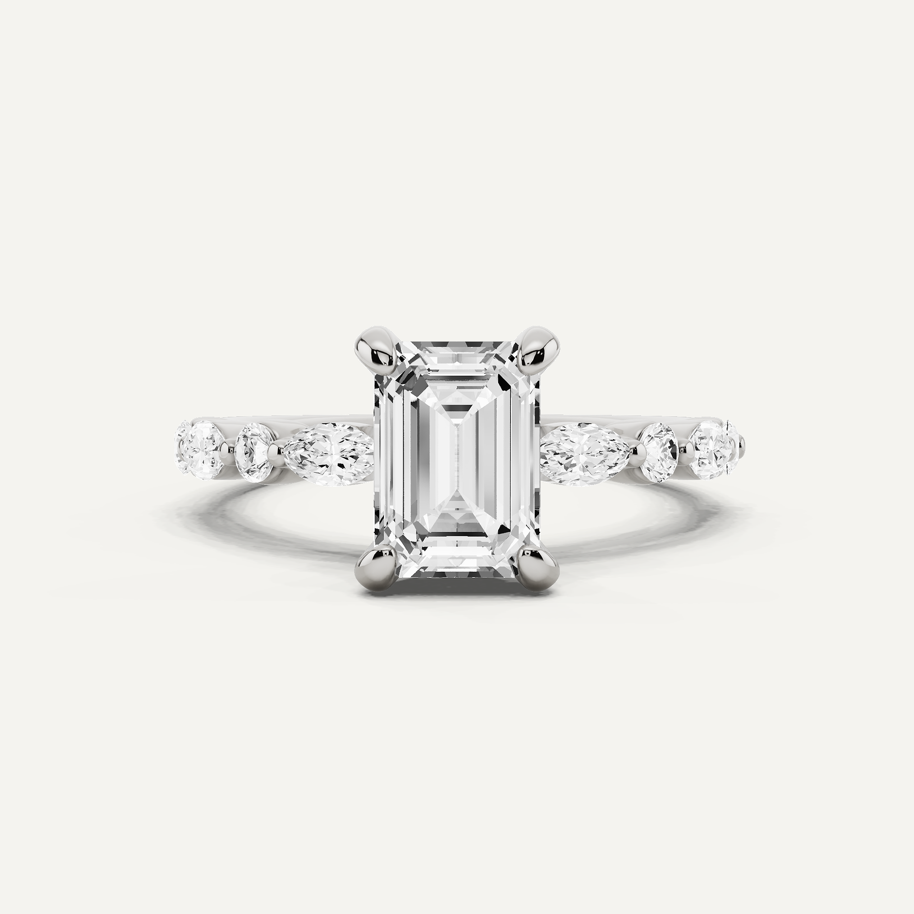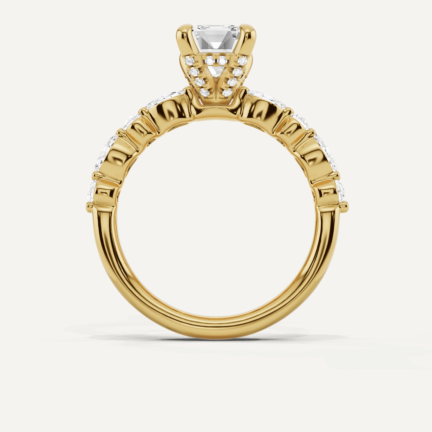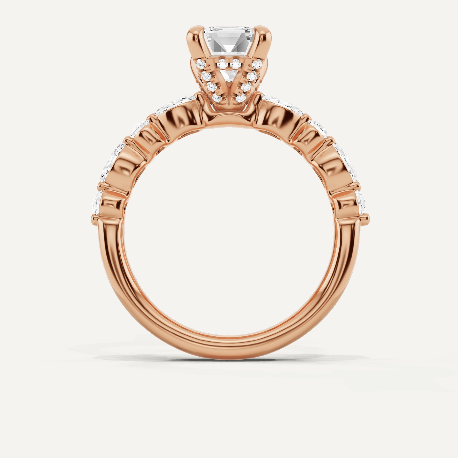 2 ctw Emerald Diamond Hidden Halo Accent Engagement Ring