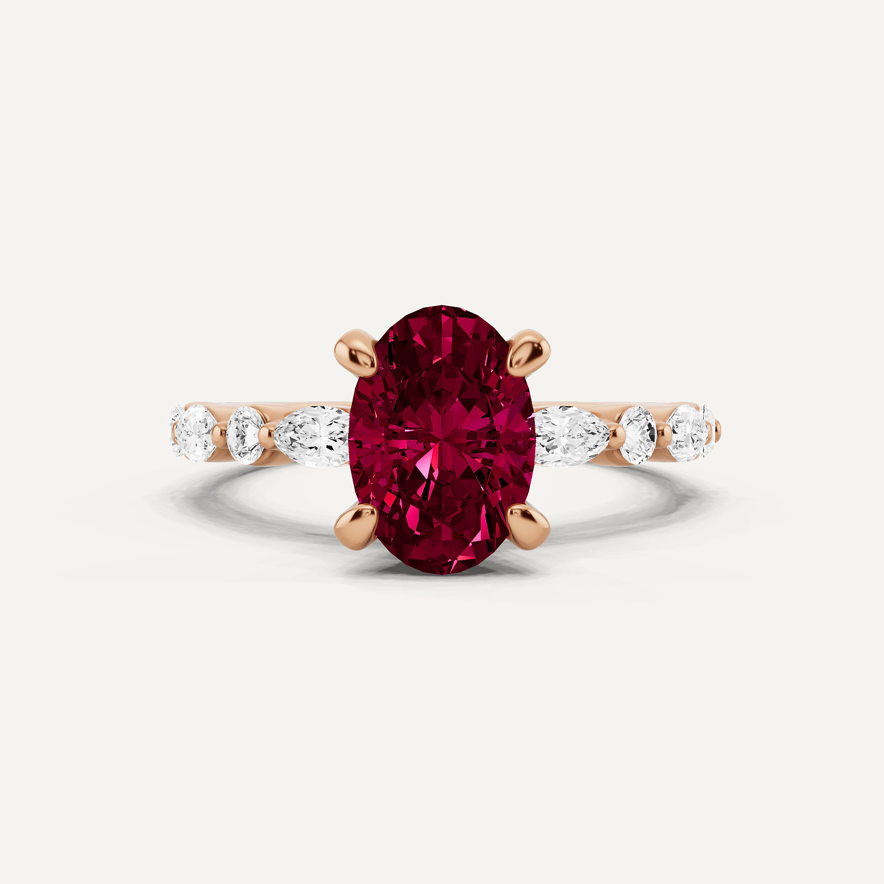 2 ctw Oval Created Ruby Hidden Halo Accent Engagement Ring