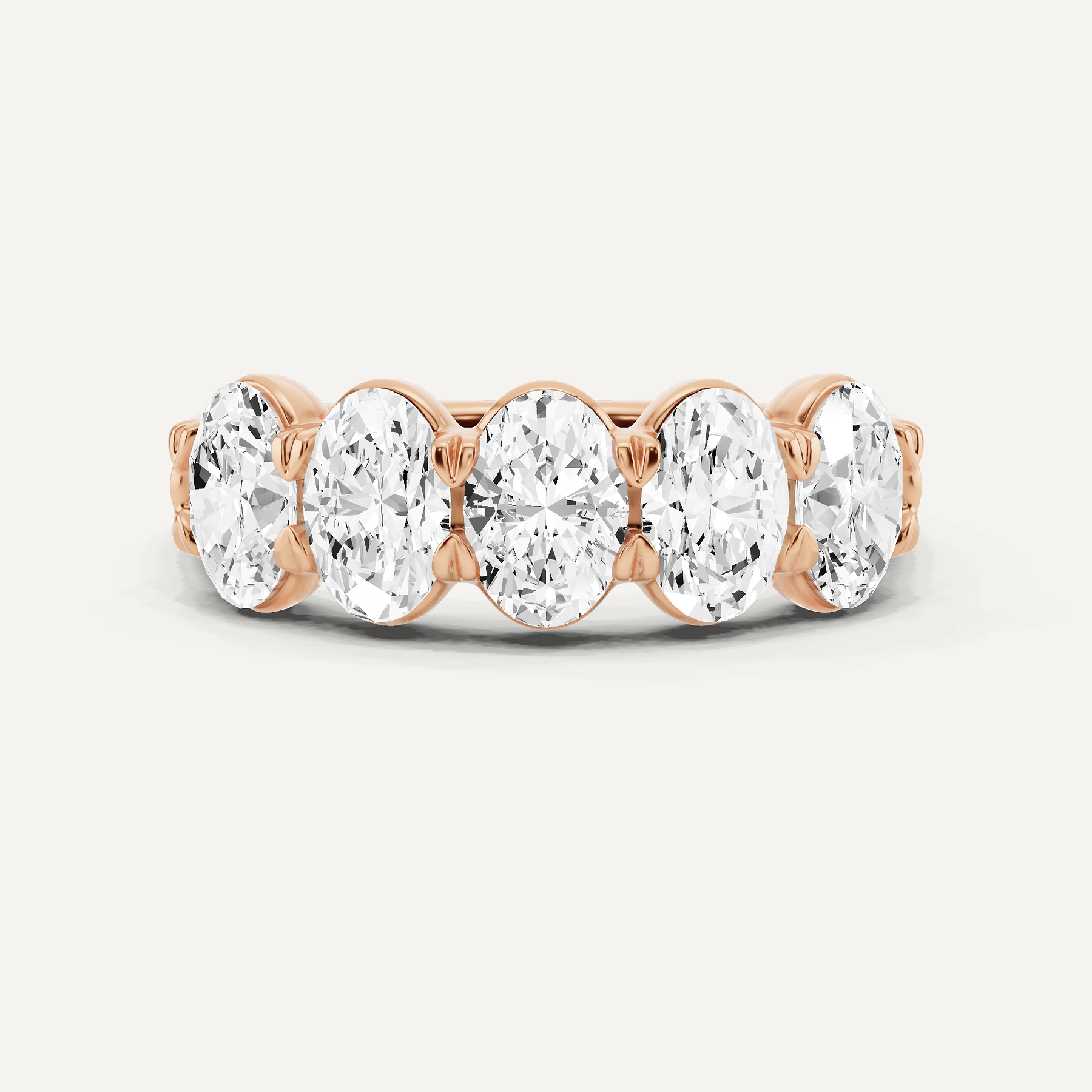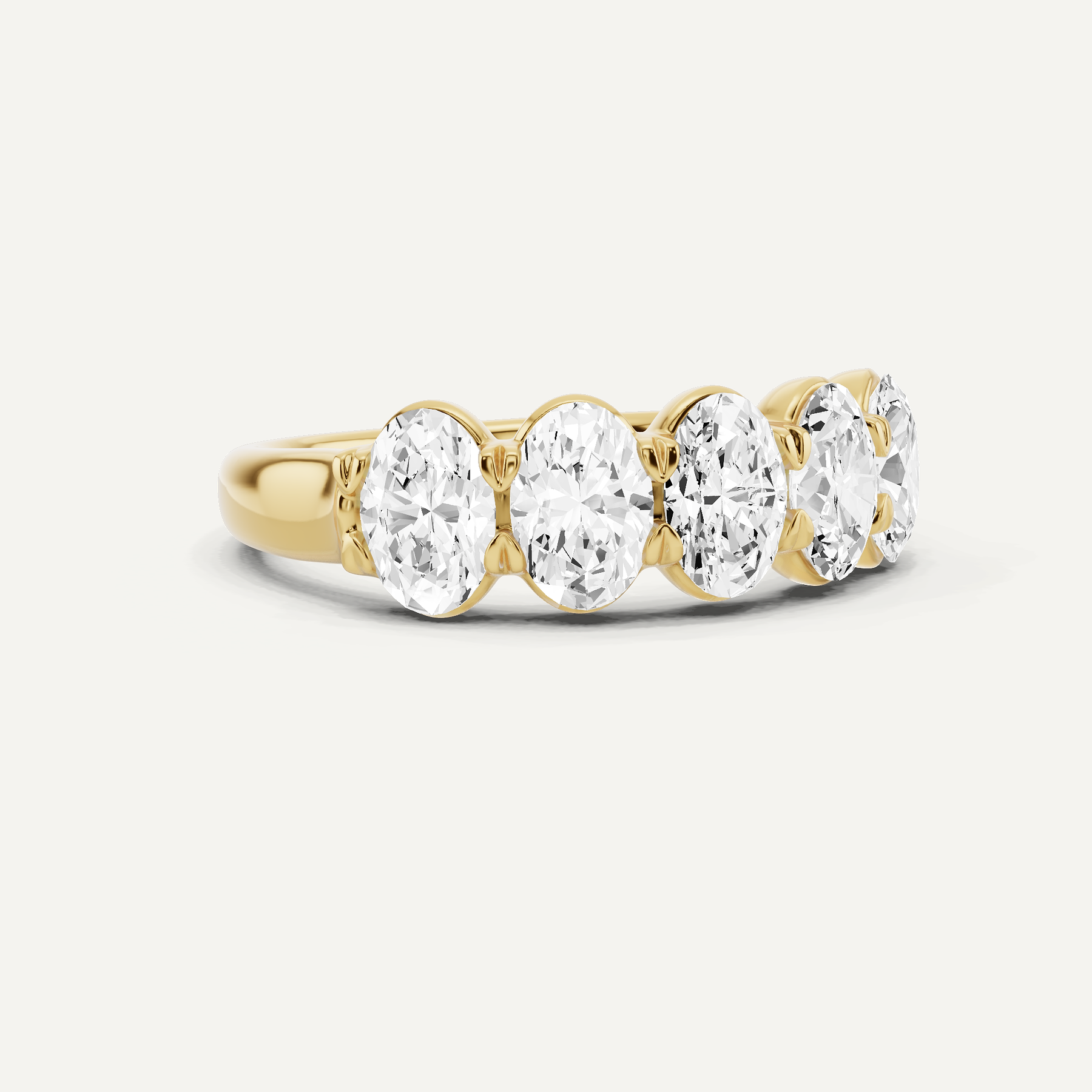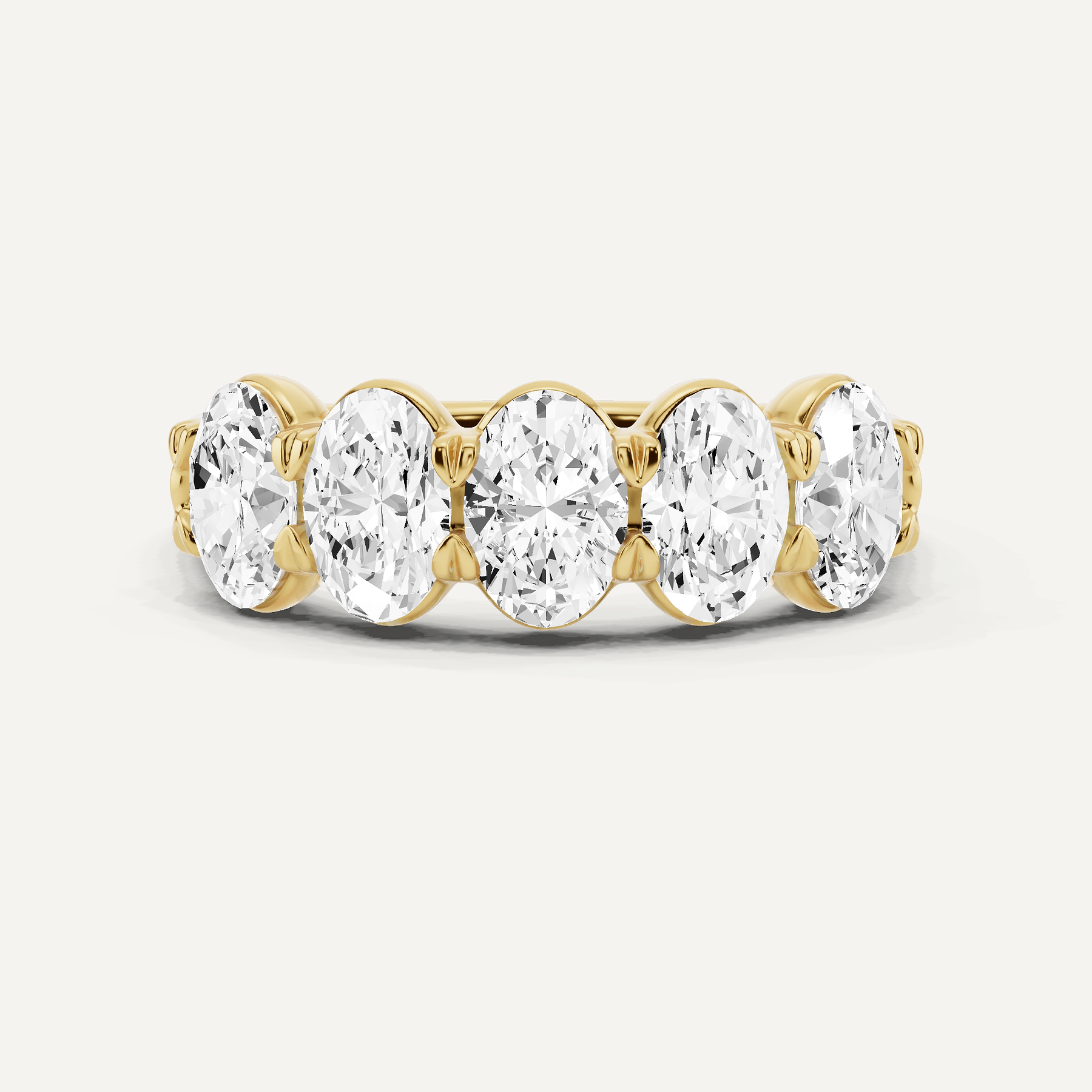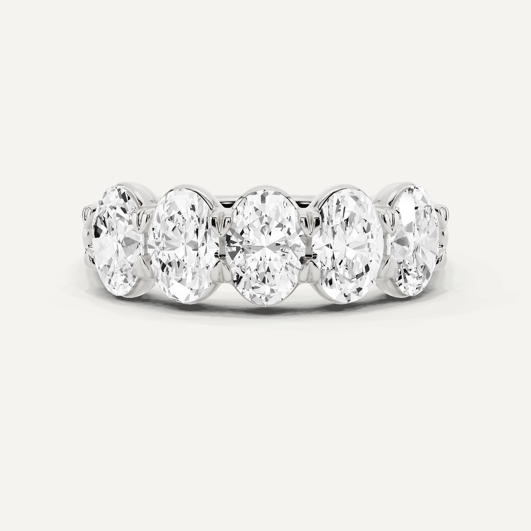 Celebrate love with our Oval Diamond Five Stone Anniversary Band. This budget-friendly band features five sparkling oval diamonds, symbolizing your journey together without the high price tag.