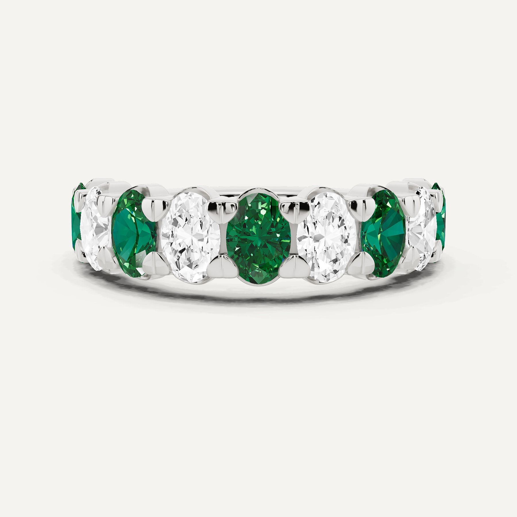 2 ctw Oval Diamond & Oval Created Emerald Alternating Nine Stone Wedding Band