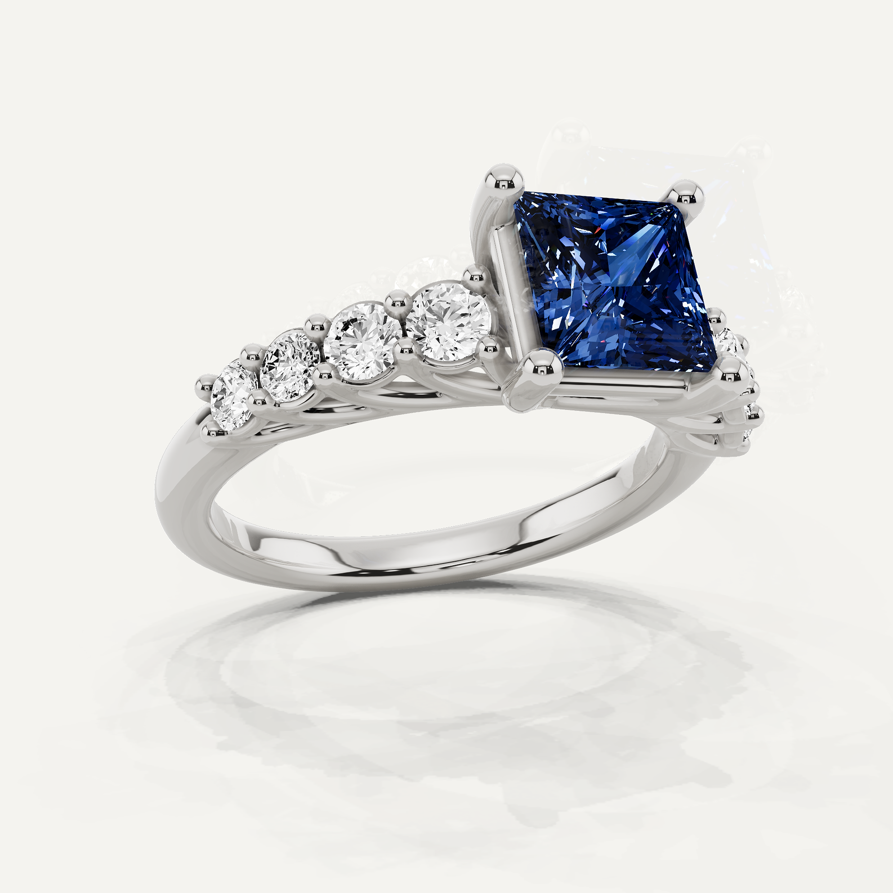 2 ctw Princess Created Sapphire Graduating Side Stone Engagement Ring