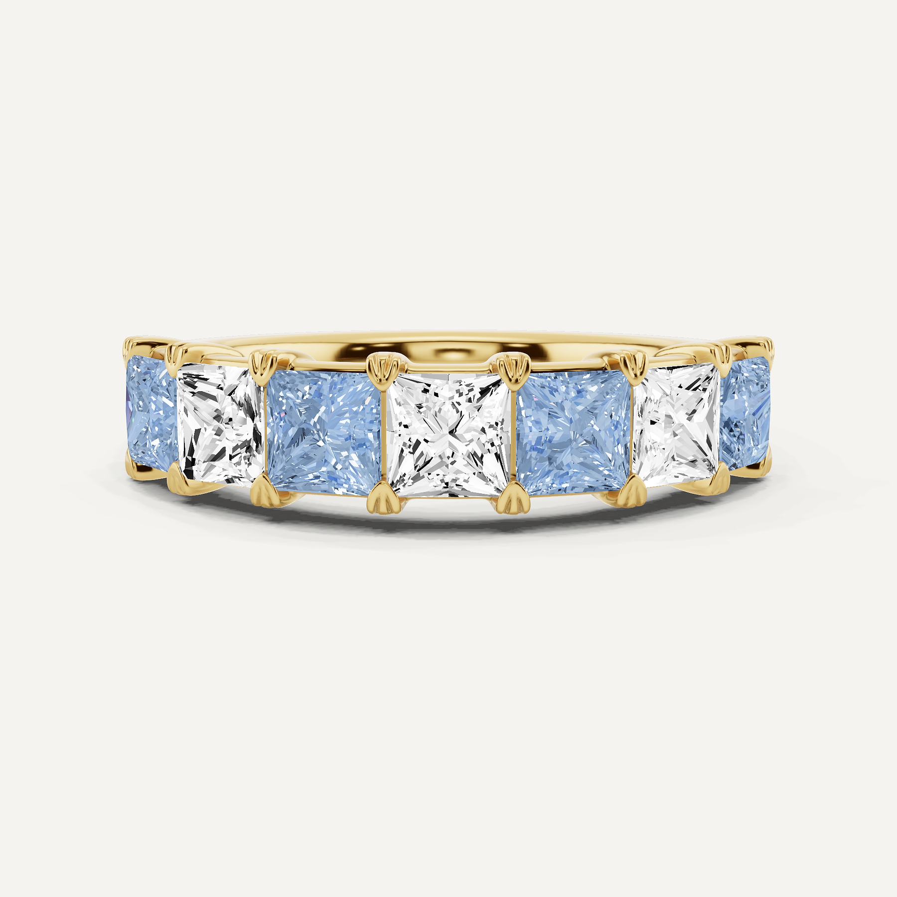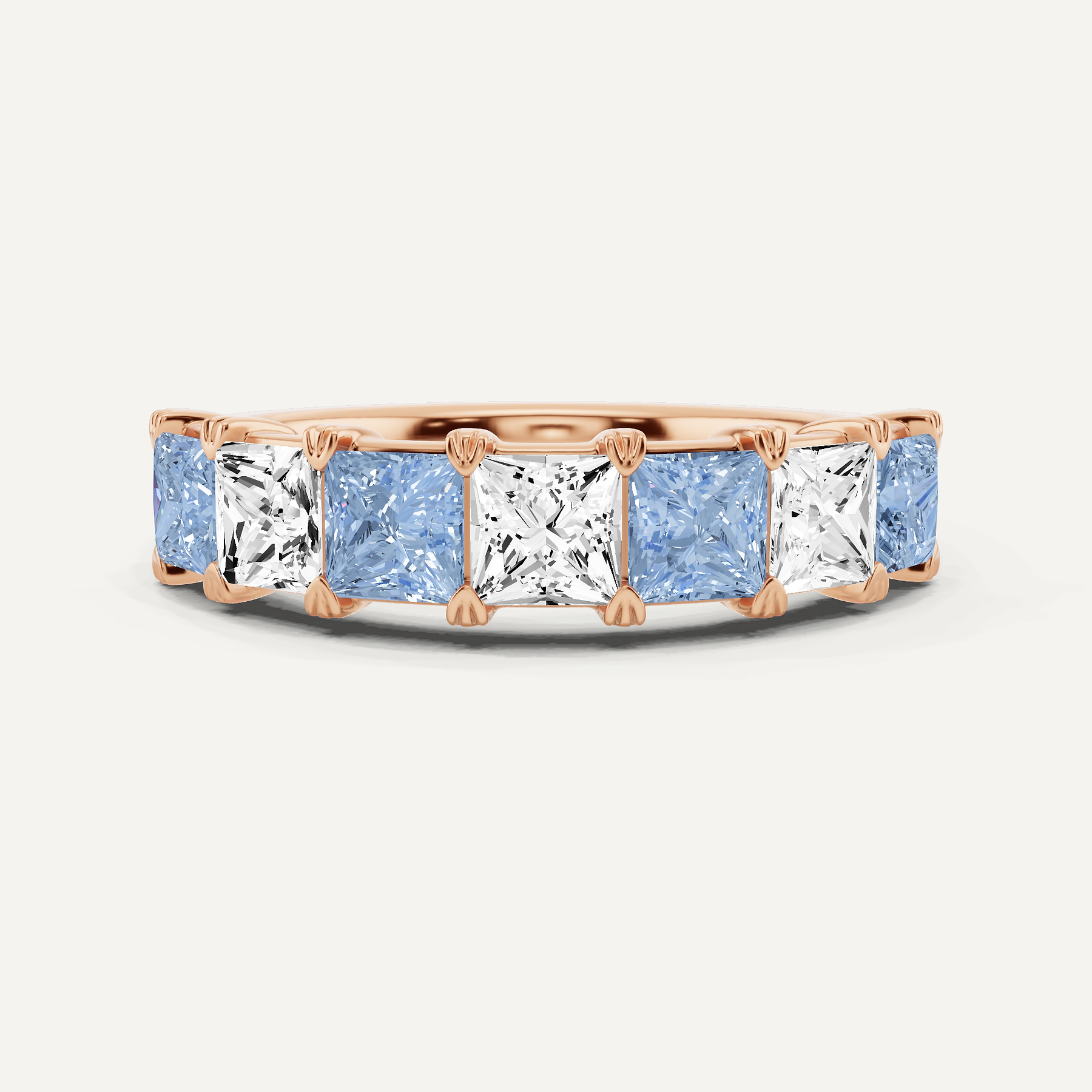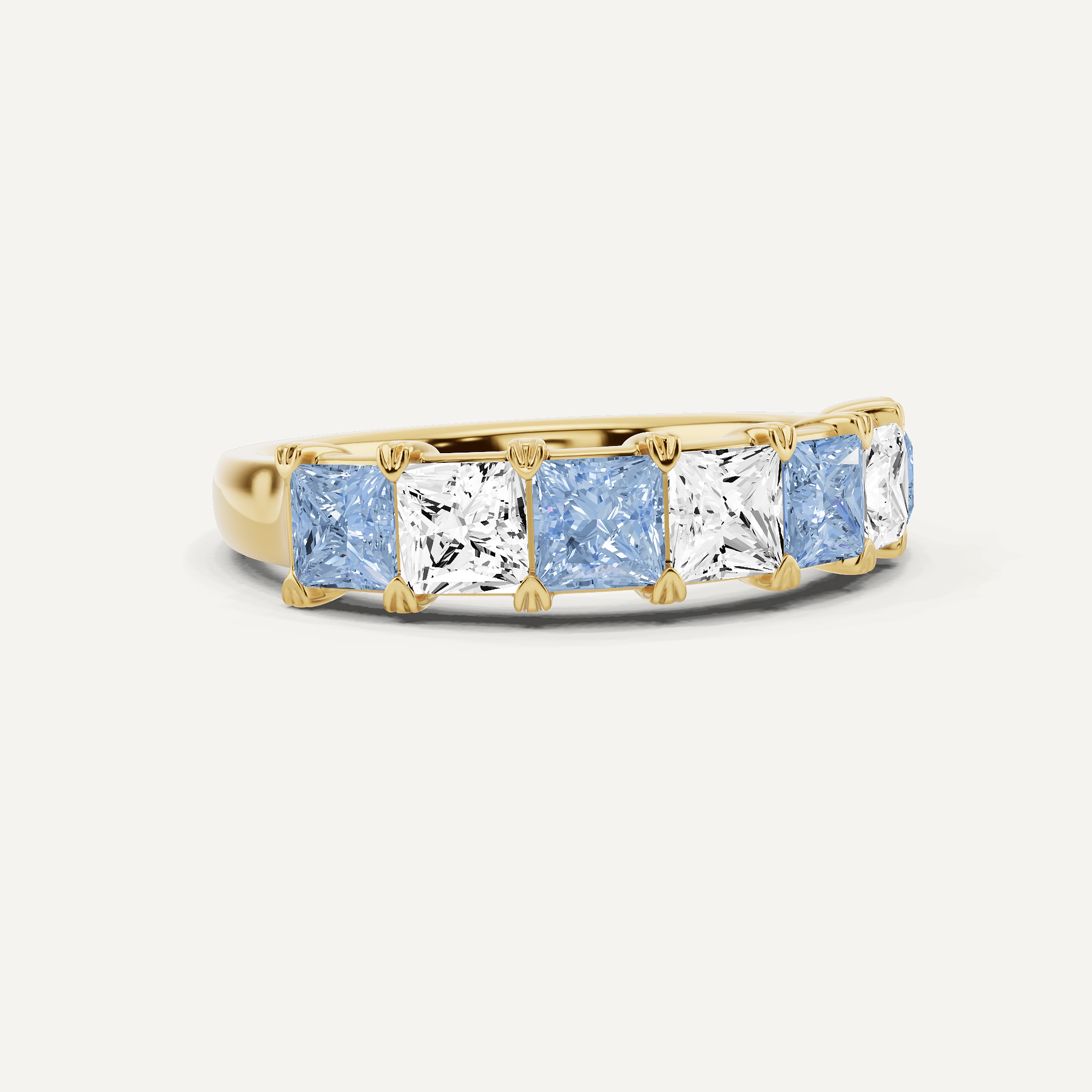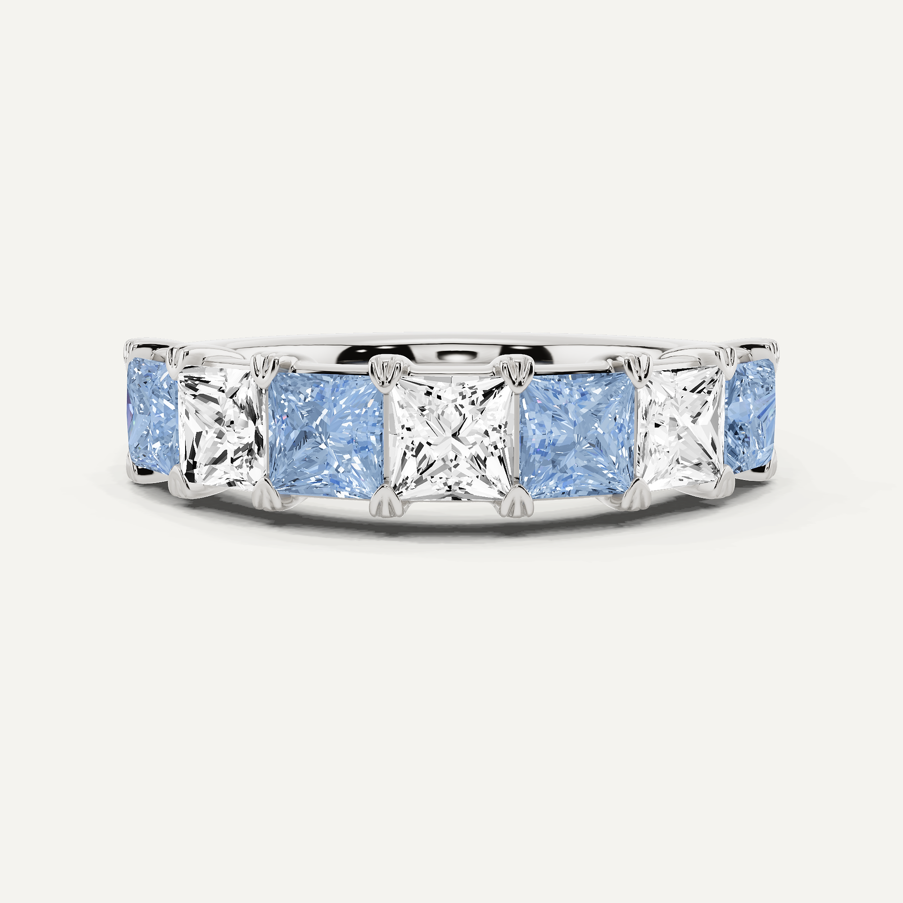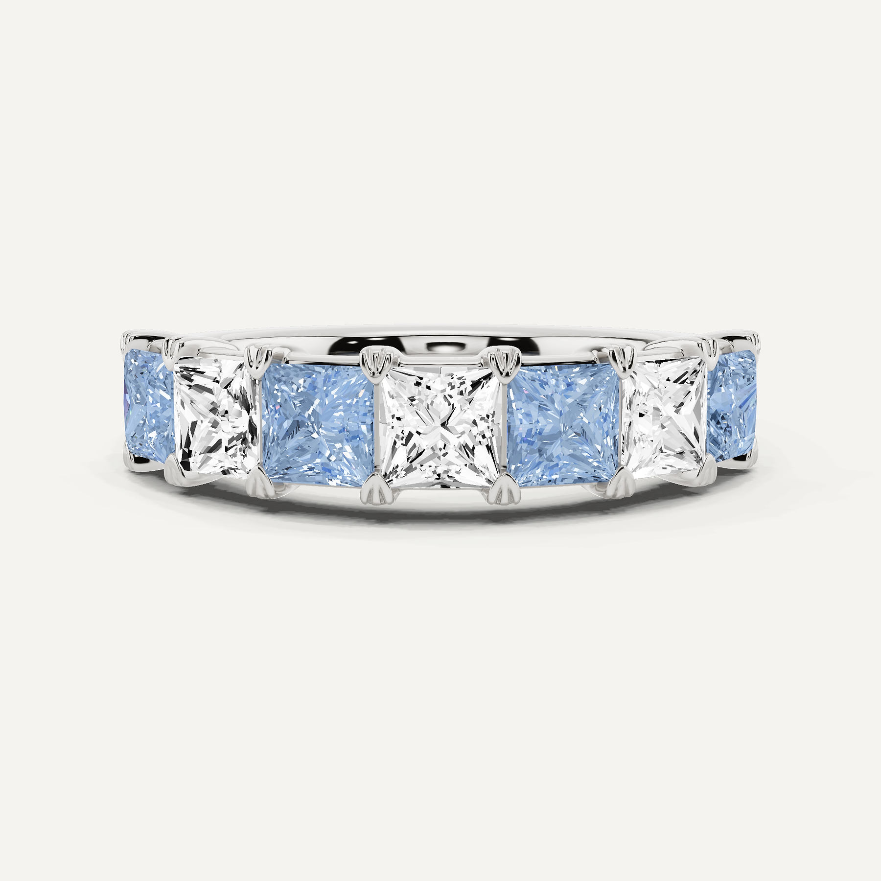 2 ctw Princess Diamond & Princess Created Aquamarine Alternating Seven Stone Anniversary Band