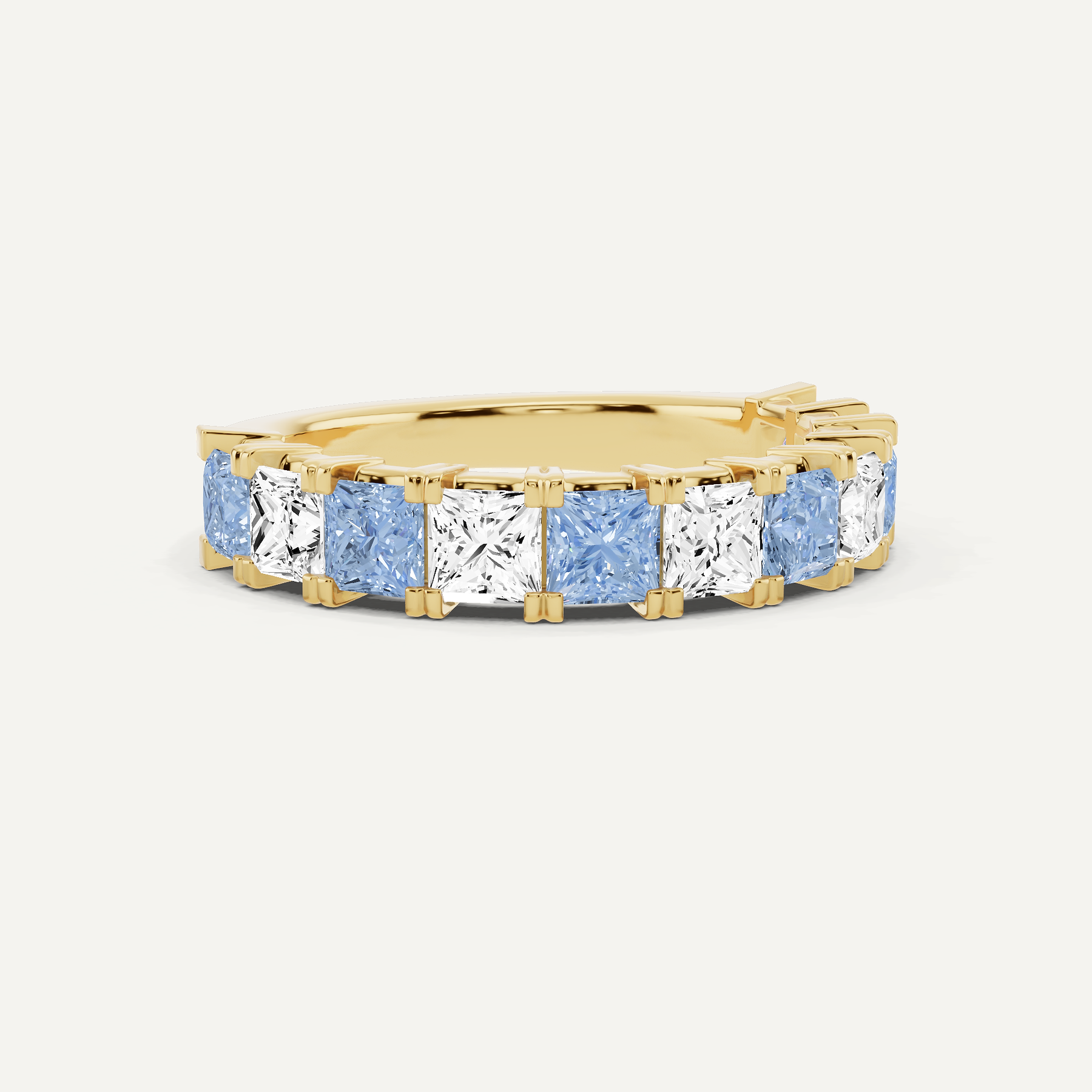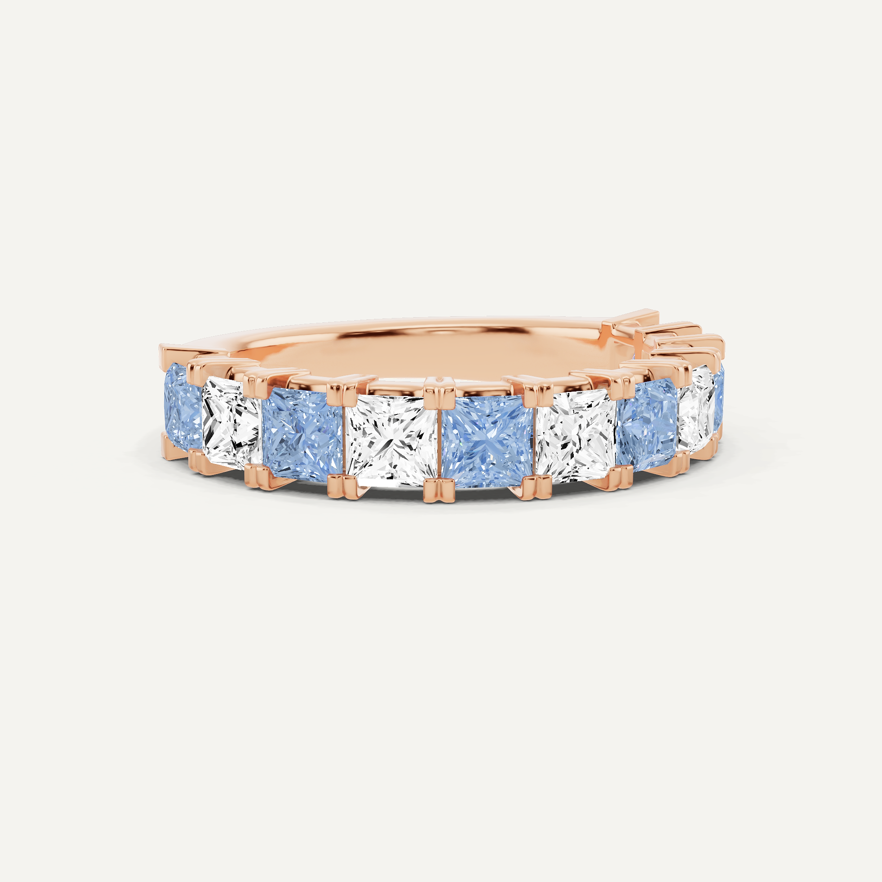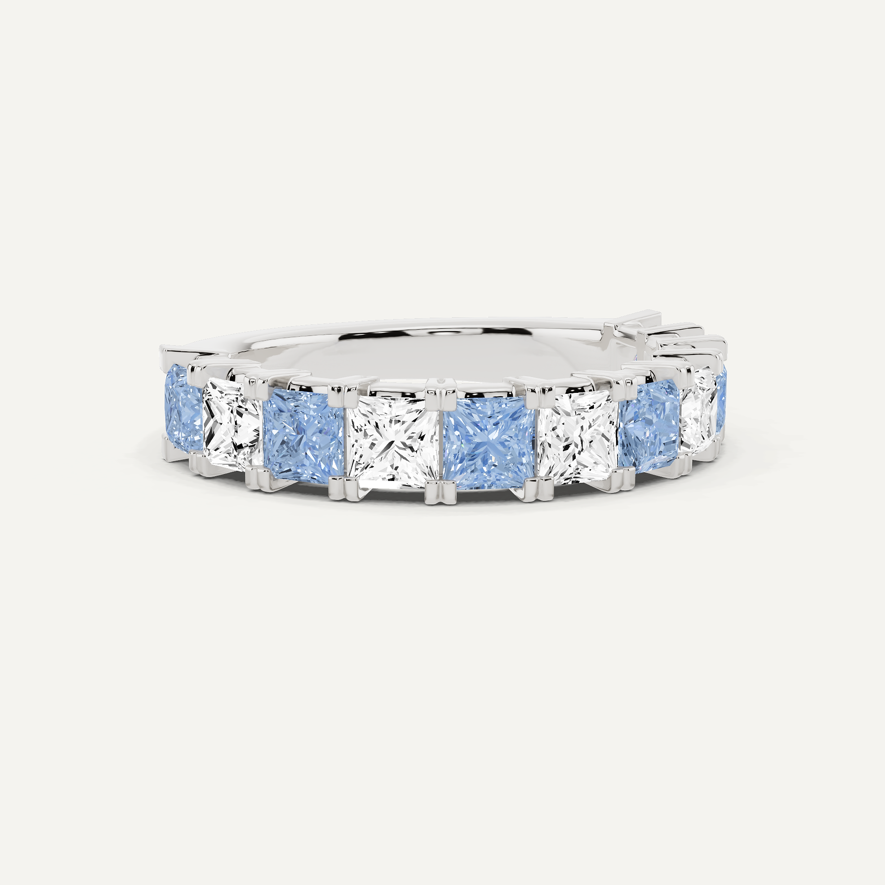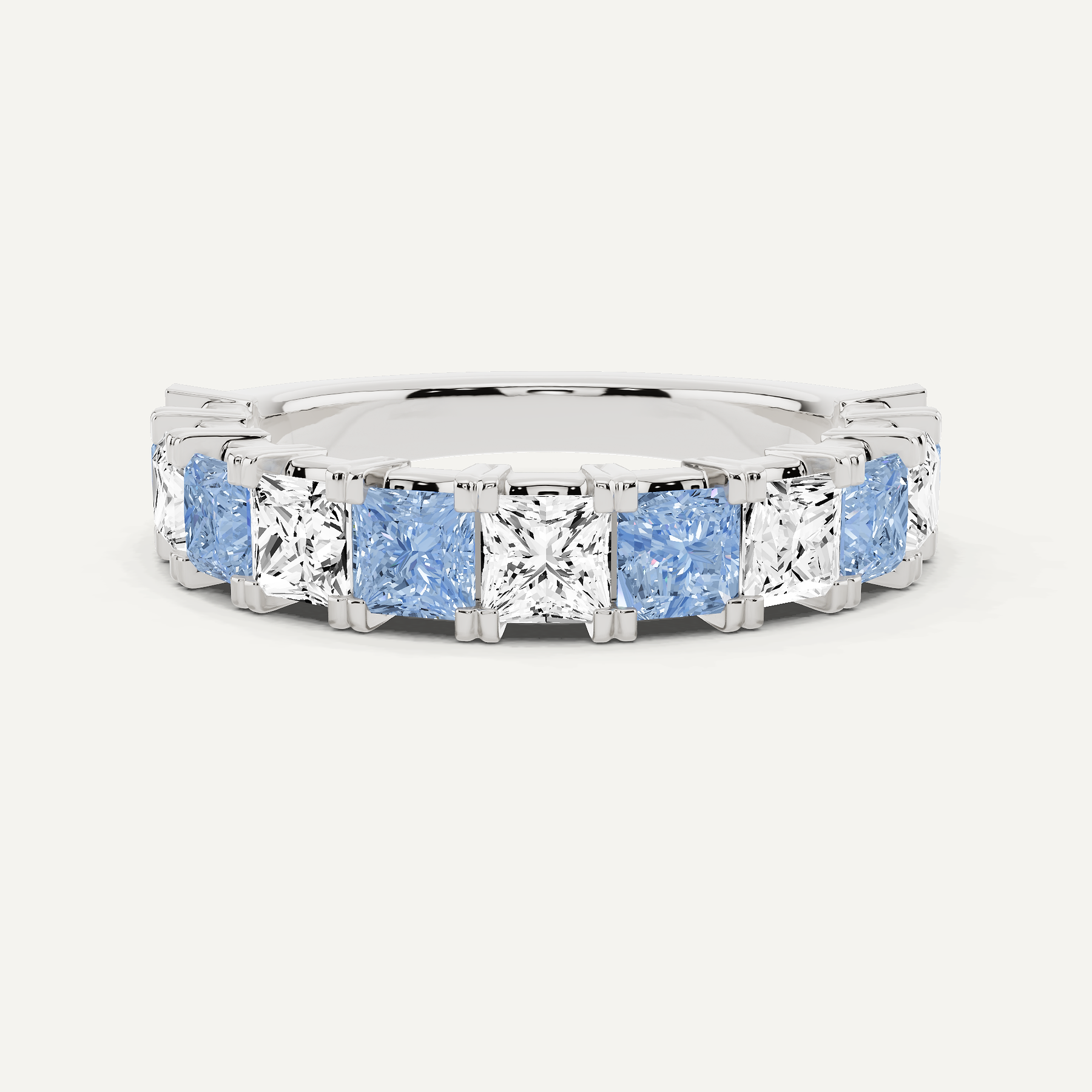 2 ctw Princess Diamond & Princess Created Aquamarine Eleven Stone Anniversary Band