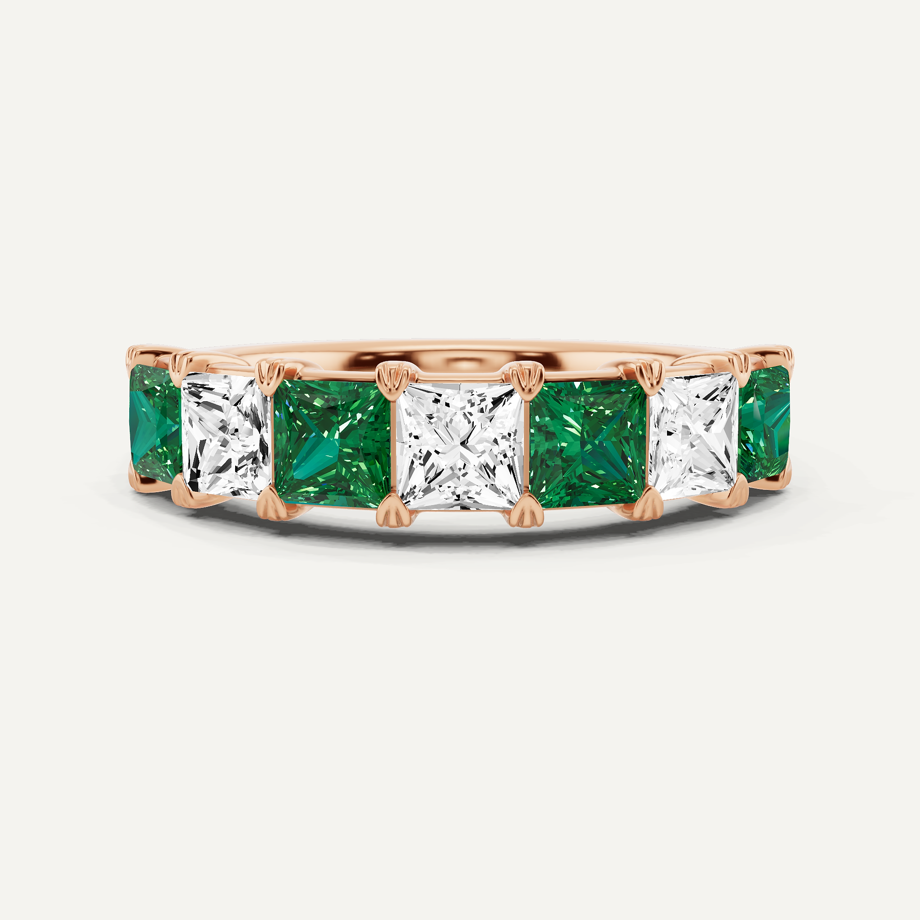 2 ctw Princess Diamond & Princess Created Emerald Alternating Seven Stone Anniversary Band