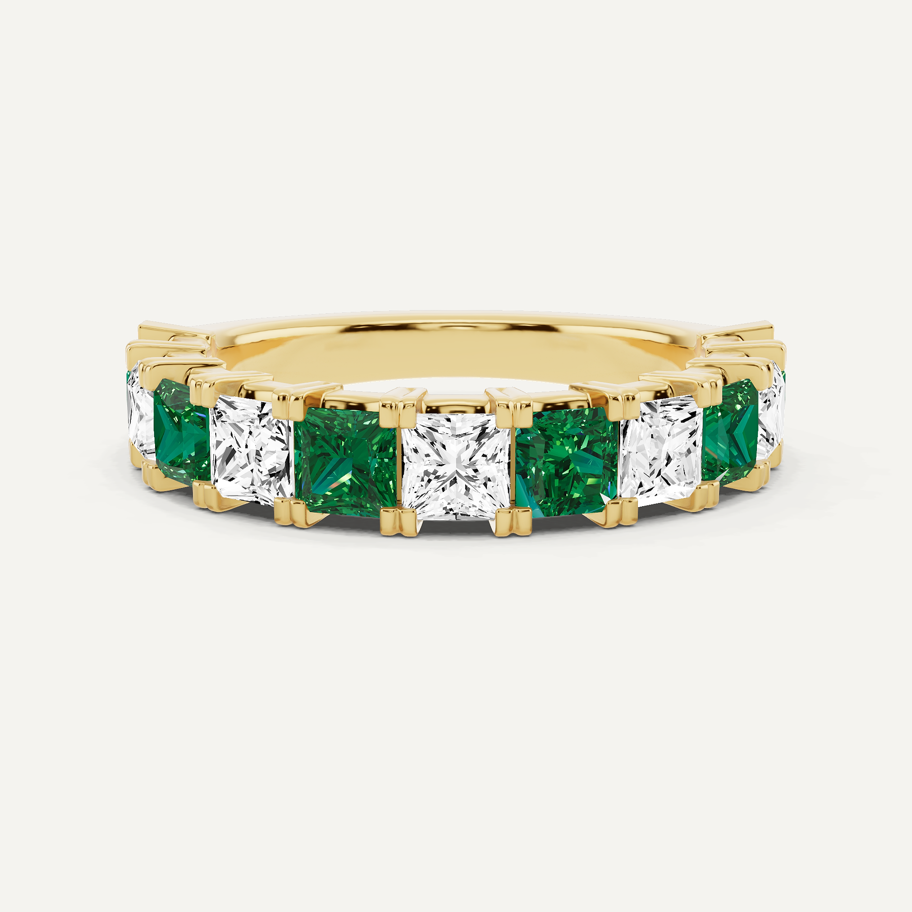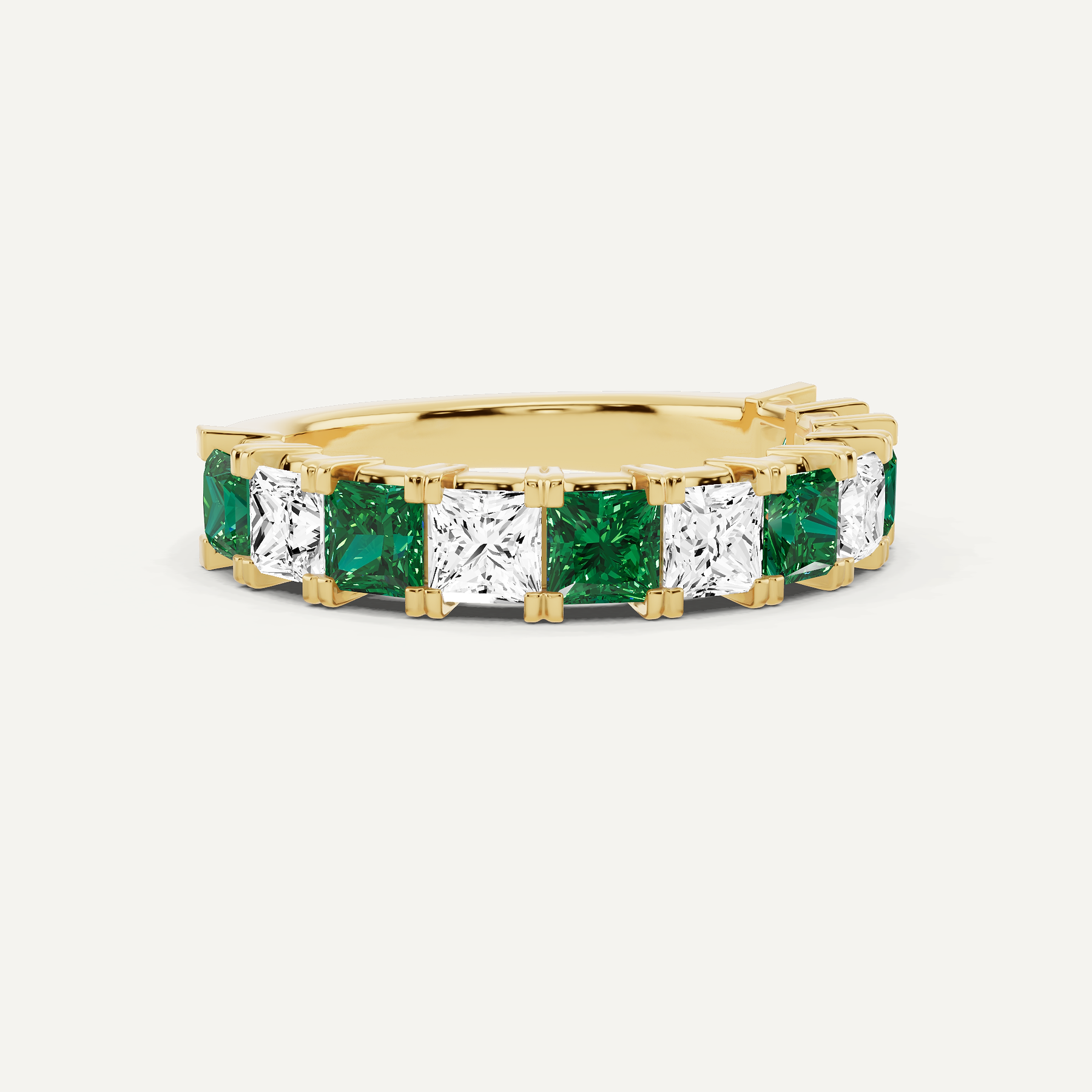 2 ctw Princess Diamond & Princess Created Emerald Eleven Stone Anniversary Band