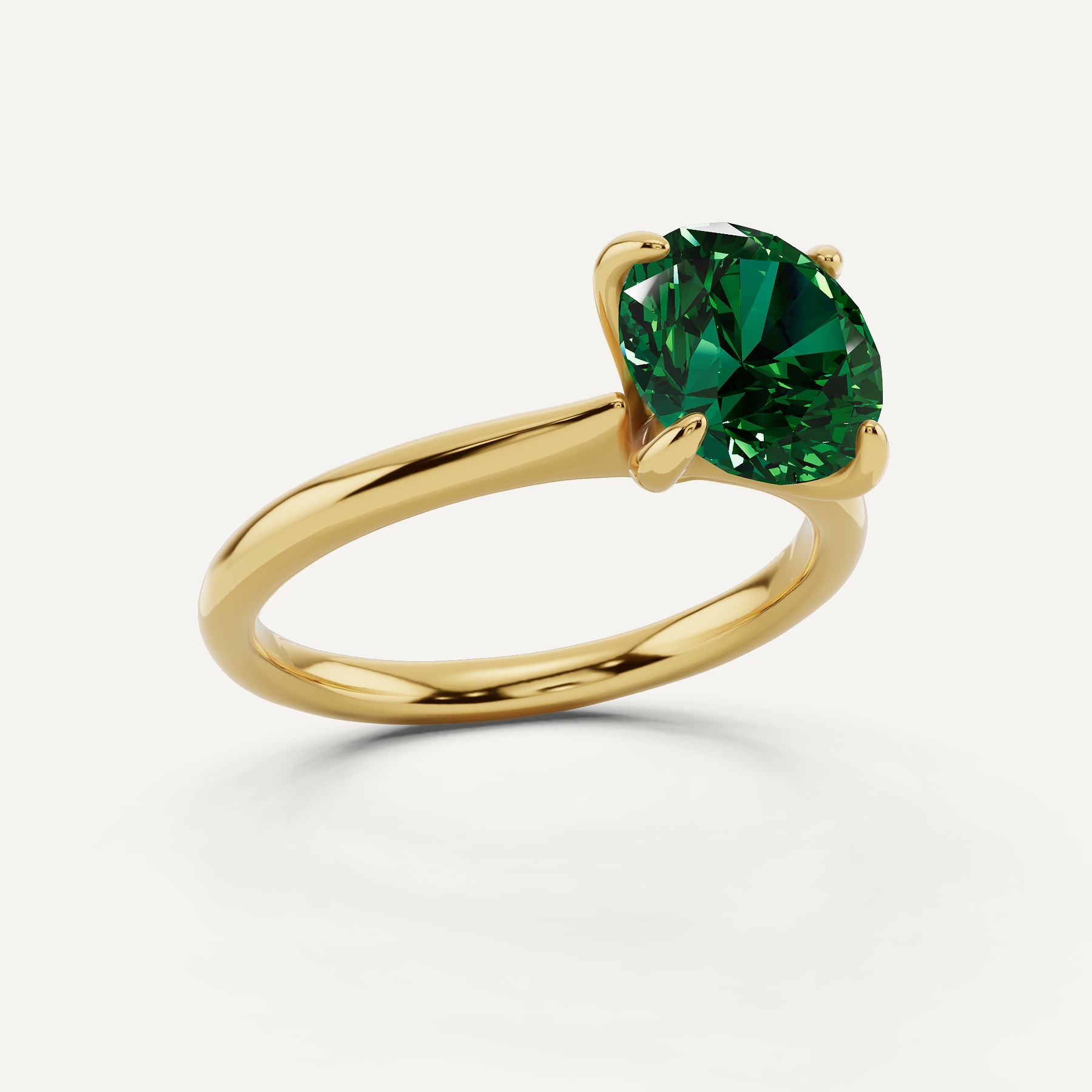 2 ctw Round Created Emerald Petite Solitaire Engagement Ring