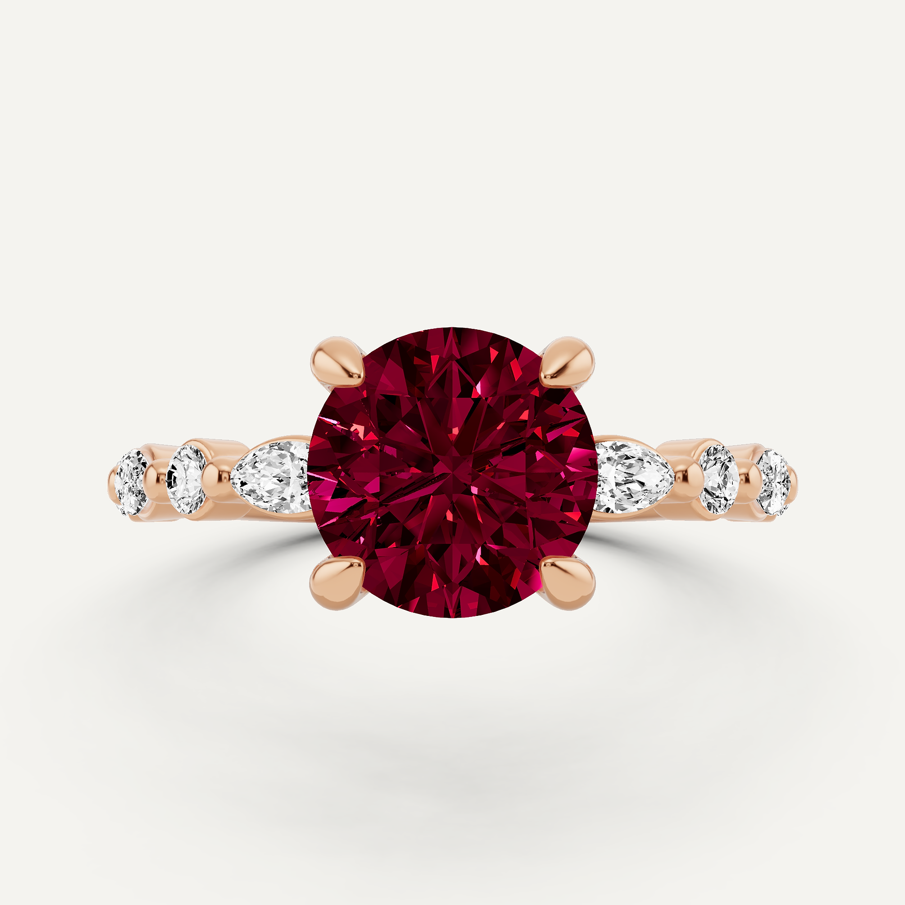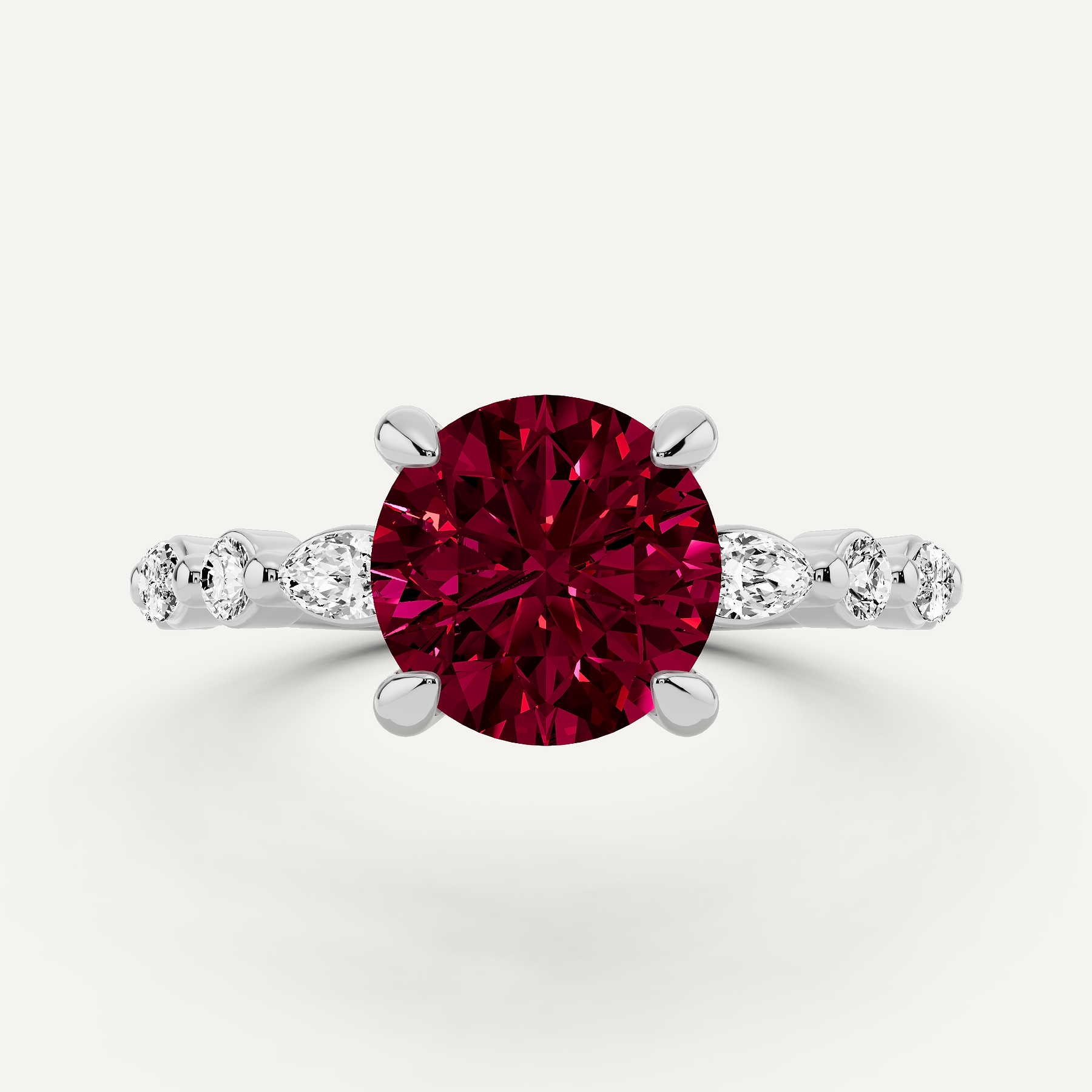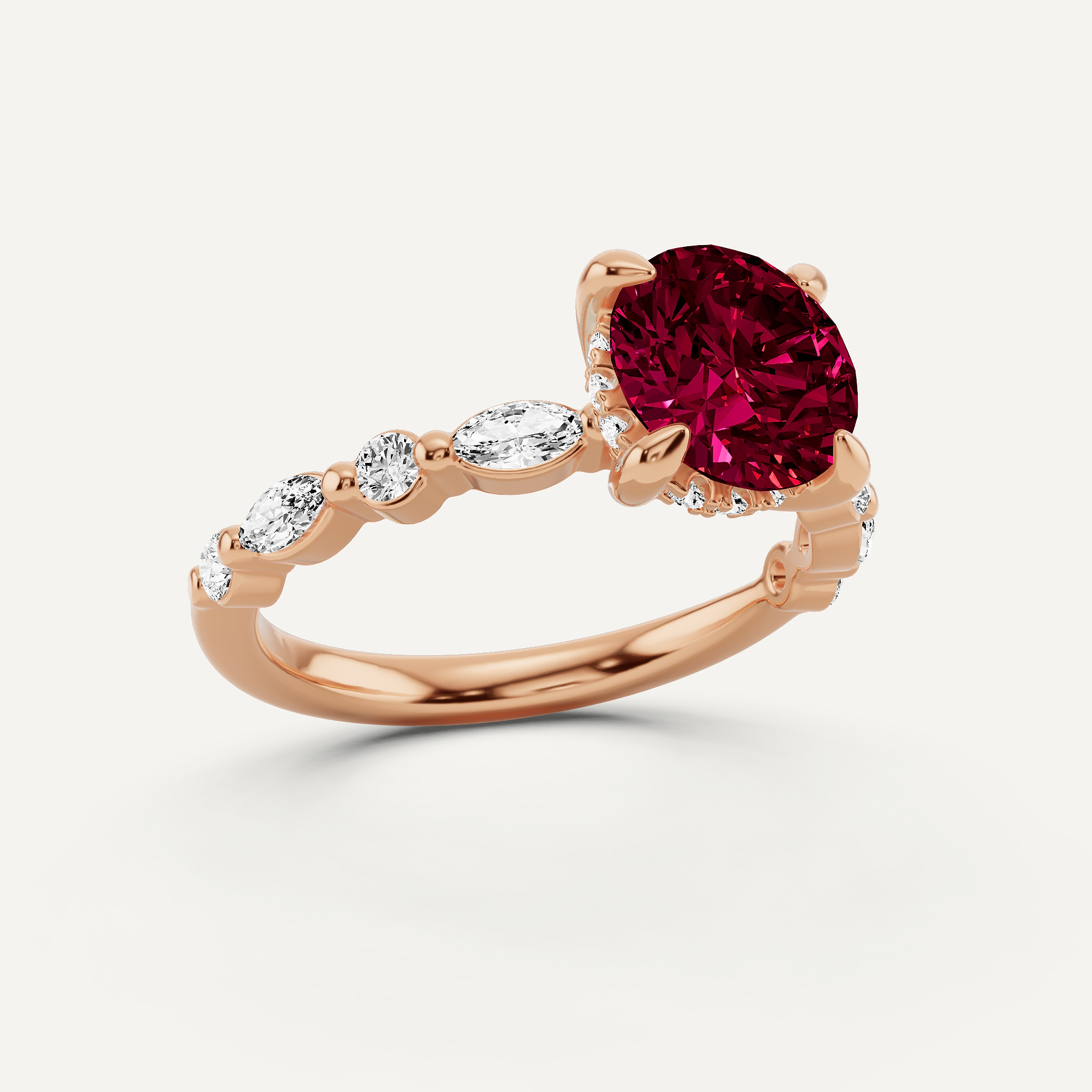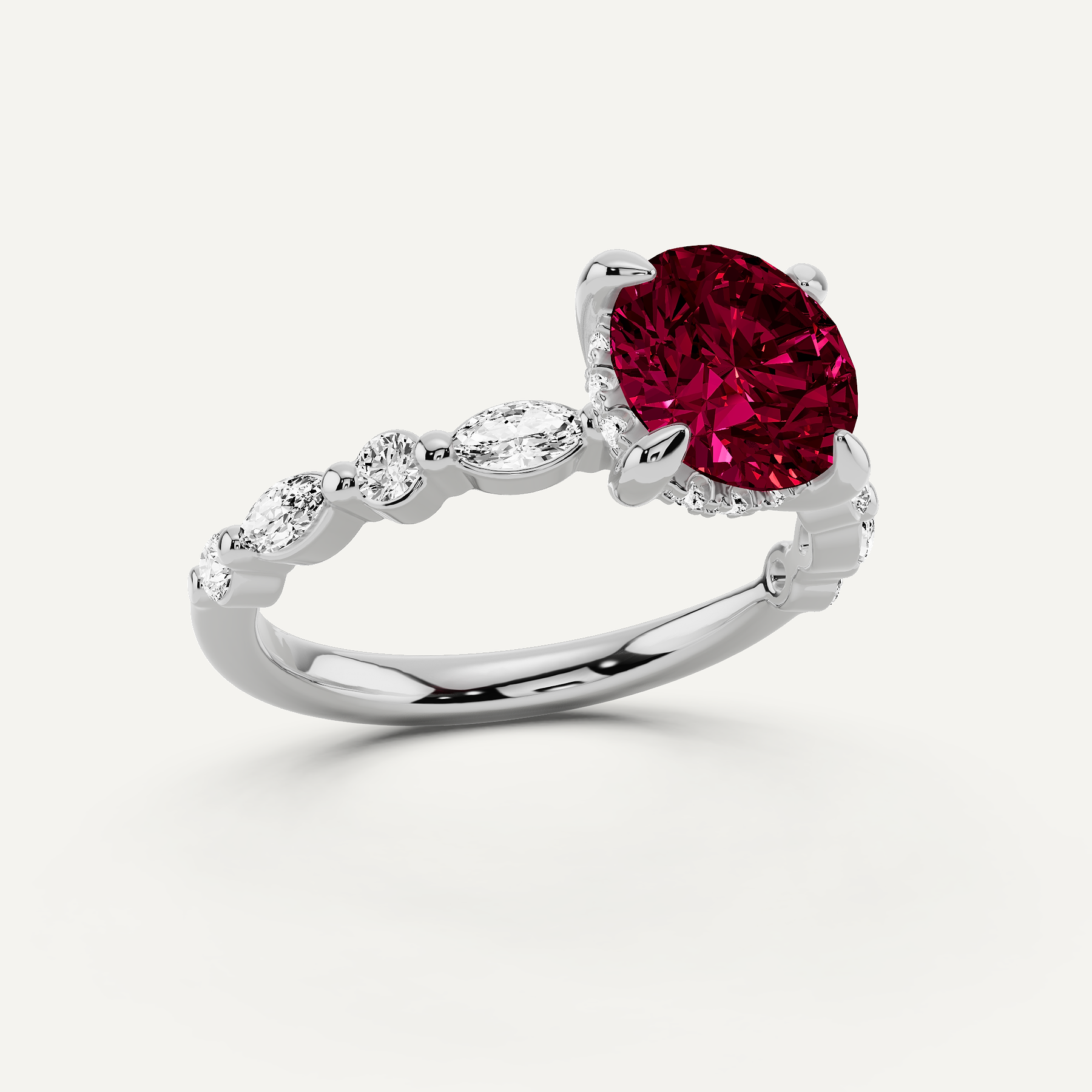 2 ctw Round Created Ruby Hidden Halo Engagement Ring with Floating SIde Stones