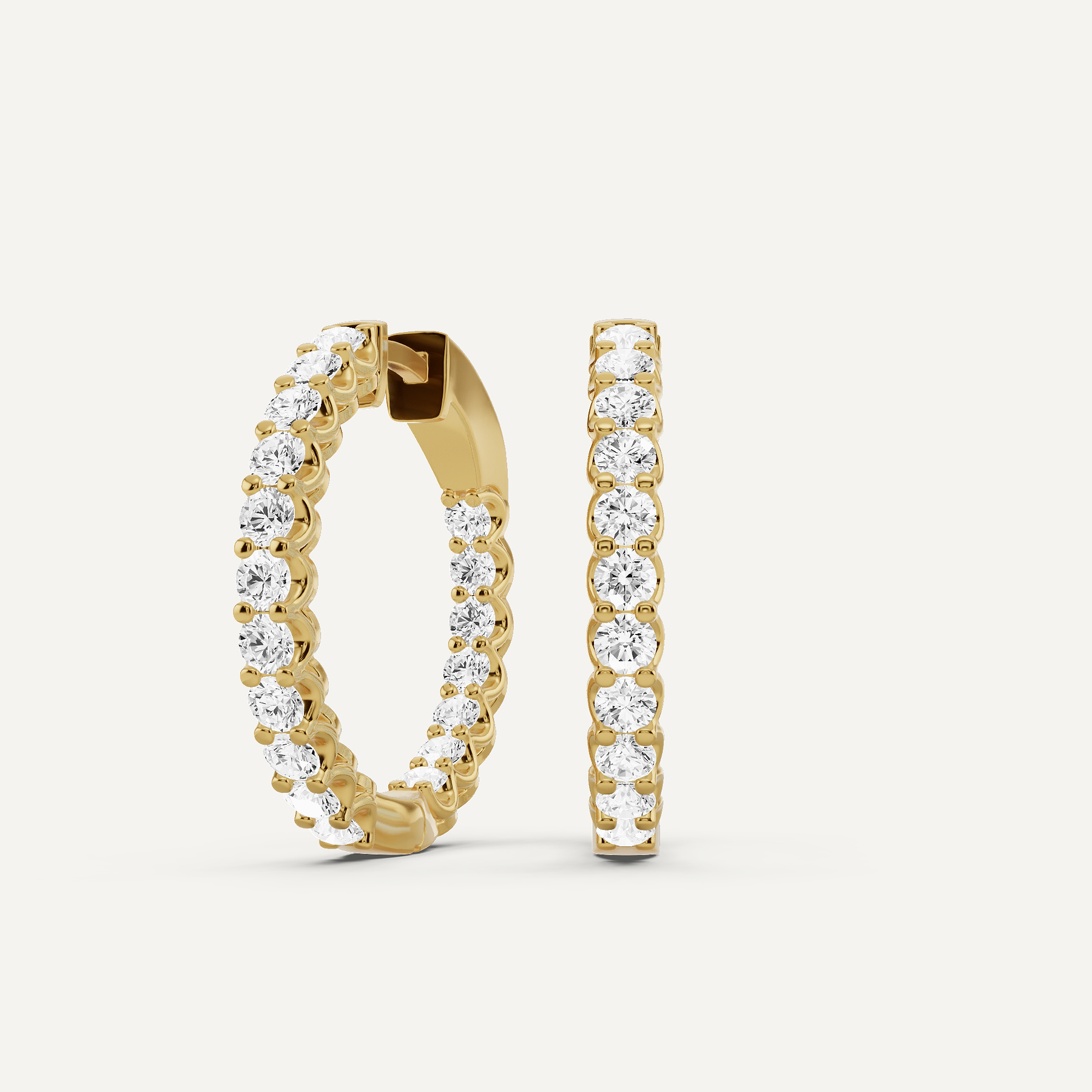 Shine from every angle with our Round Diamond Inside Out Hoop Earrings. These budget-friendly hoops feature diamonds set inside and out, ensuring you sparkle and dazzle with every movement.
