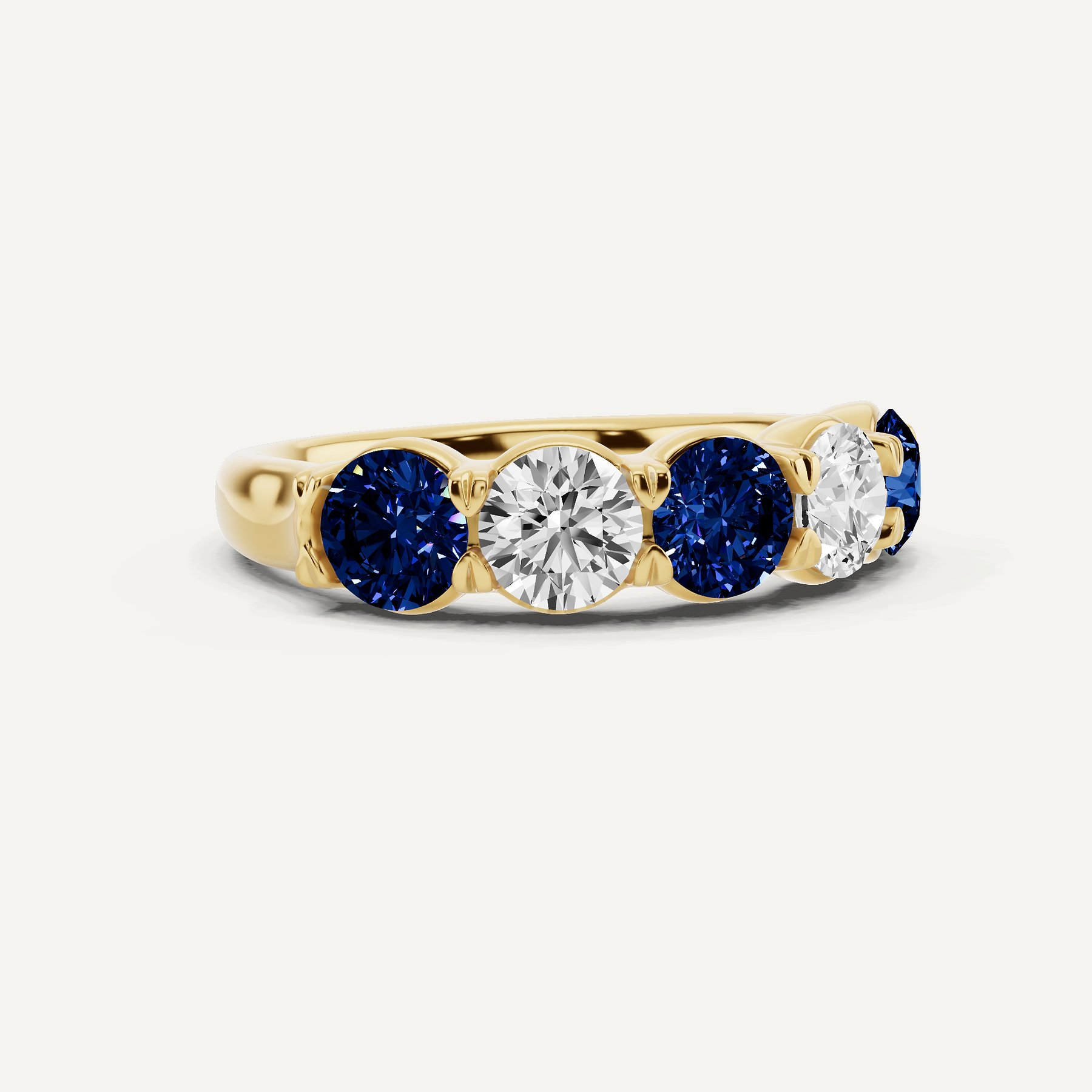 2 ctw Round Diamond & Round Created Sapphire Alternating Five Stone Anniversary Band