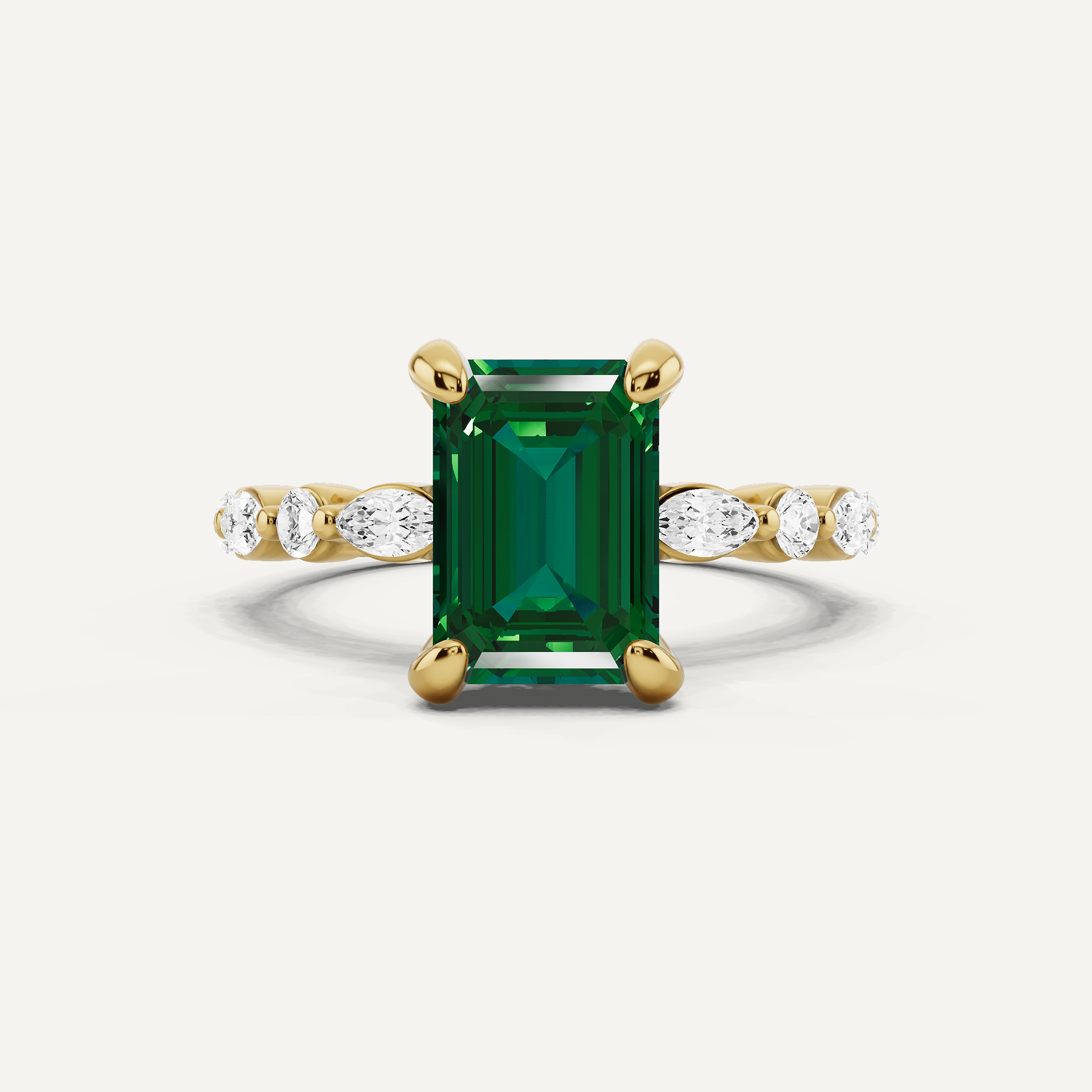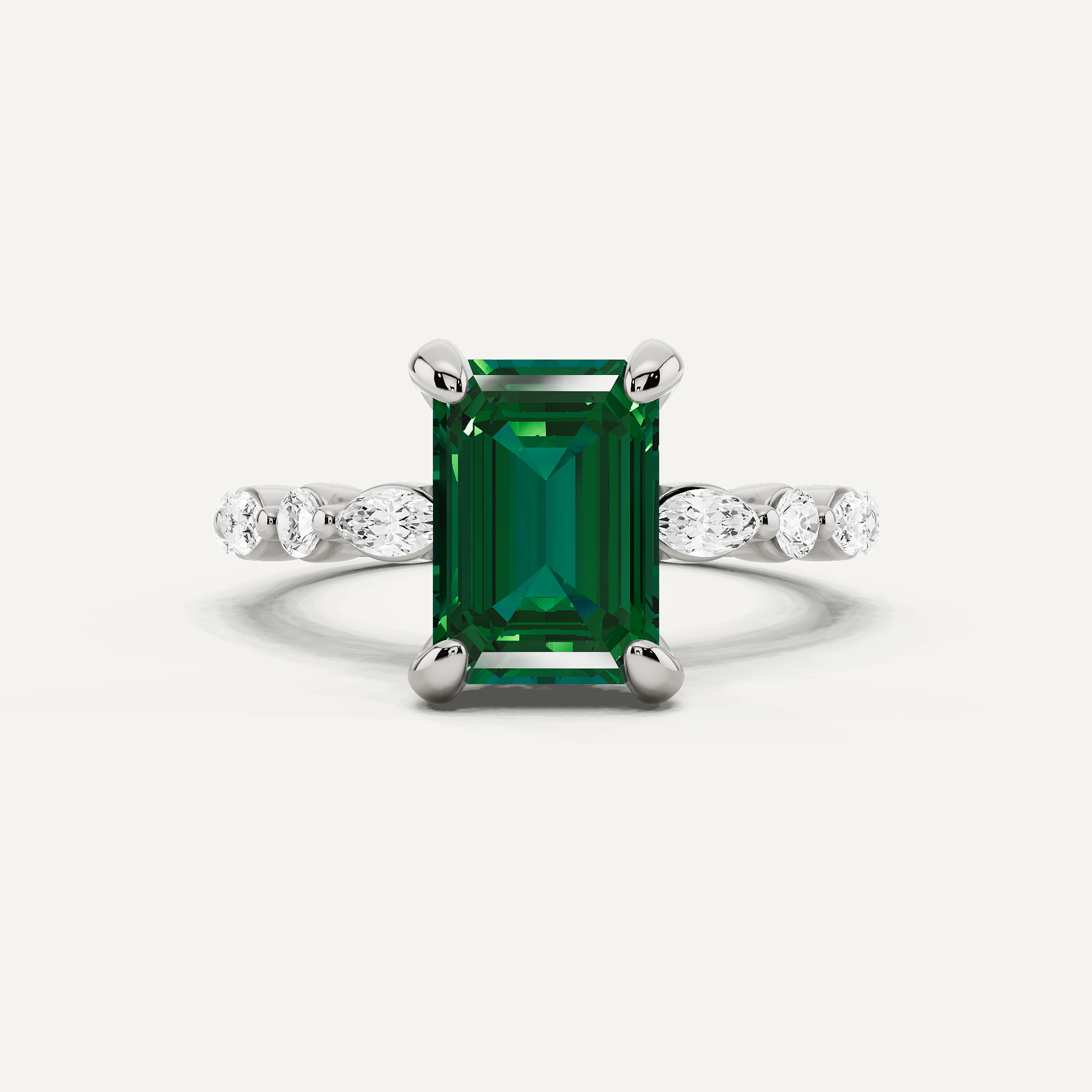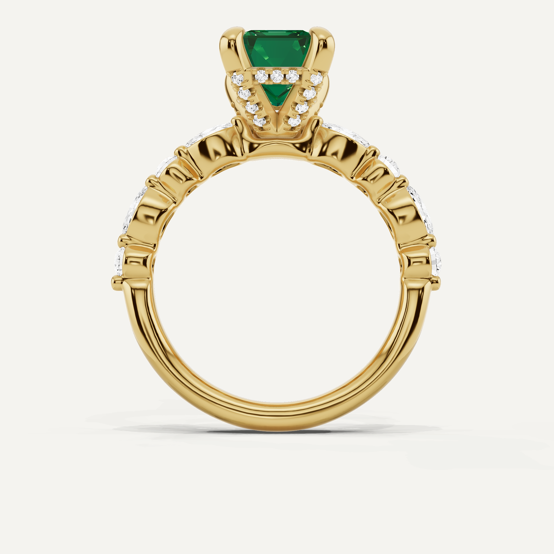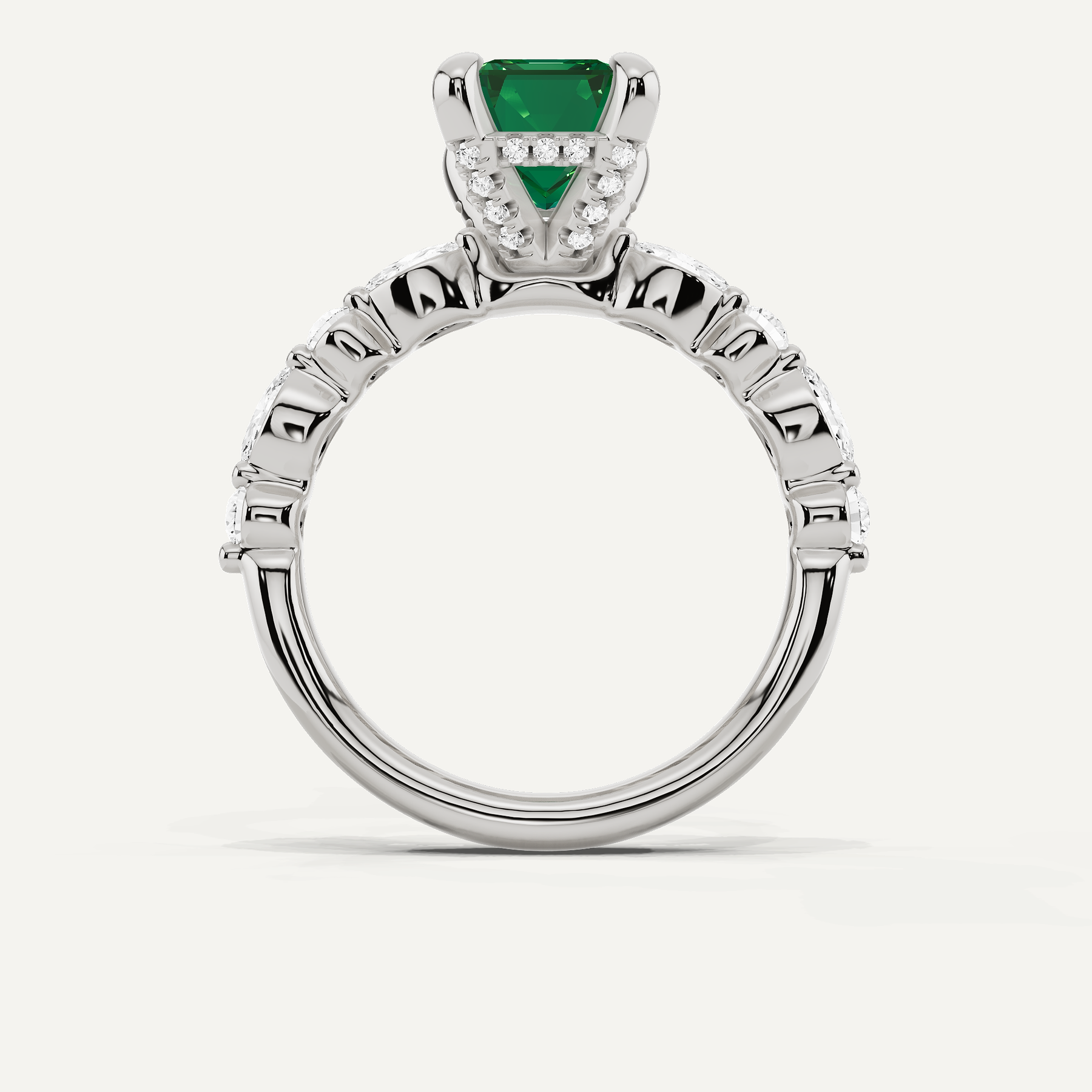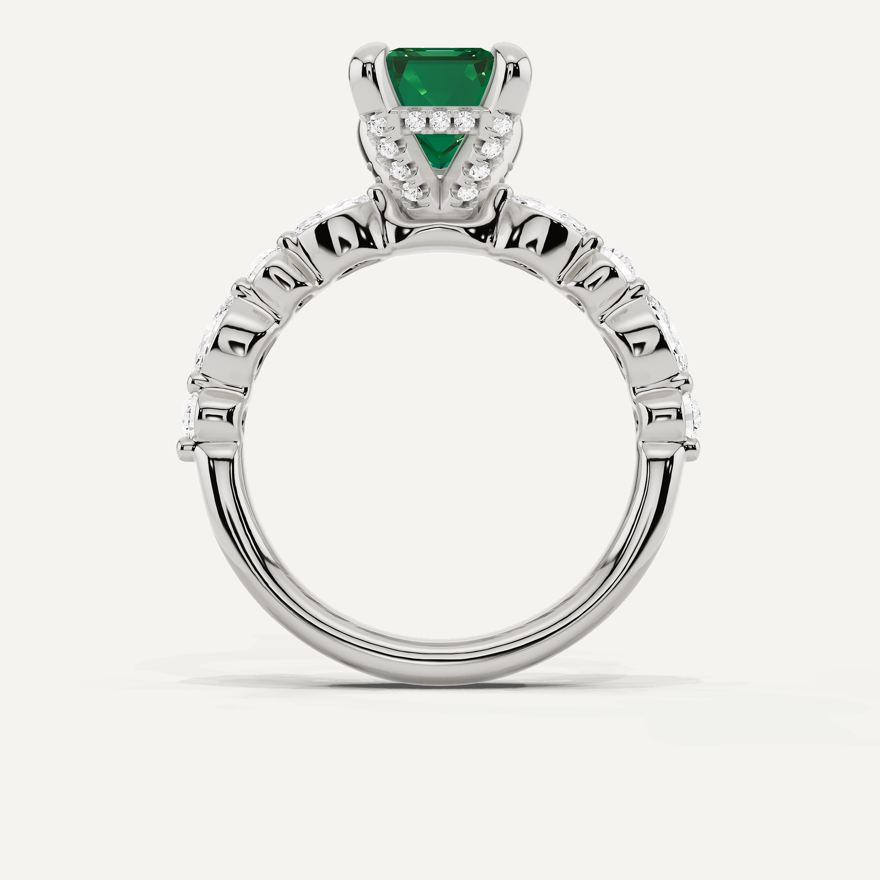 3 1/2 ctw Emerald Created Emerald Hidden Halo Accent Engagement Ring