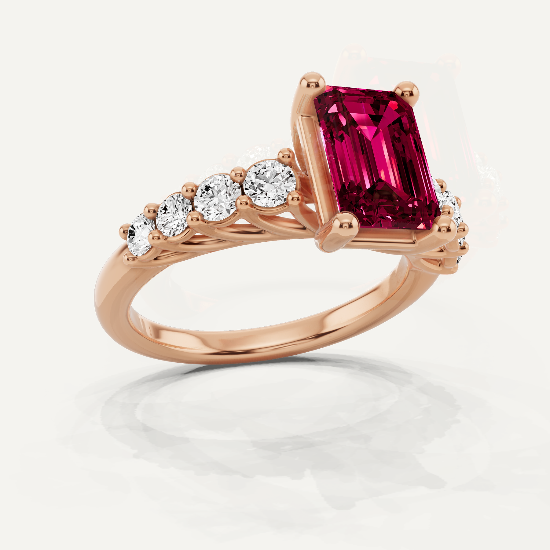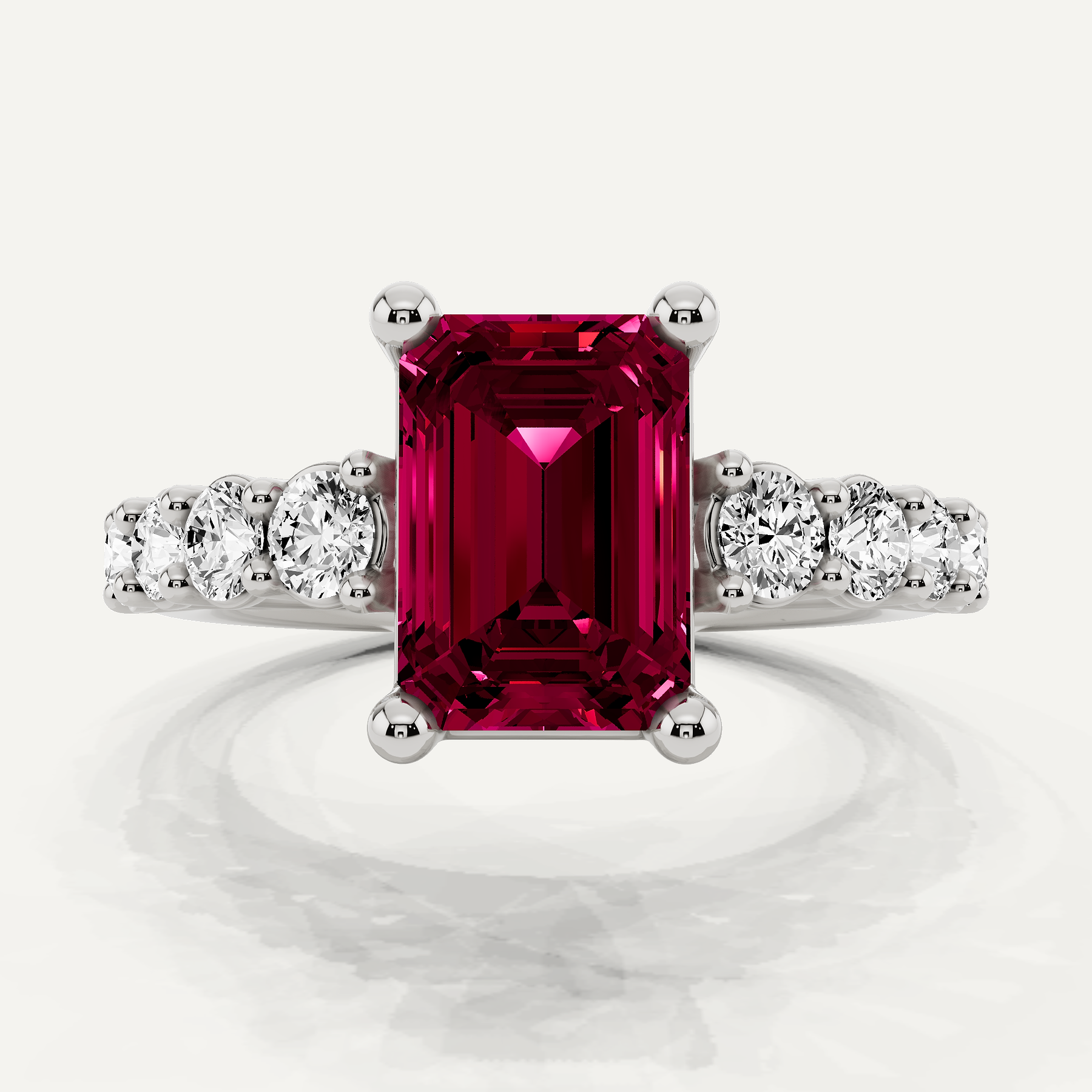 3 1/2 ctw Emerald Created Ruby Graduating Side Stone Engagement Ring