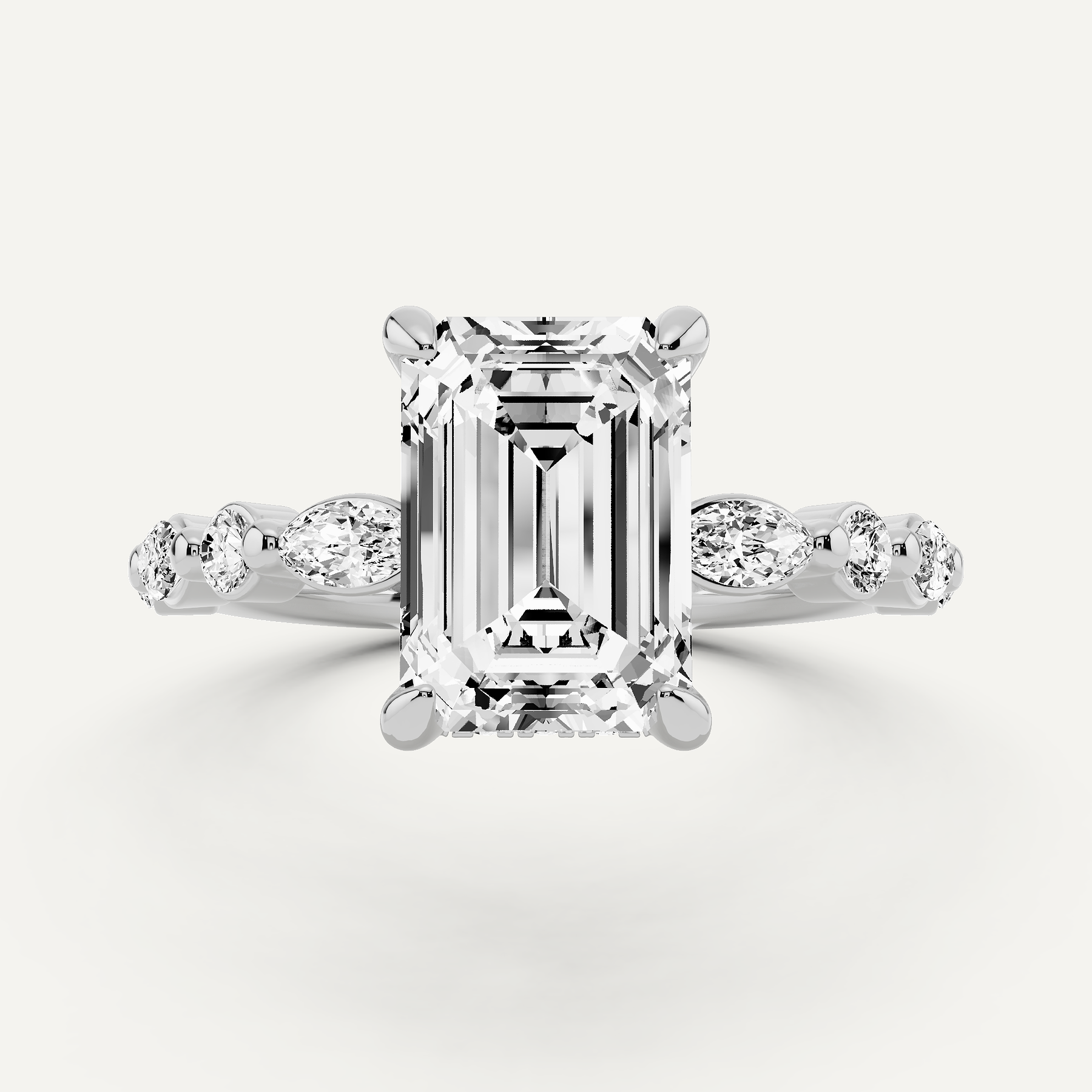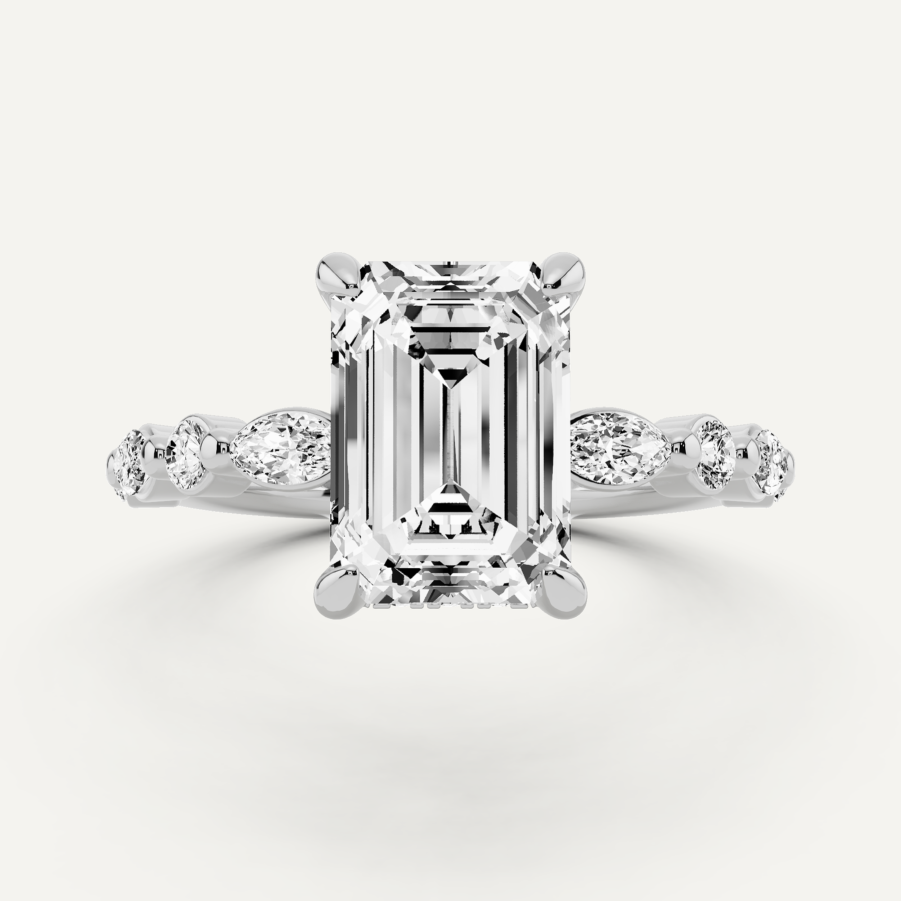 3 1/2 ctw Emerald Diamond Hidden Halo Engagement Ring with Floating SIde Stones