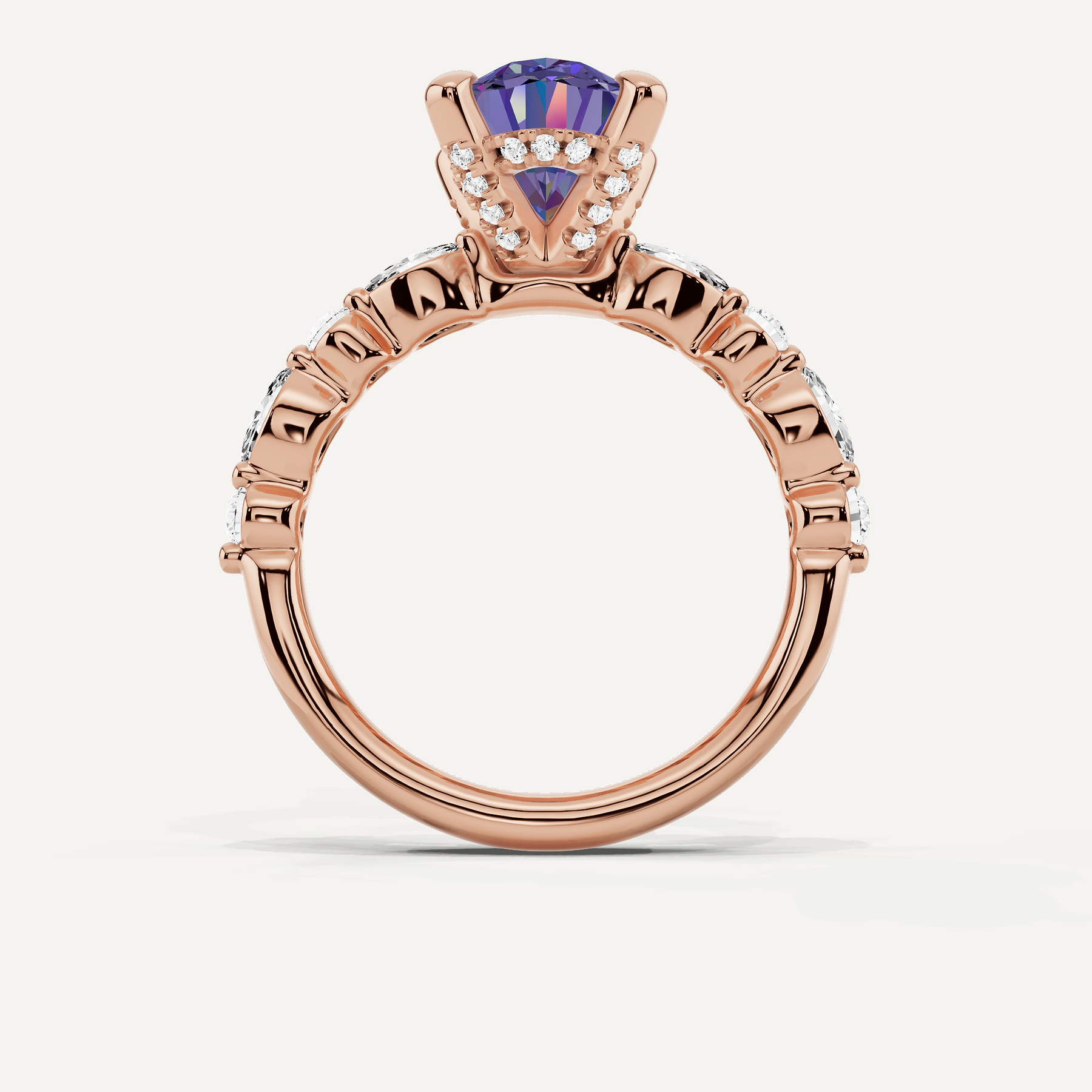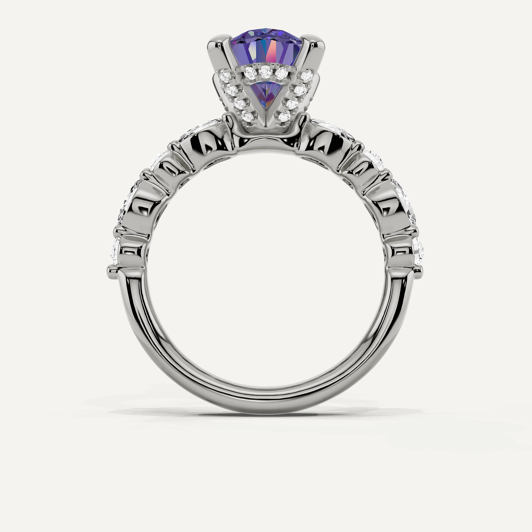 3 1/2 ctw Oval Created Alexandrite Hidden Halo Accent Engagement Ring