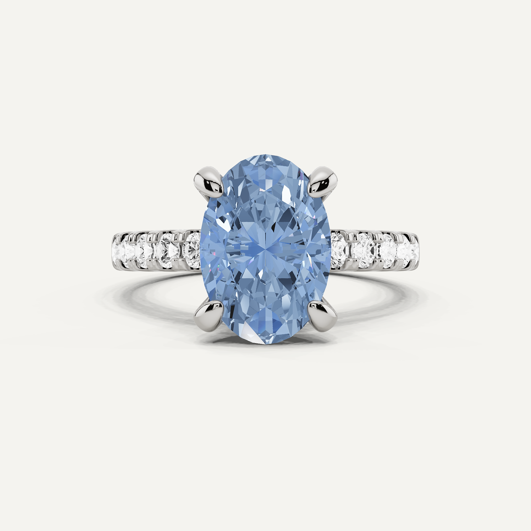 3 1/2 ctw Oval Created Aquamarine Hidden Halo Accent Engagement Ring