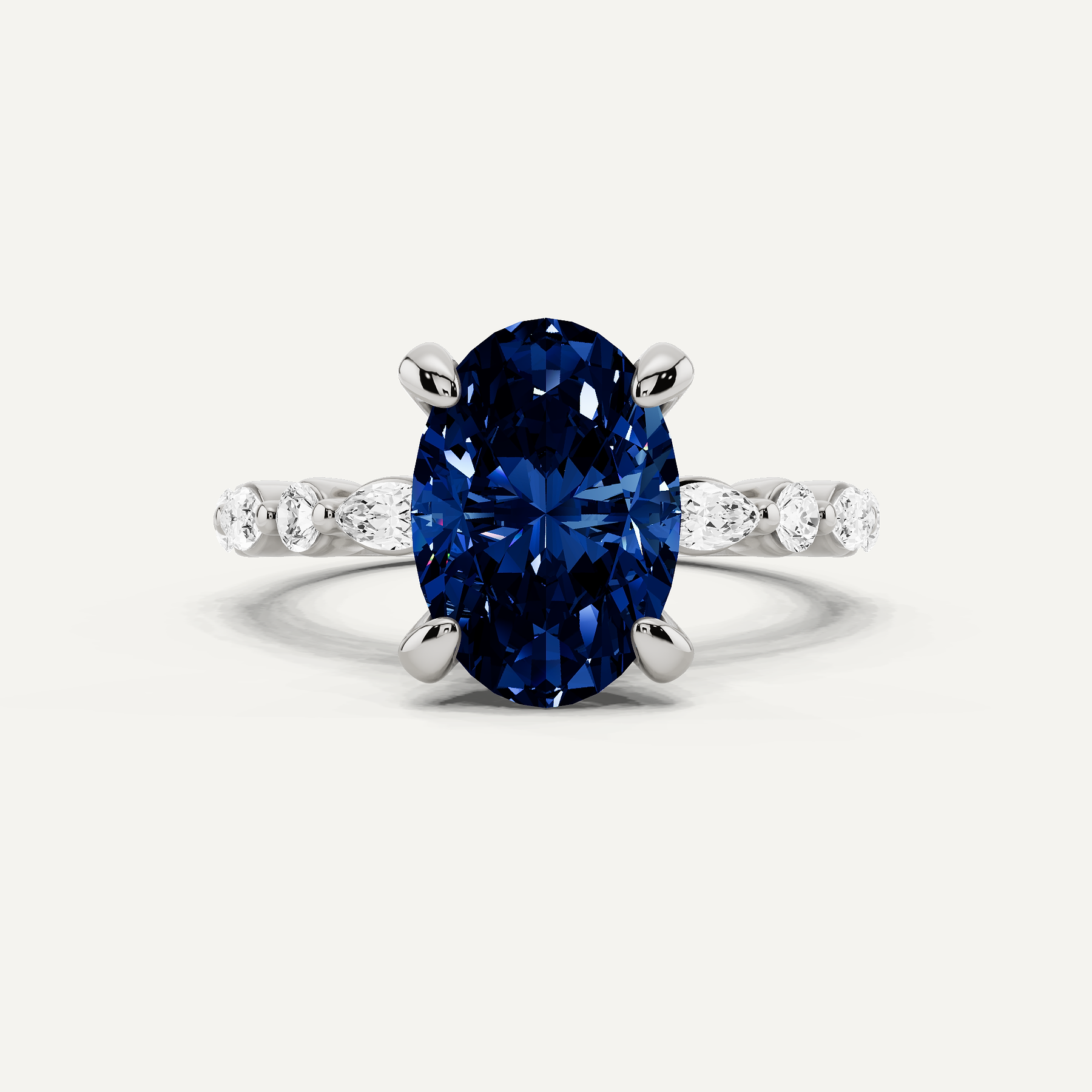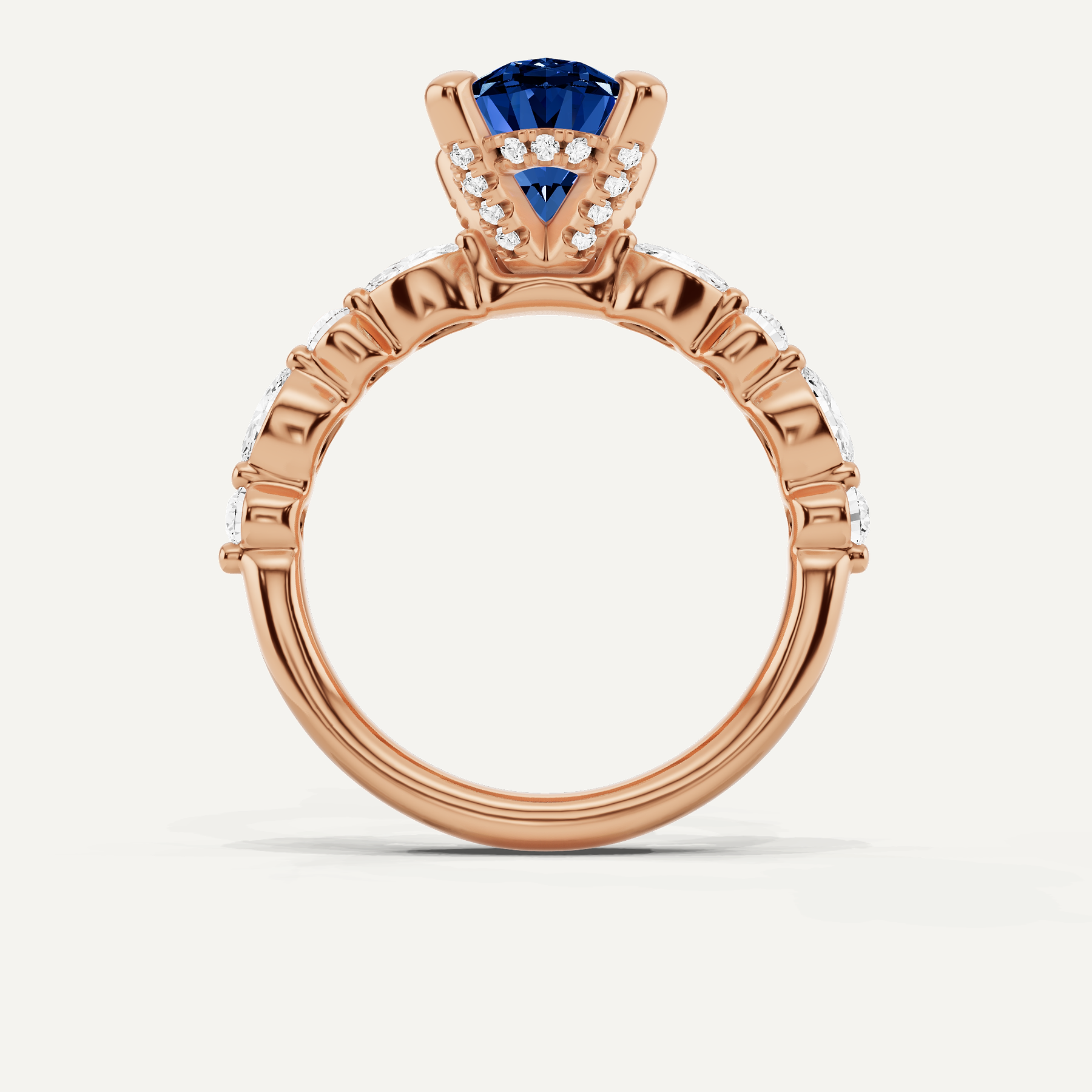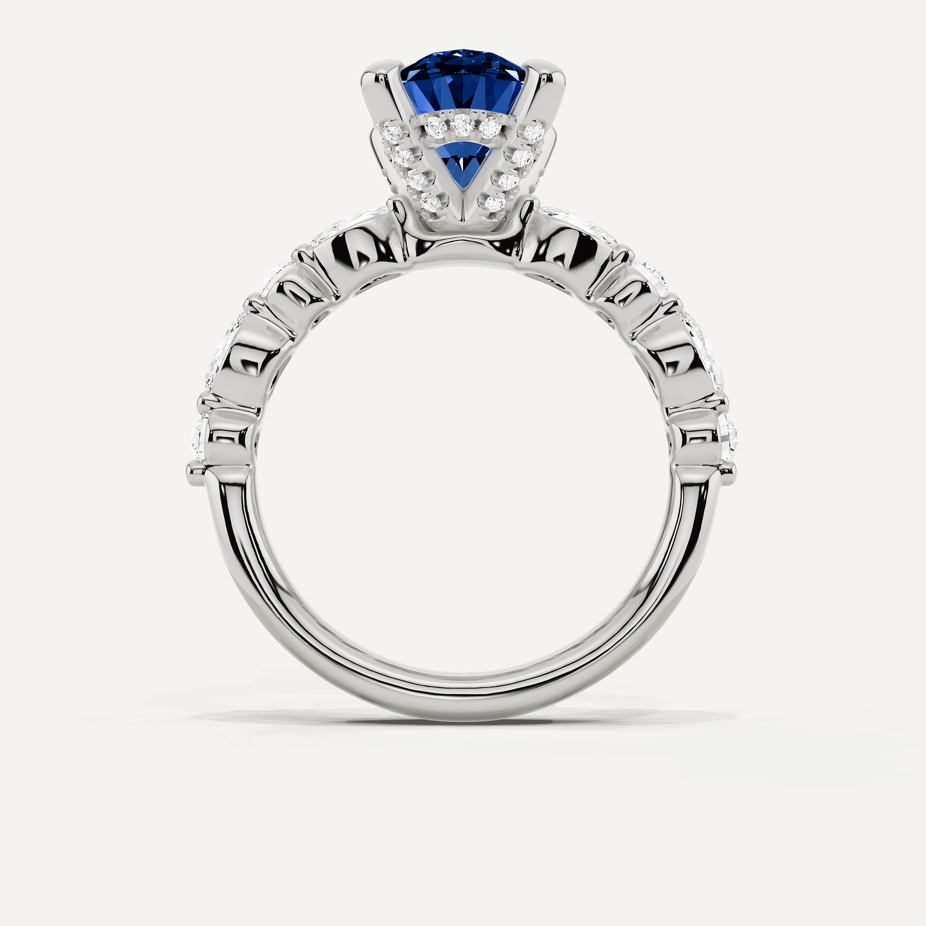 3 1/2 ctw Oval Created Sapphire Hidden Halo Accent Engagement Ring