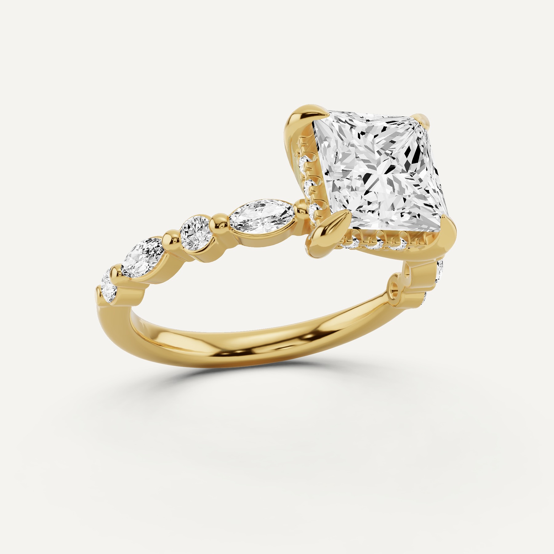 3 1/2 ctw Princess Diamond Hidden Halo Engagement Ring with Floating SIde Stones