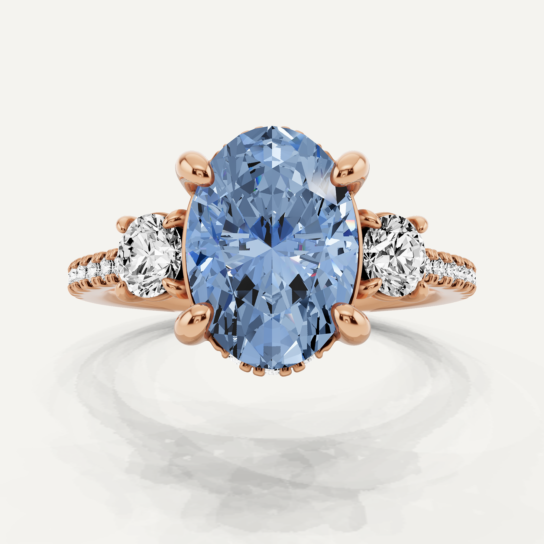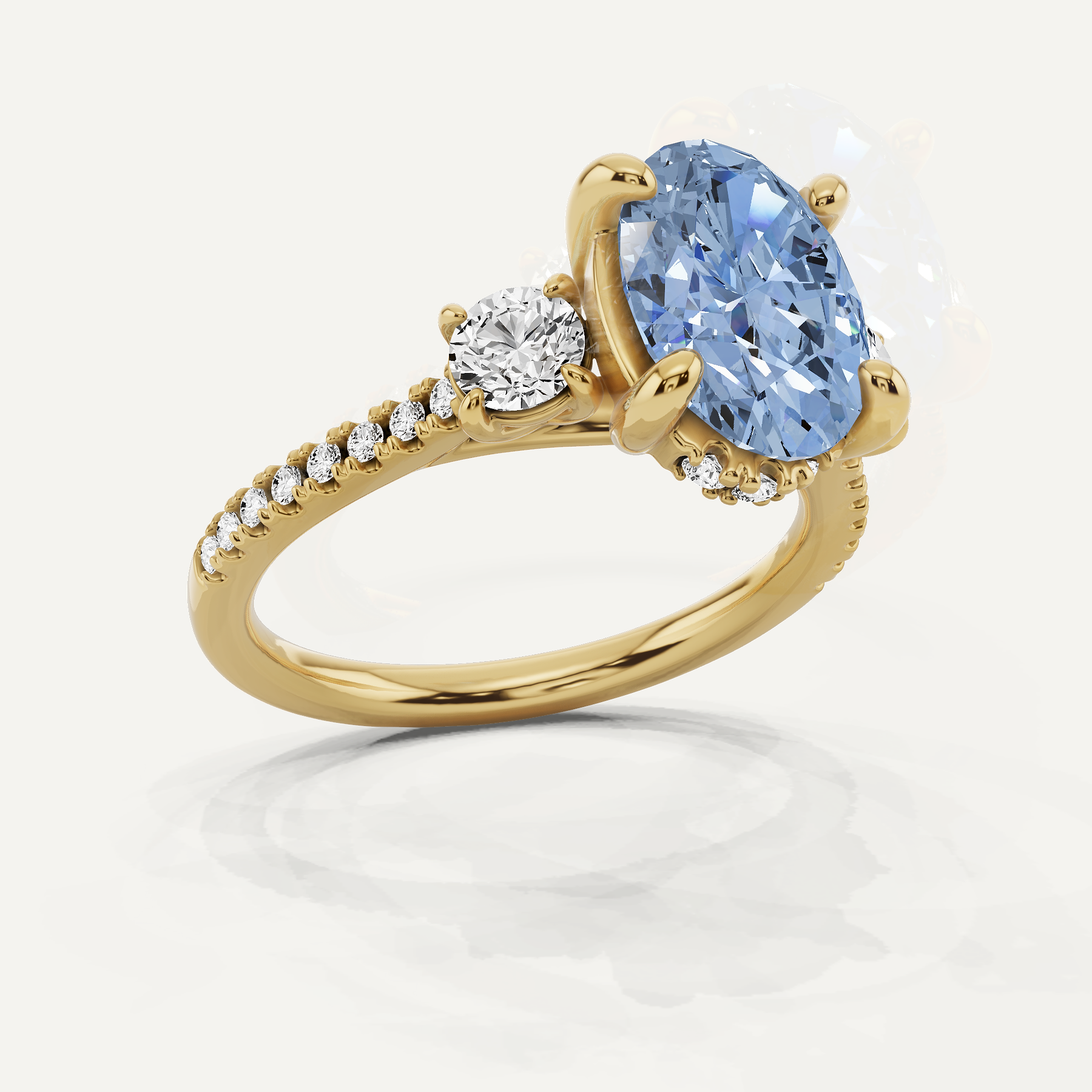 3 1/3 ctw Oval Created Aquamarine Three Stone Engagement Ring with Round Side Stone