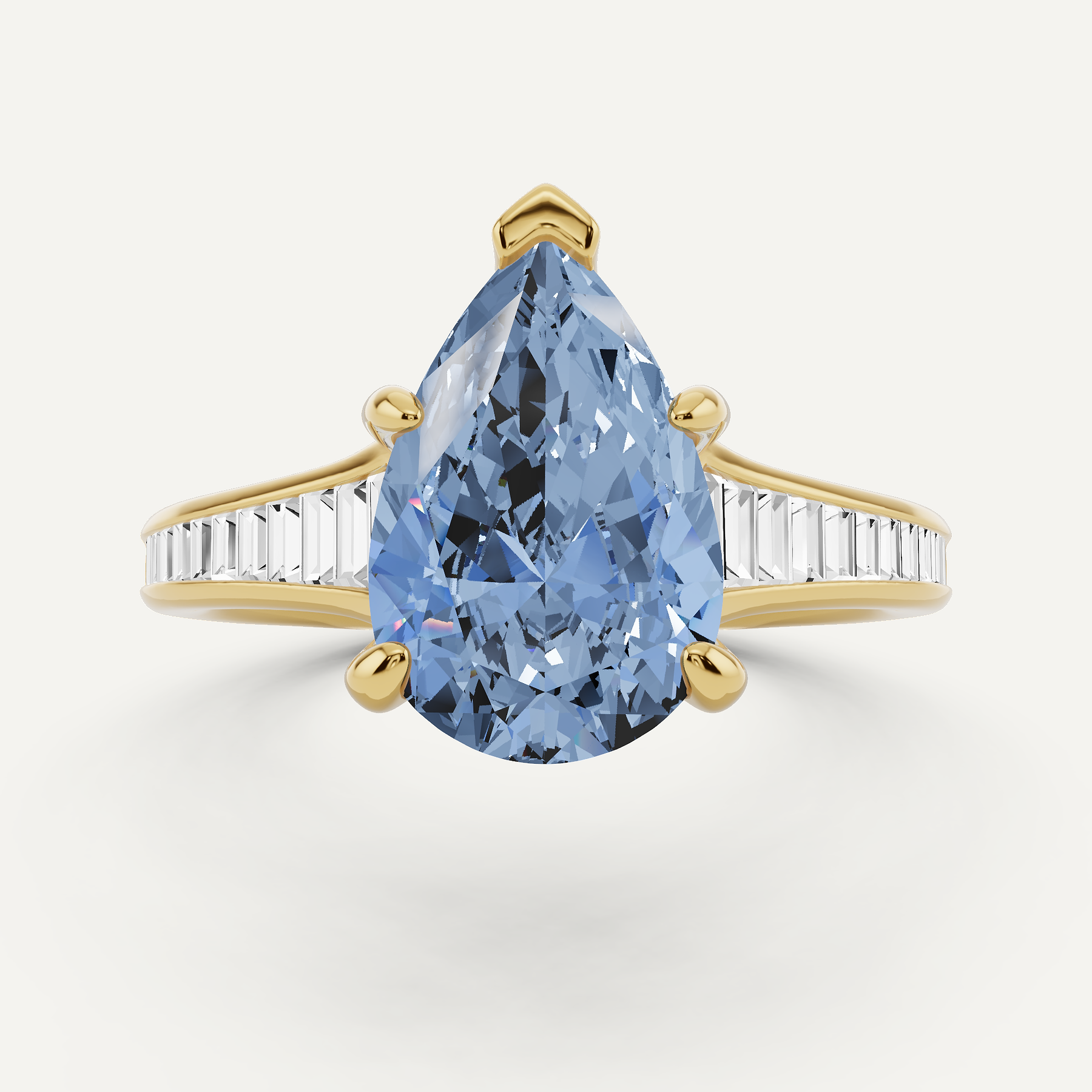3 1/3 ctw Pear Created Aquamarine Baguette Side Stone Engagement Ring