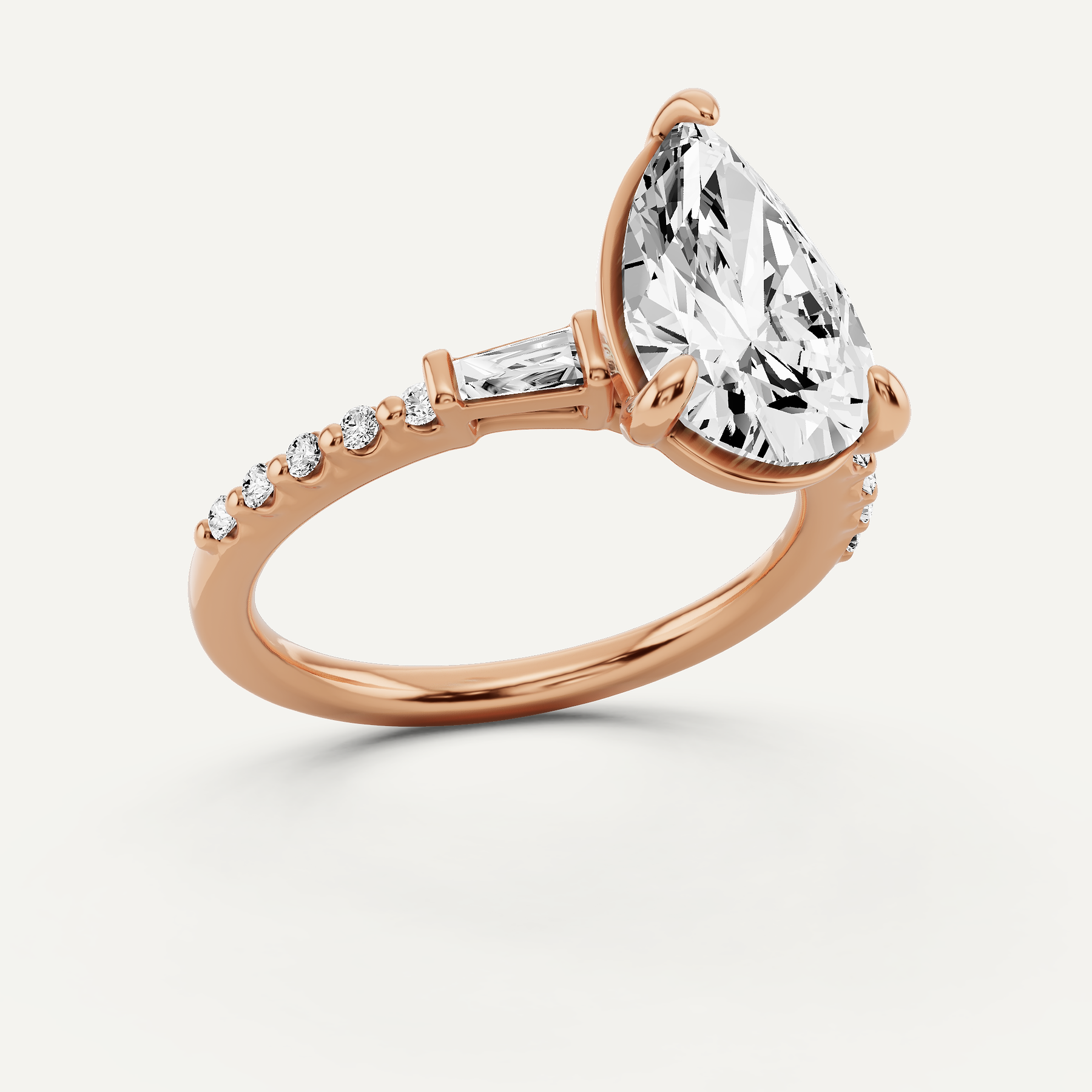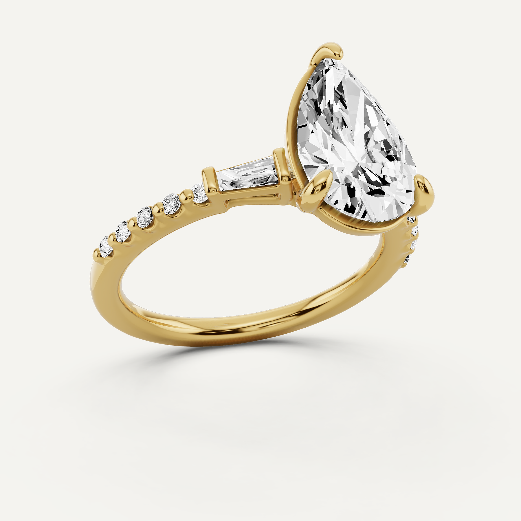 3 1/4 ctw Pear Diamond Baguette Sides Side Stone Engagement Ring