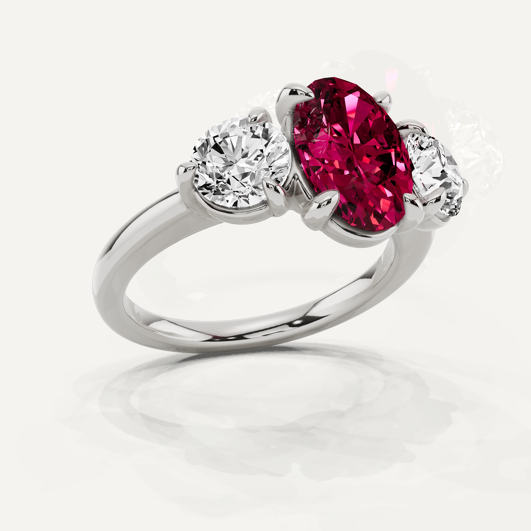3 1/5 ctw Oval Created Ruby Three Stone Engagement Ring